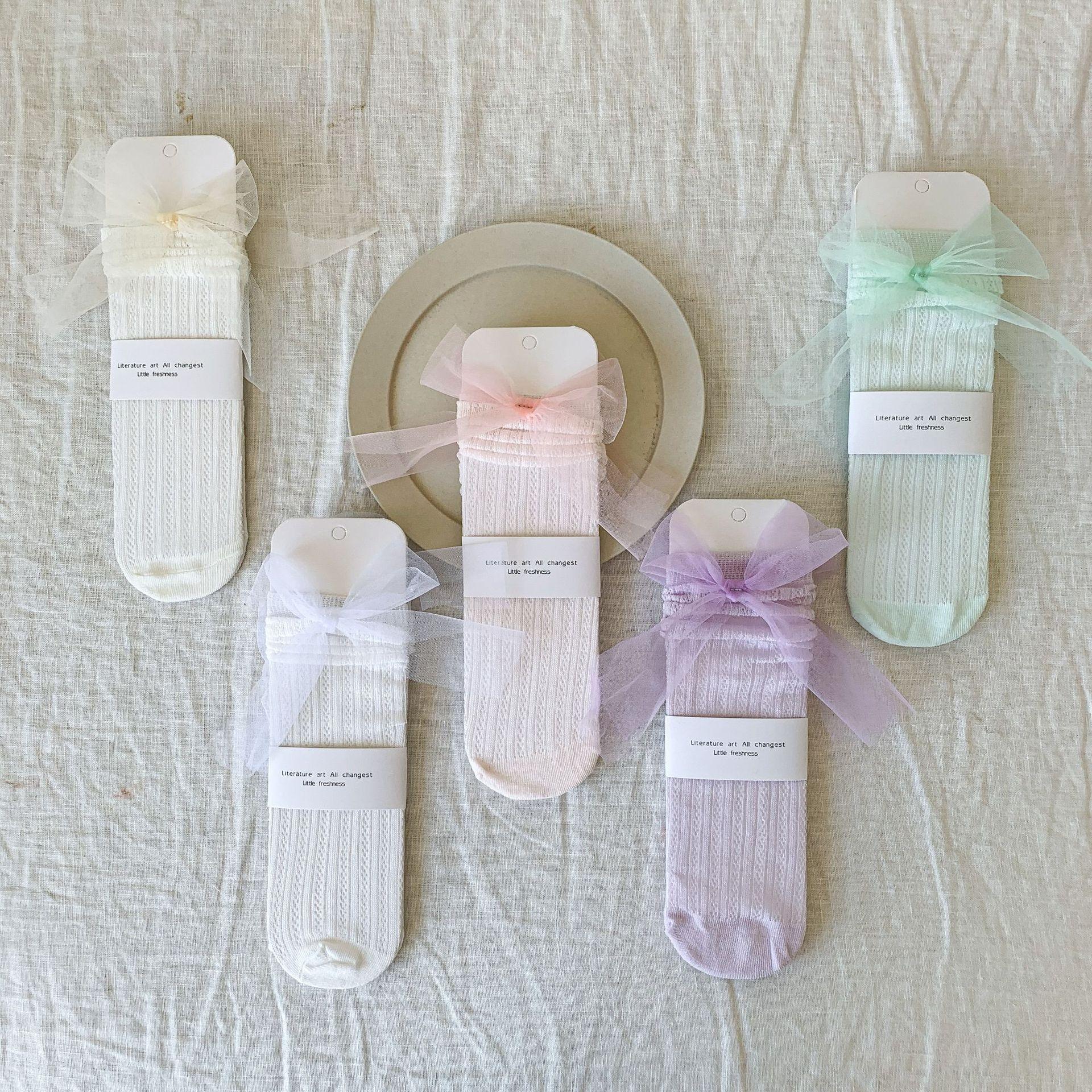 Weimu Ropa para Niños Calcetines de Niña Verano 2025 Nuevos Calcetines sin Talón Transpirables de Color Puro para Niños Calcetines de Rizo Calcetines de Algodón para Bebé