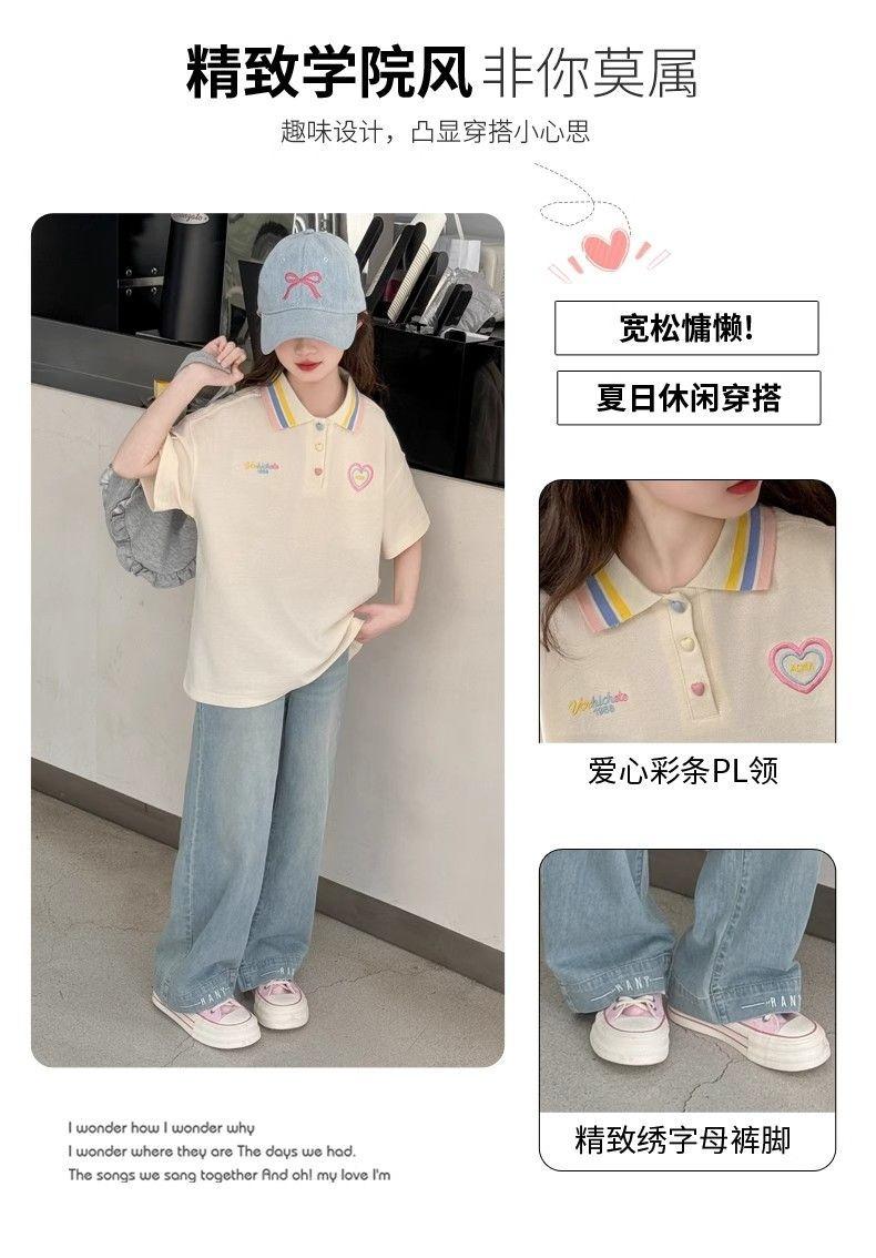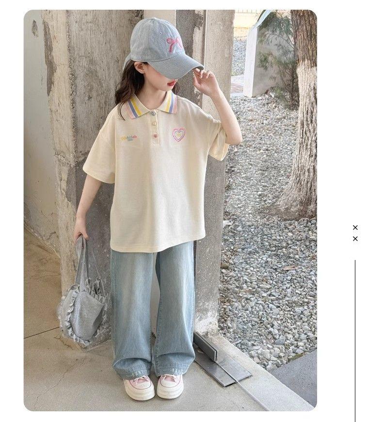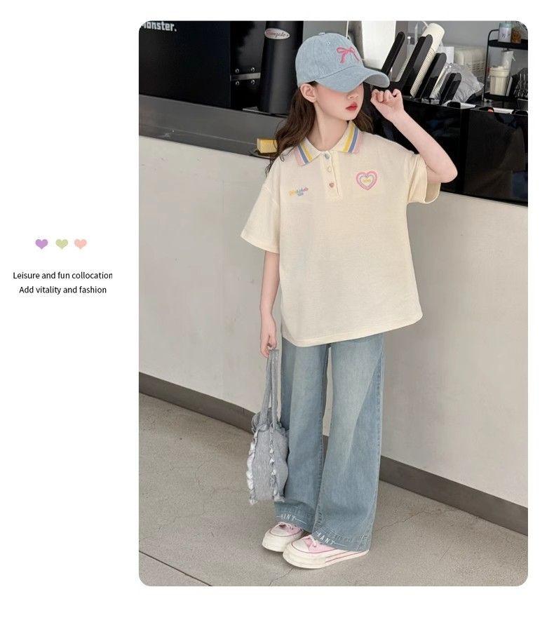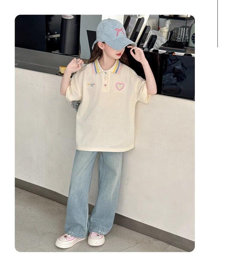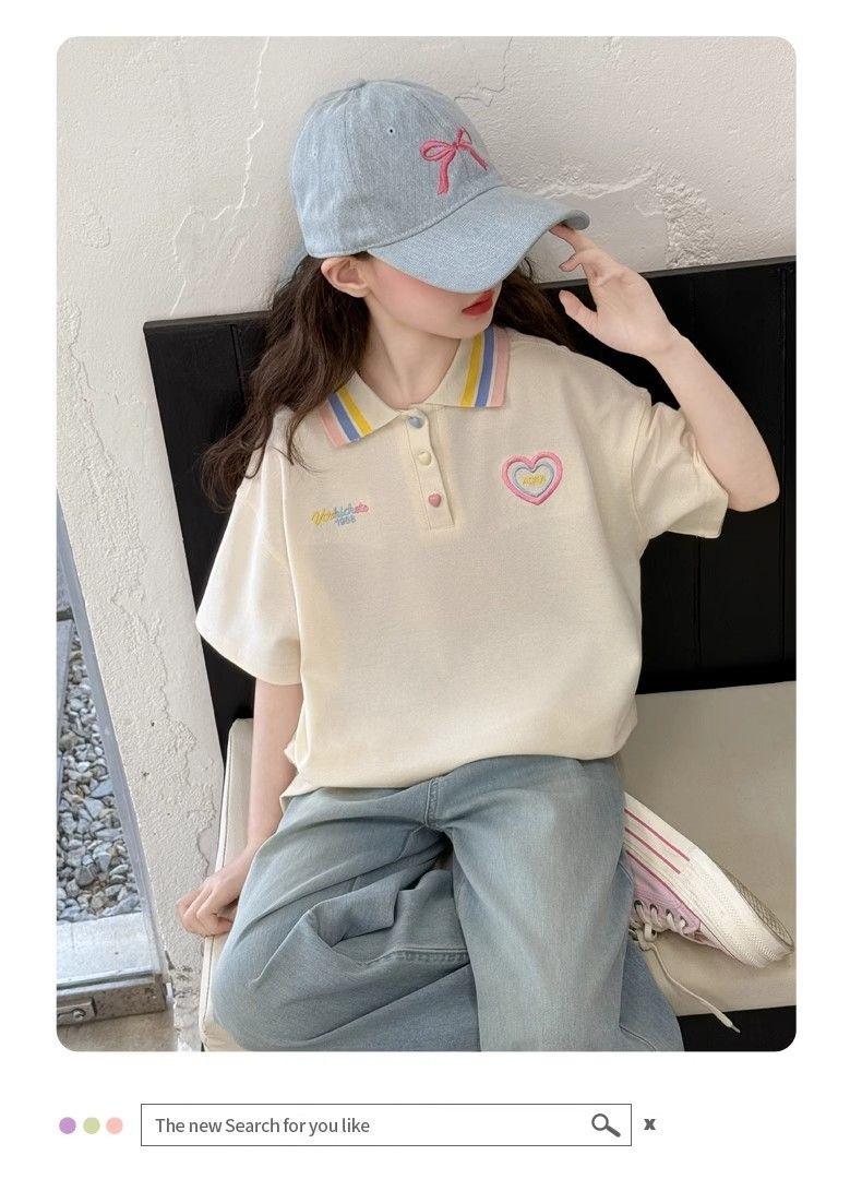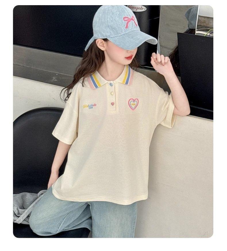 Camiseta de Manga Corta para Niñas Ropa de Verano 2025 Nuevo Estilo Ropa para Niños Camisa Polo para Niña Verano para Niños Solapa Manga Media