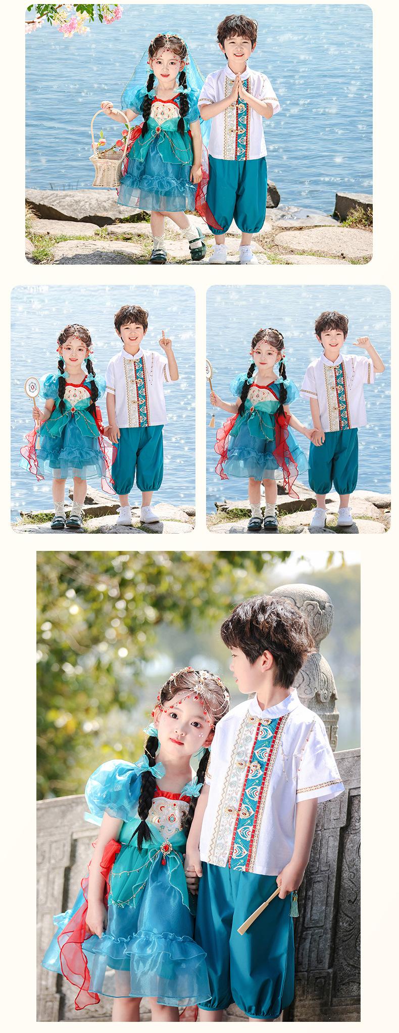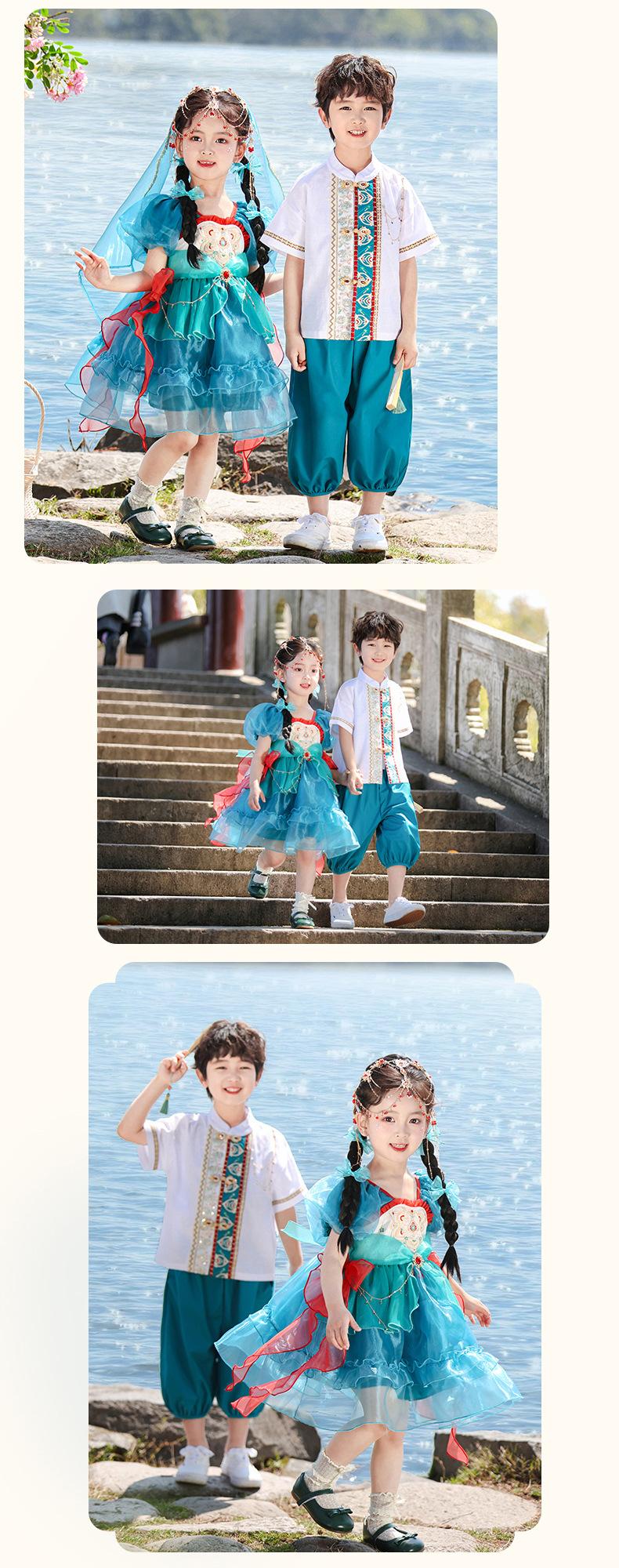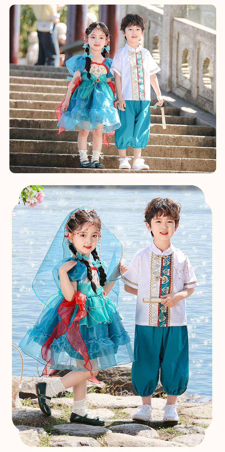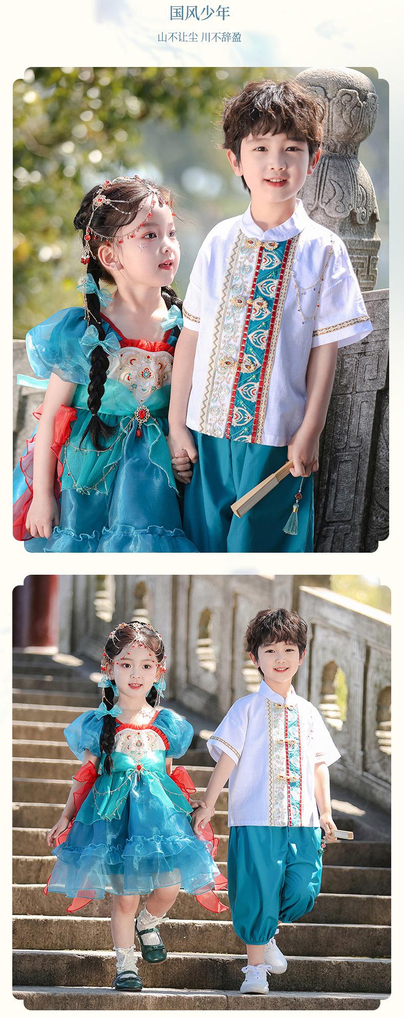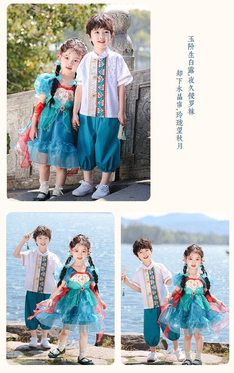 Trajes de Verano para Niños, Ropa de Actuación de Estilo Nacional de Verano, Disfraces Antiguos para Estudiantes de Primaria, Hanfu, Uniformes de Clase de Recitación de Coro para Niños y Niñas