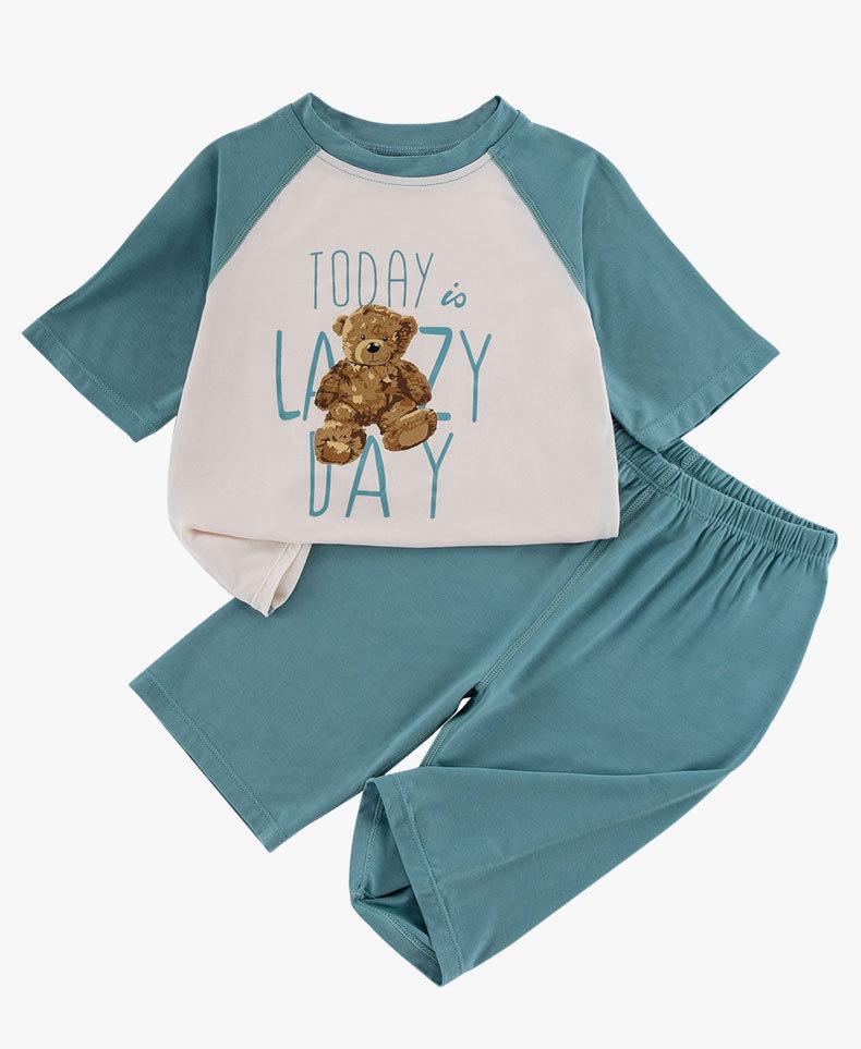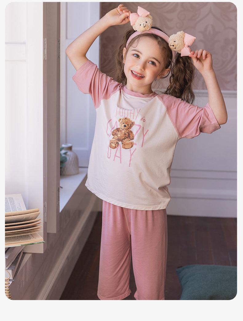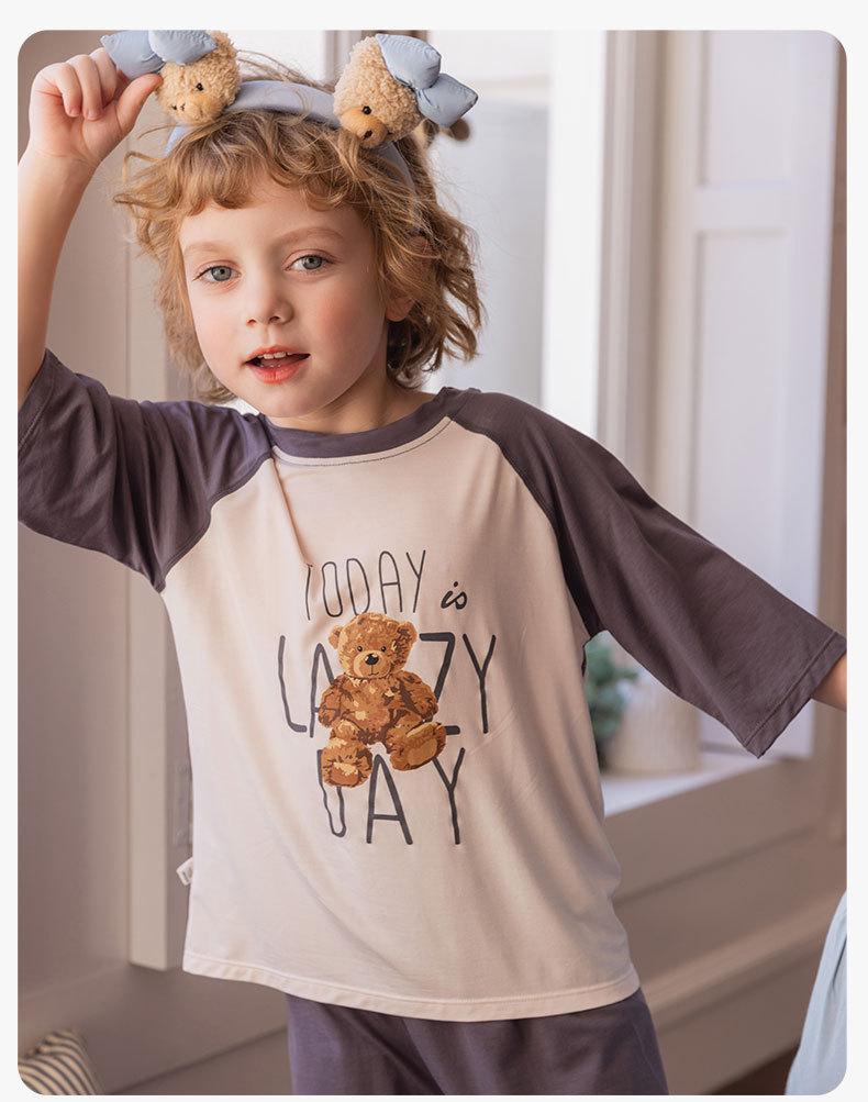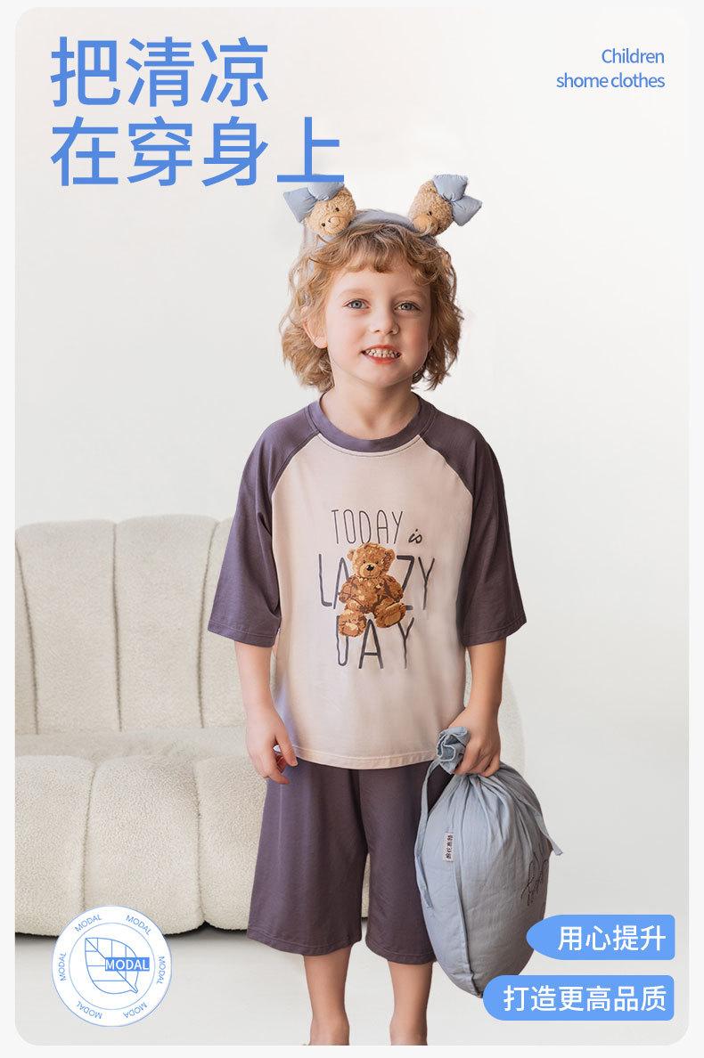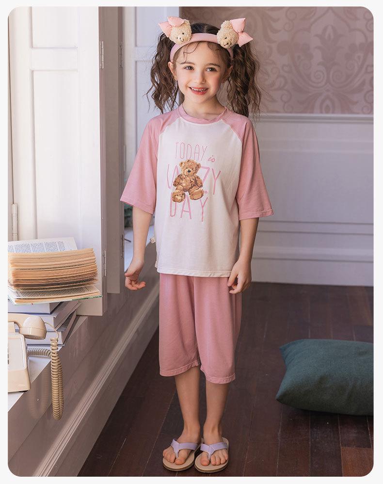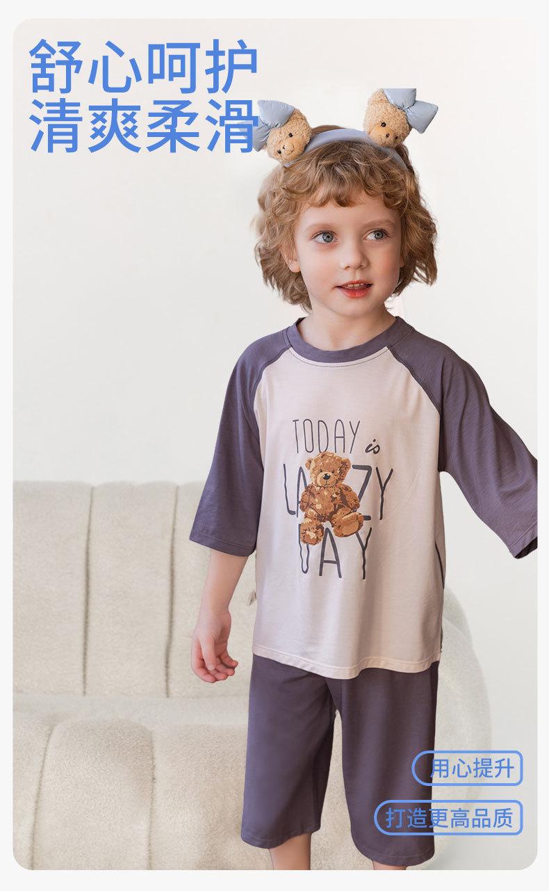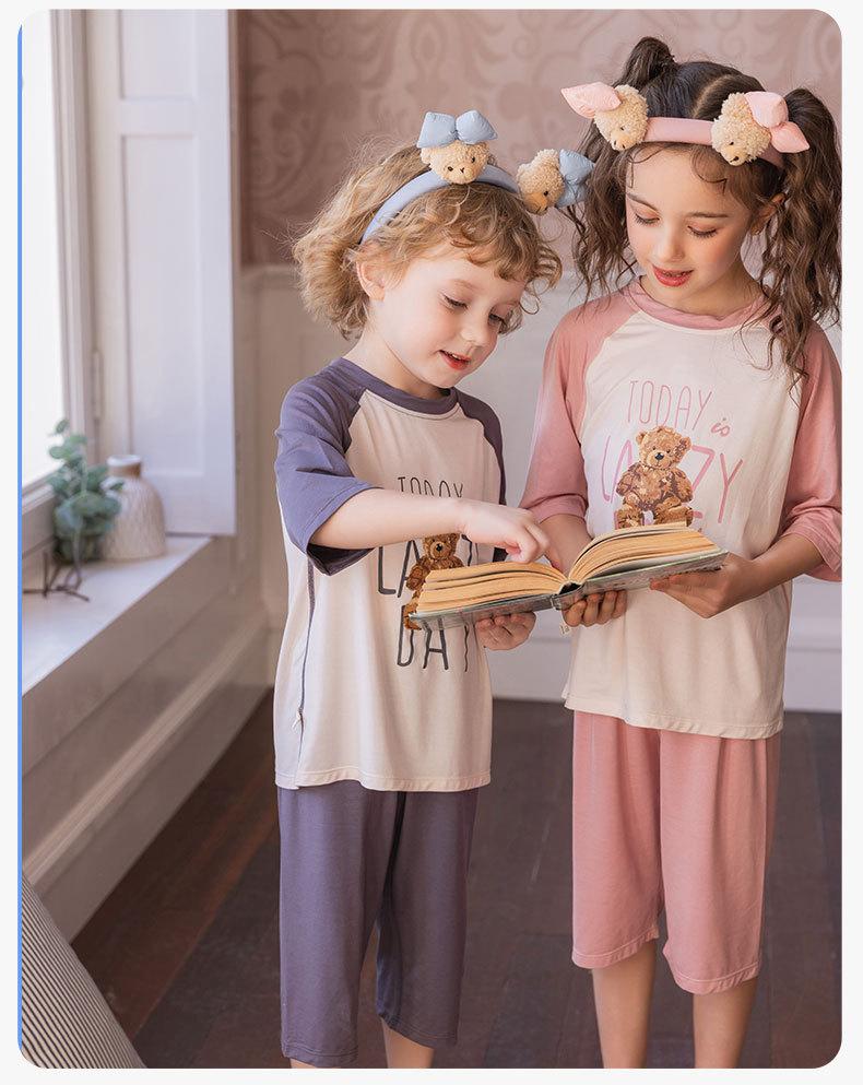 Ropa de Casa de Verano para Niños Manga Raglán Pantalones Cortos Modales Traje Ropa para Aire Acondicionado para Niños y Niñas Pijama para Niños de Mediana Edad