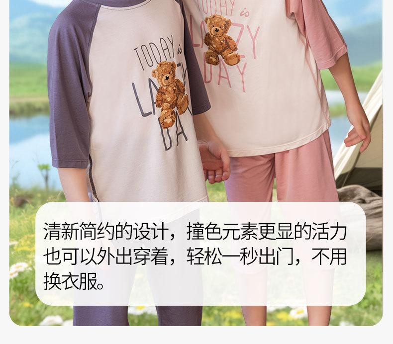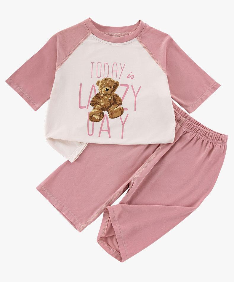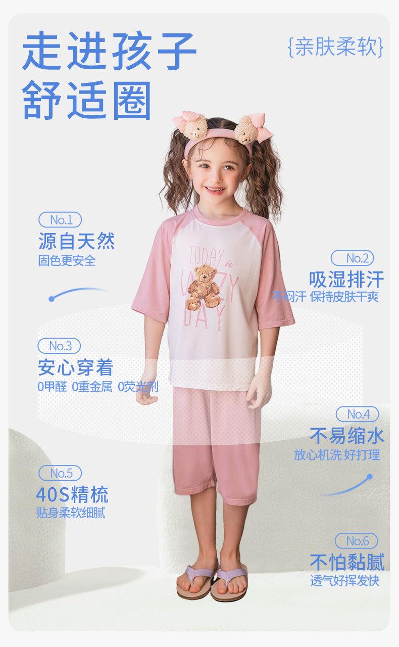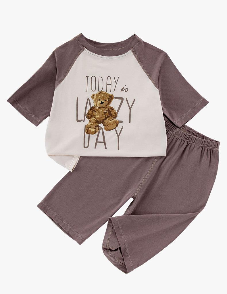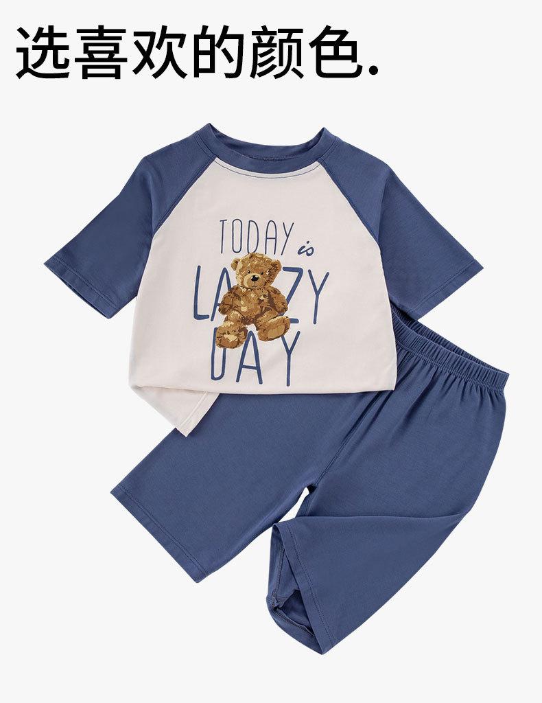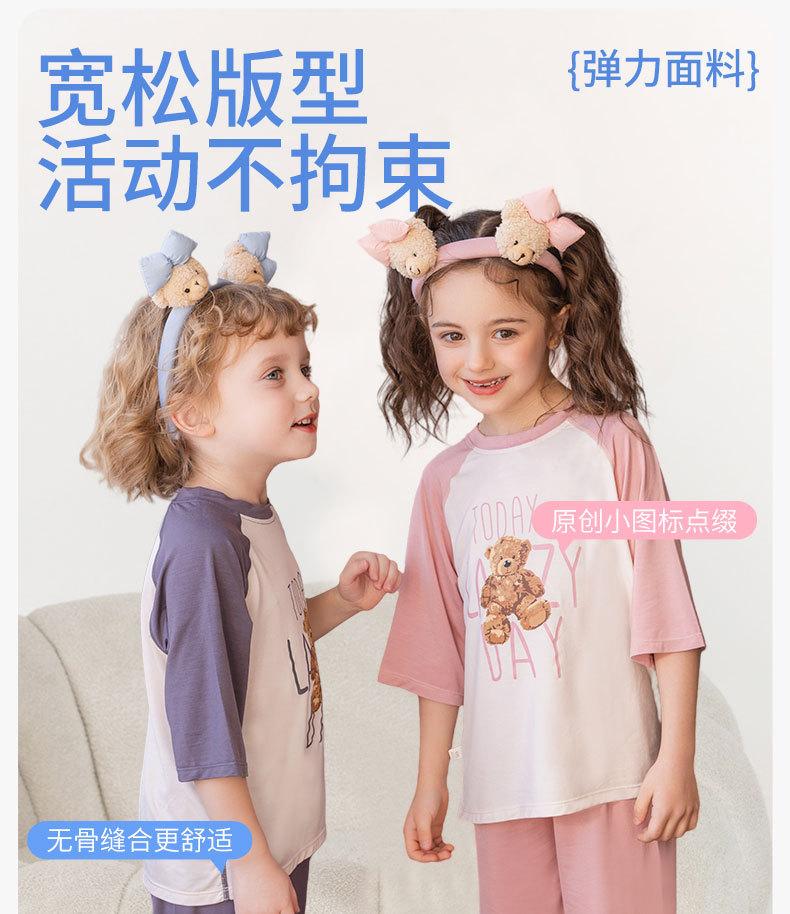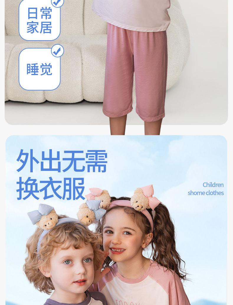 Ropa de Casa de Verano para Niños Manga Raglán Pantalones Cortos Modales Traje Ropa para Aire Acondicionado para Niños y Niñas Pijama para Niños de Mediana Edad