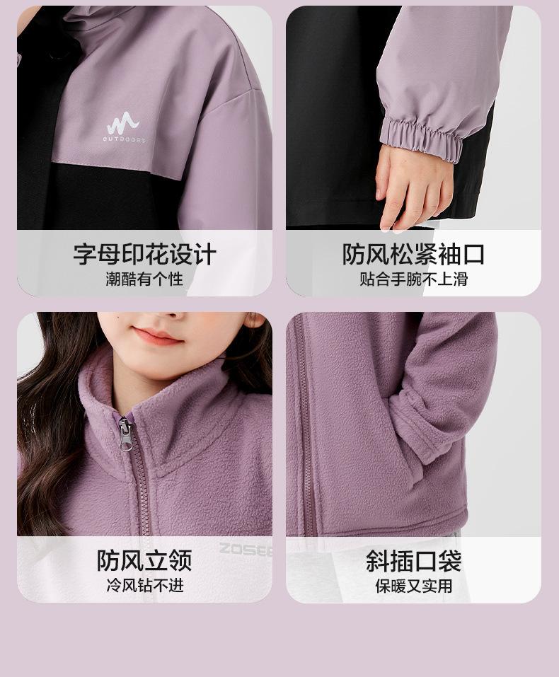 Purple two-piece set [inside polar fleece]], Purple [single coat]], light purple single coat], Purple two-piec...