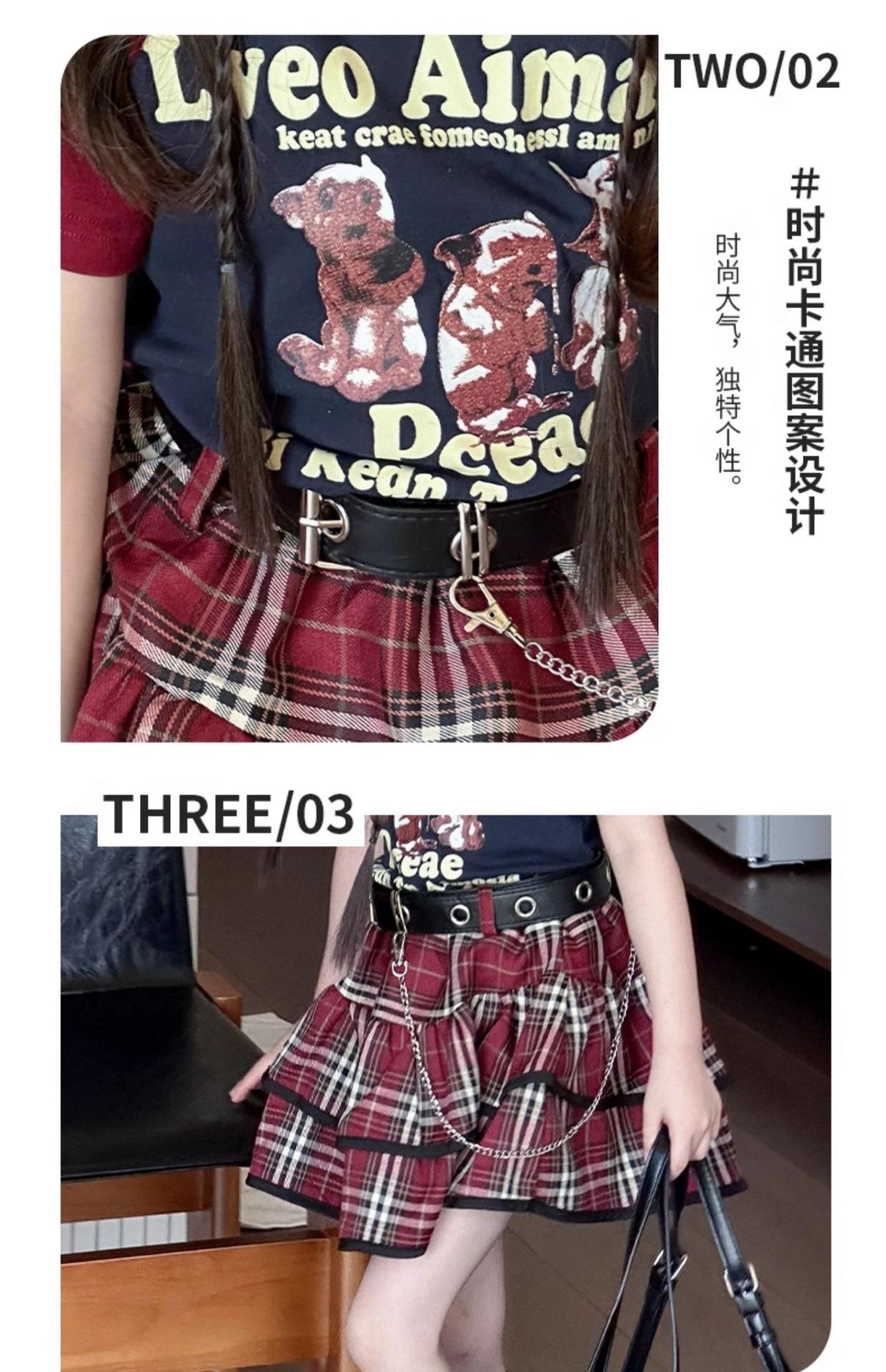 Suit, Single t-shirt, Plaid skirt + belt