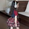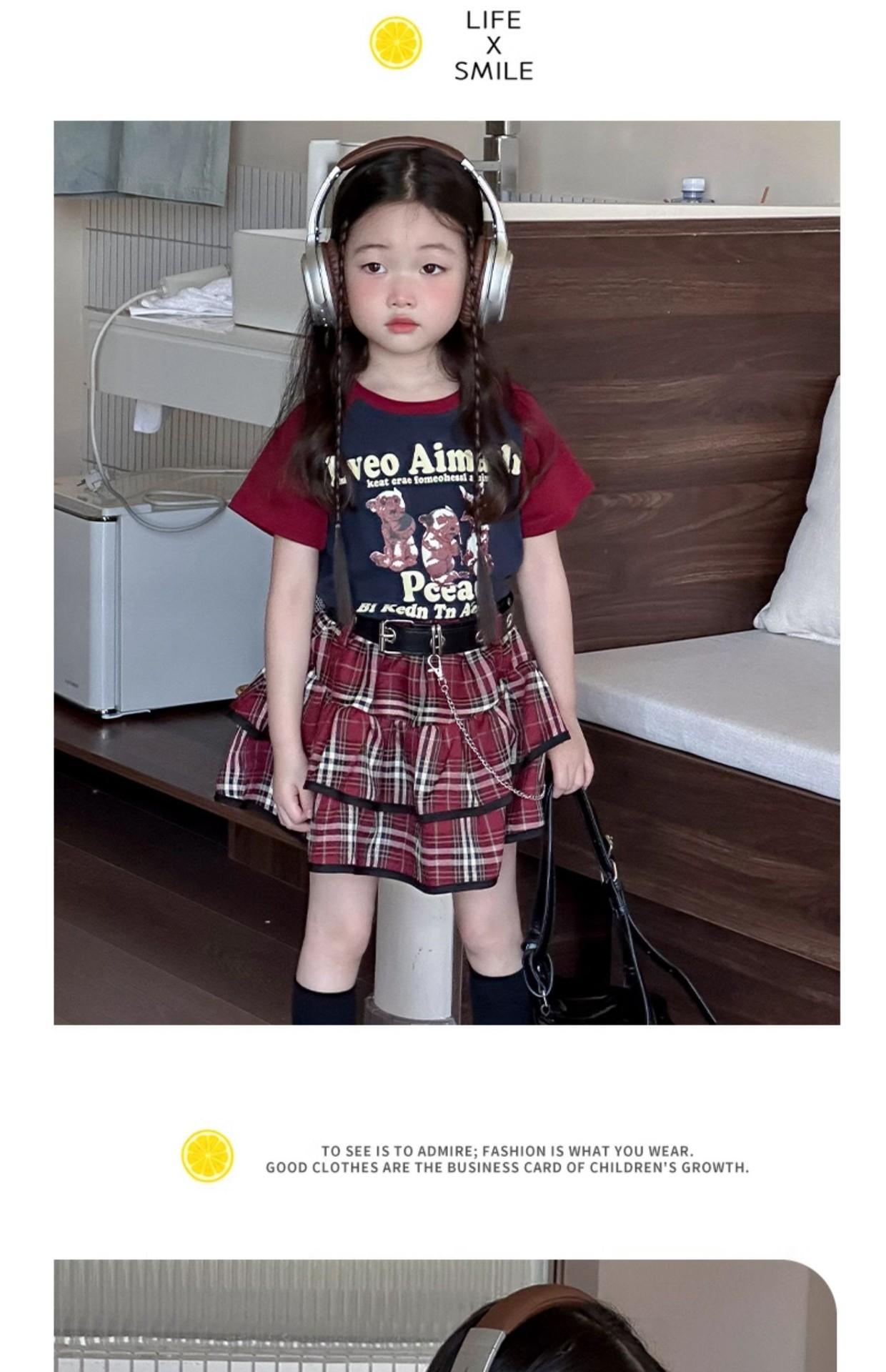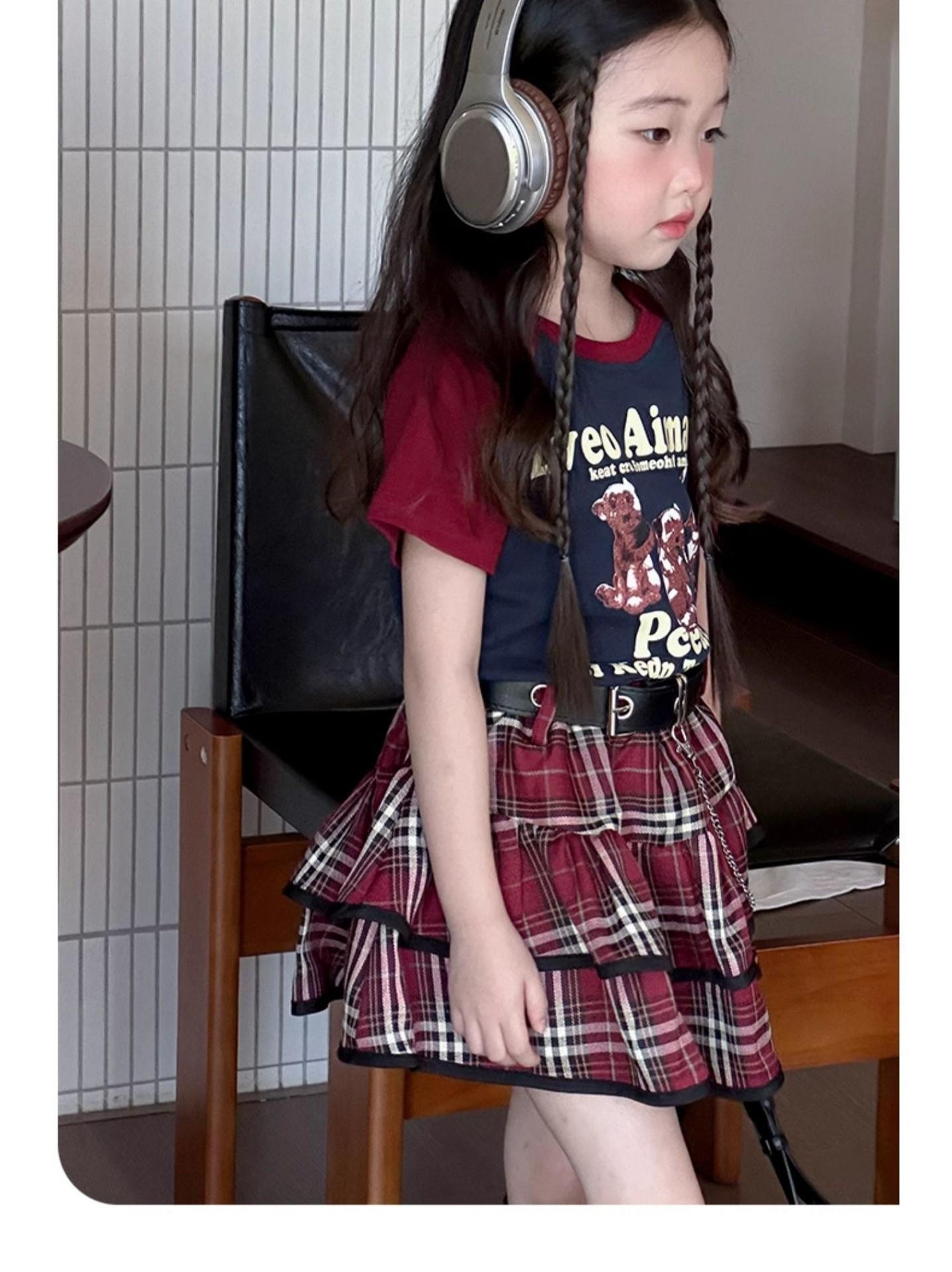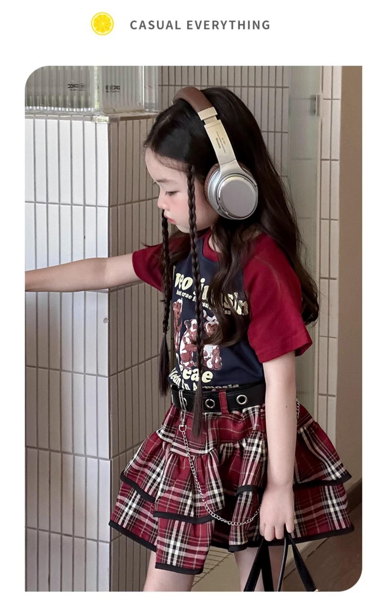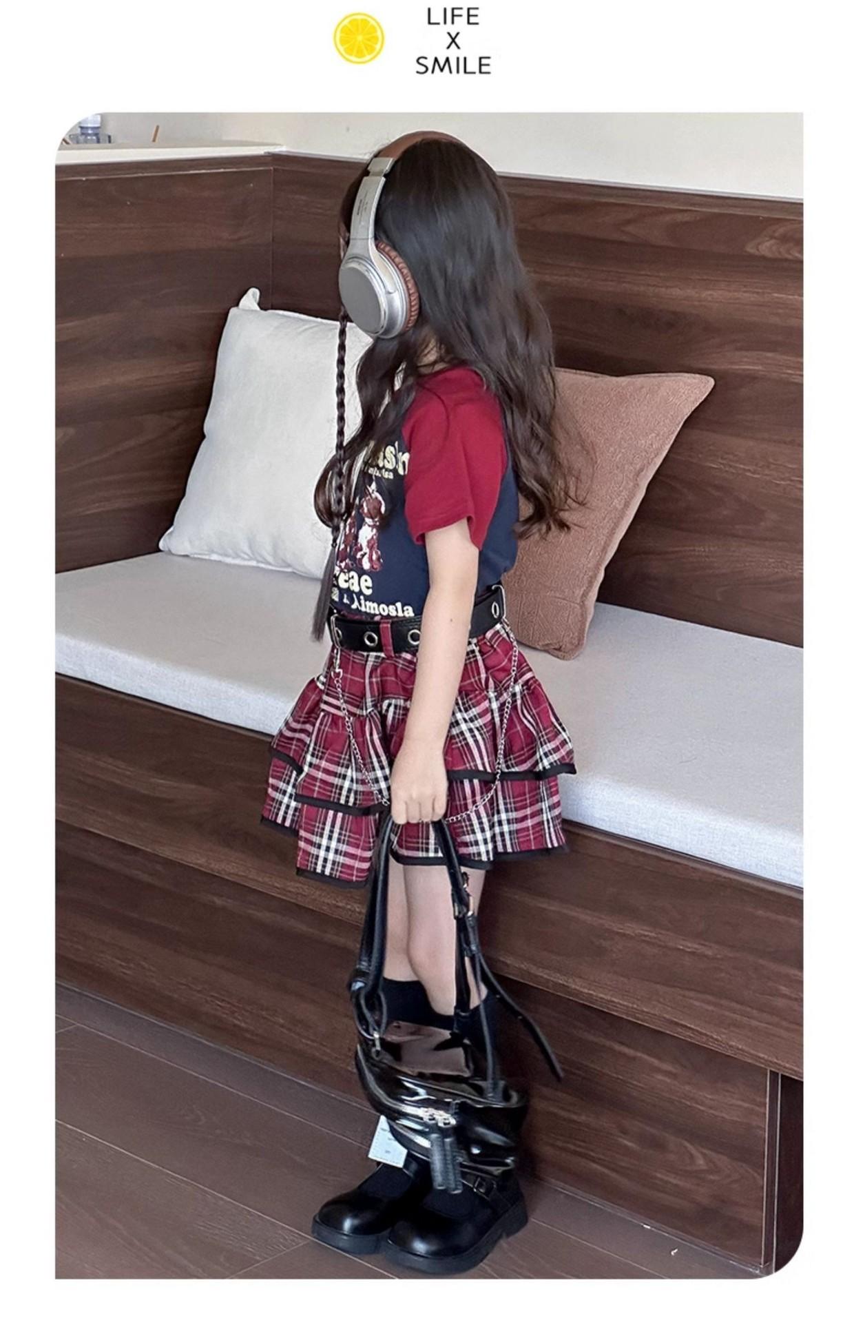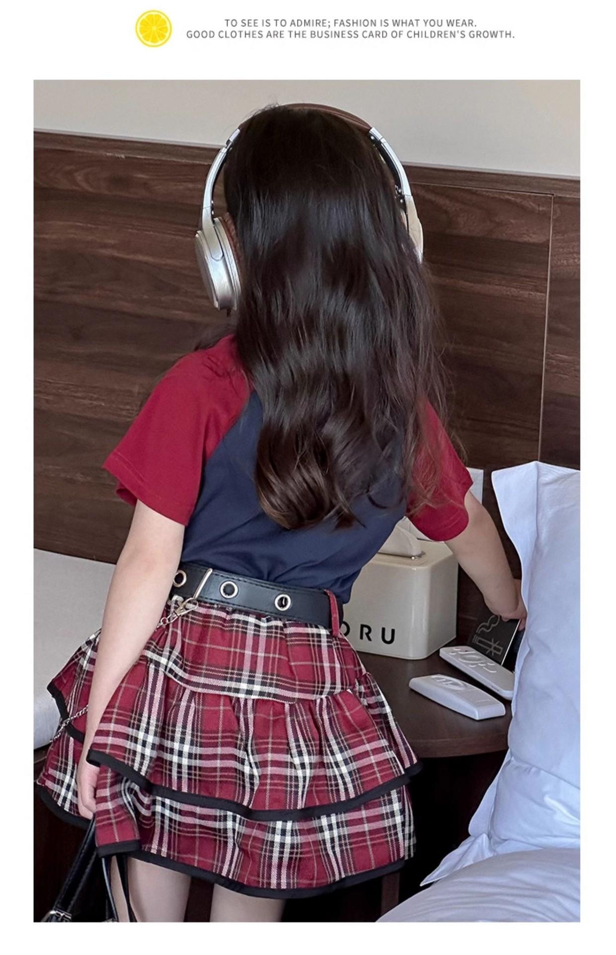 Traje de niña estilo universitario verano 2025 niñas callejeras frita verano nuevo infantil verano falda plisada JK conjunto de dos piezas