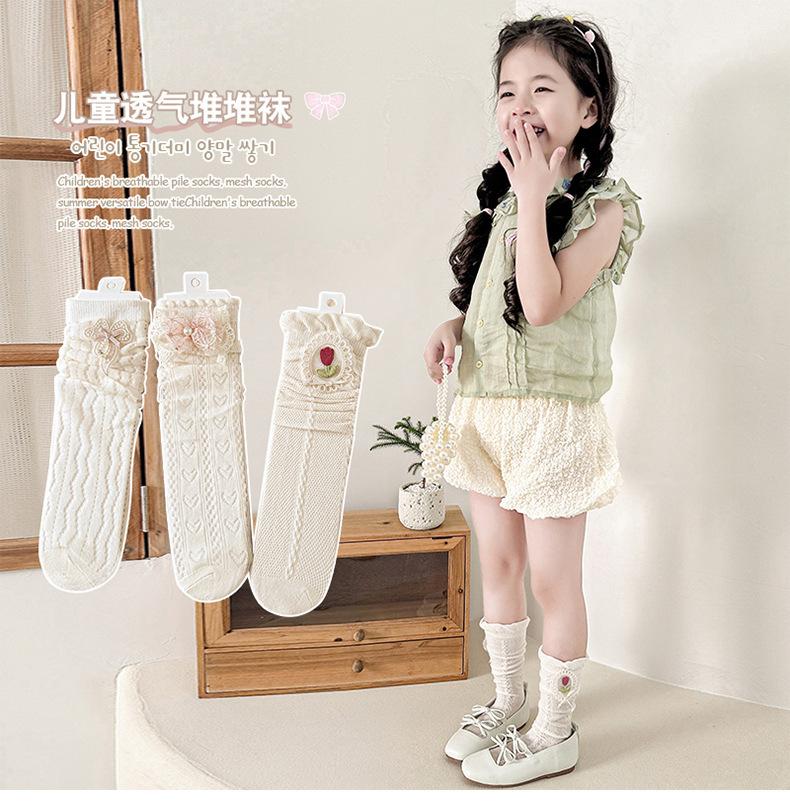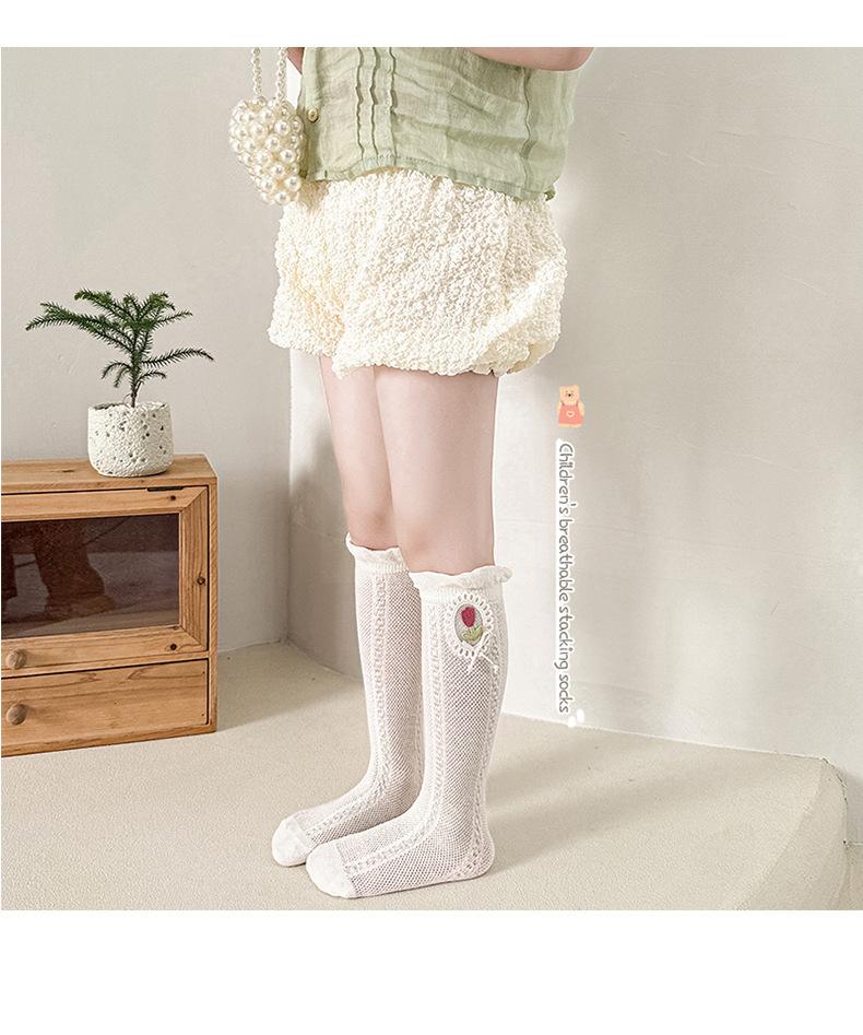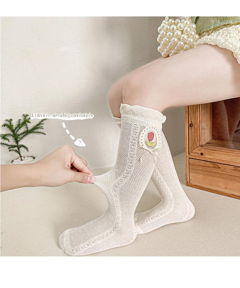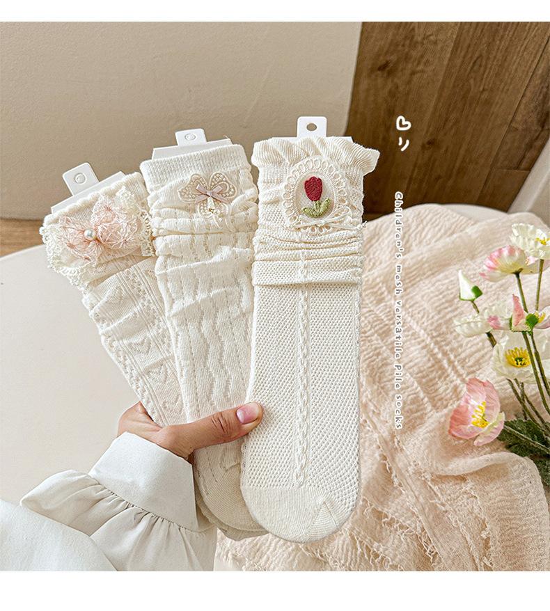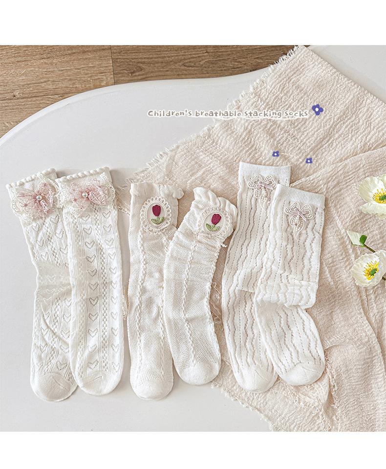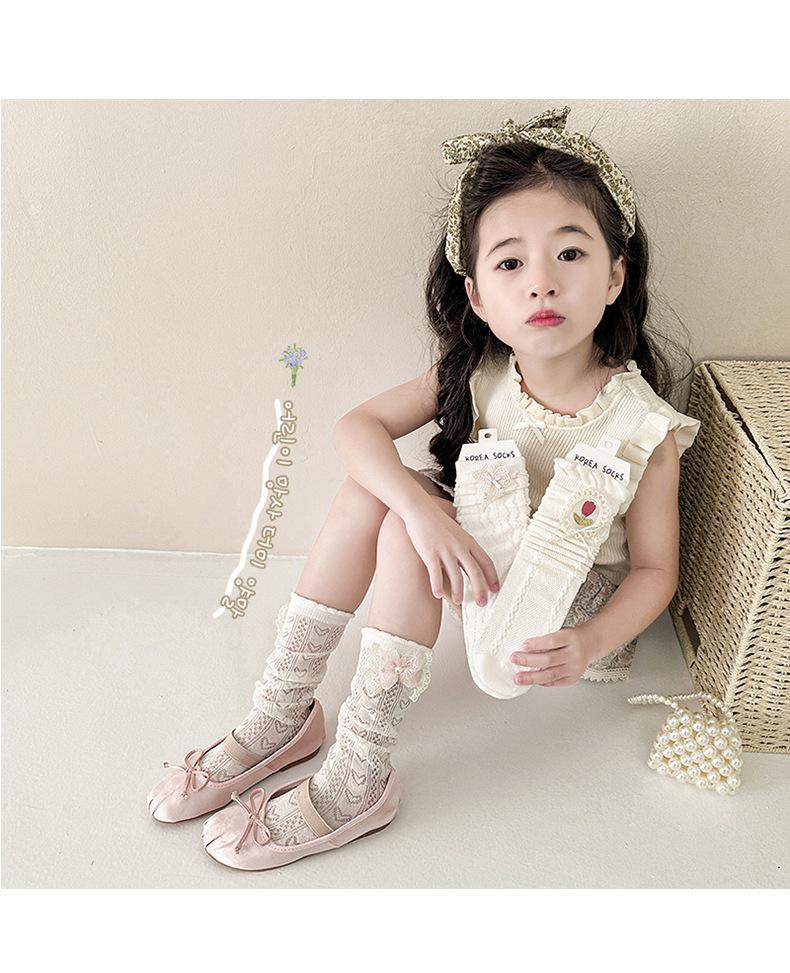 Calcetines de Media Caña para Niños Primavera y Verano Delgados Lazo Encaje Blanco Calcetines de Malla para Pantorrilla Medias para Niñas