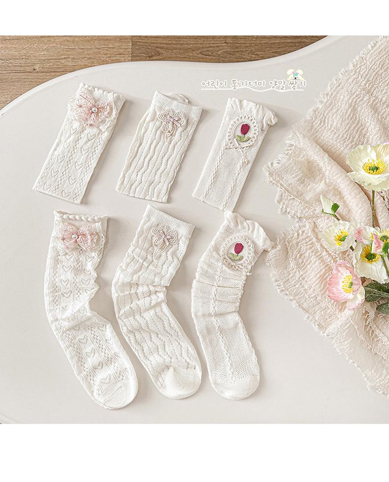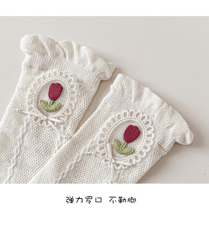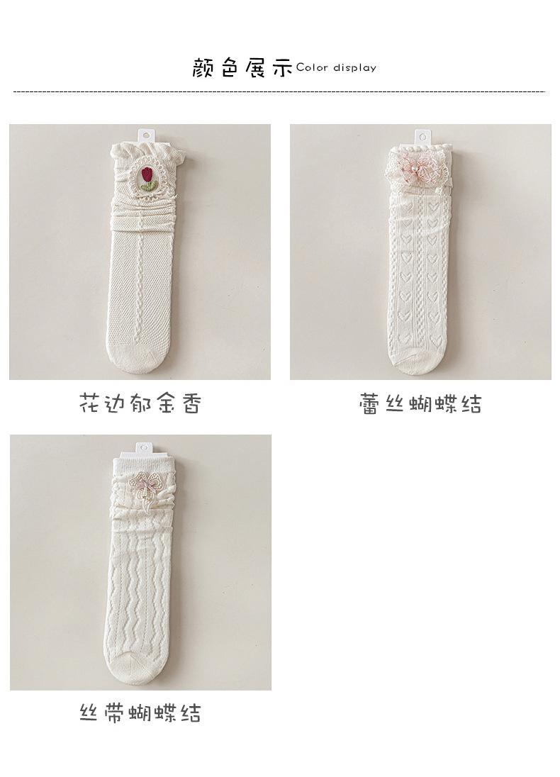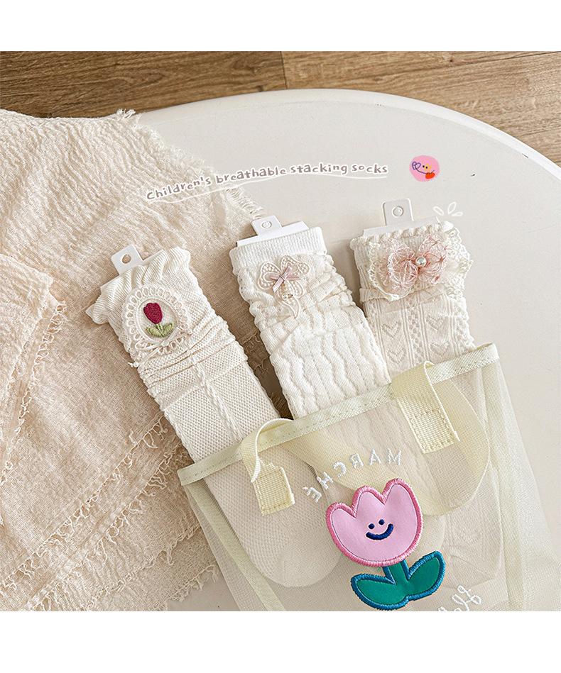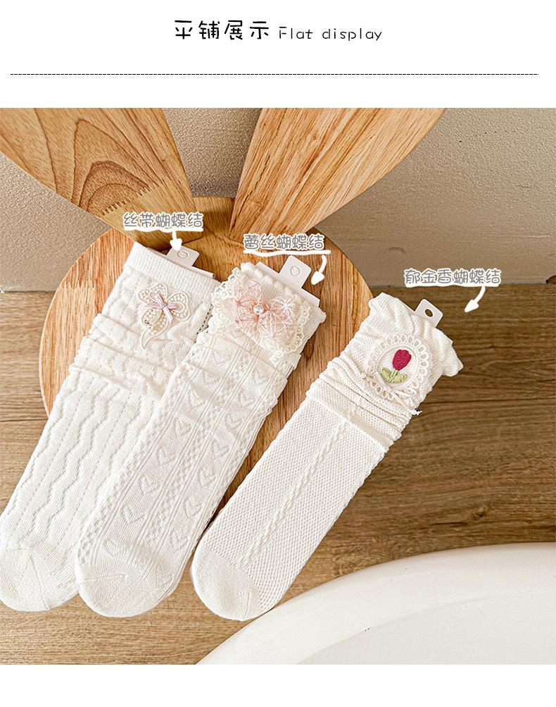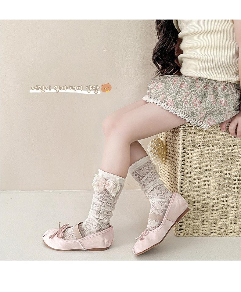 Calcetines de Media Caña para Niños Primavera y Verano Delgados Lazo Encaje Blanco Calcetines de Malla para Pantorrilla Medias para Niñas