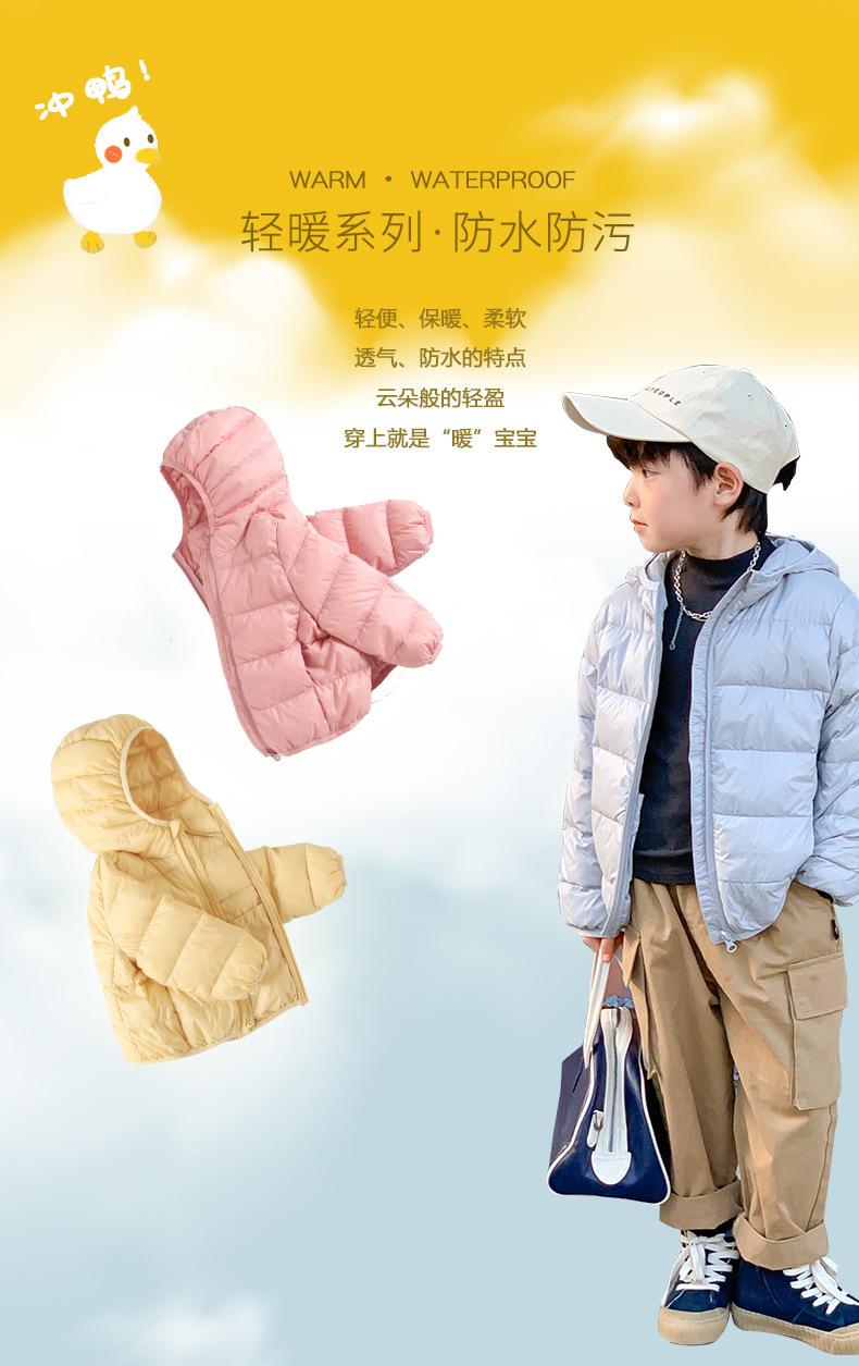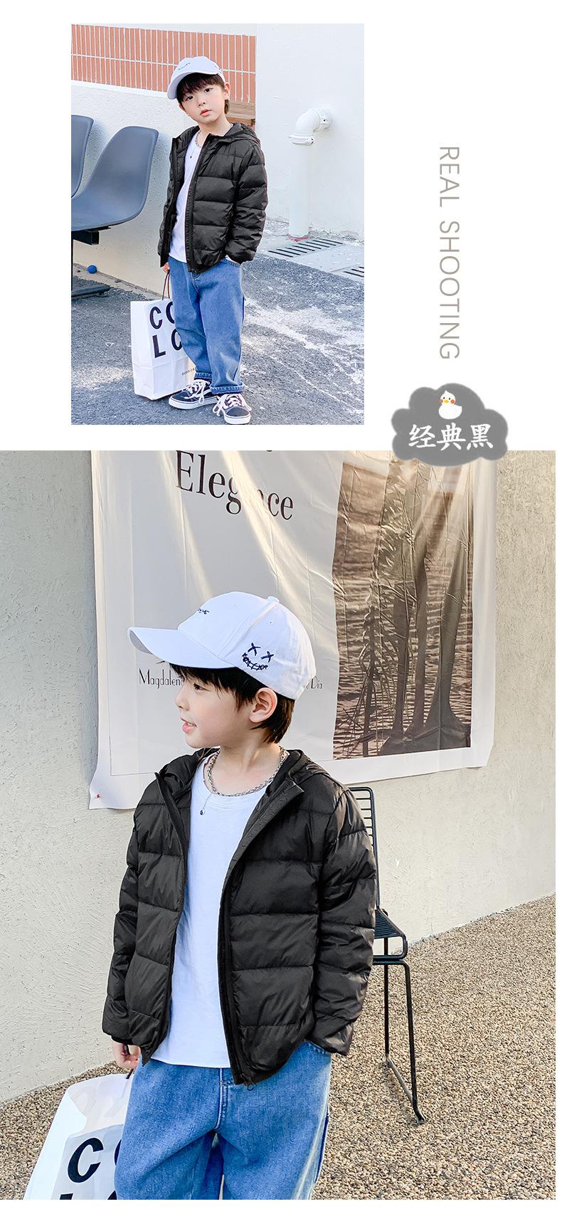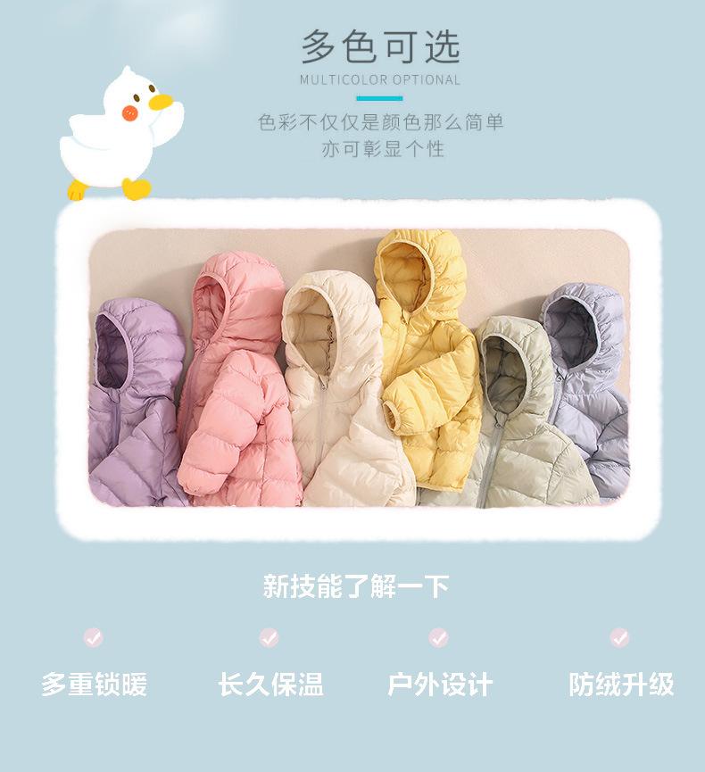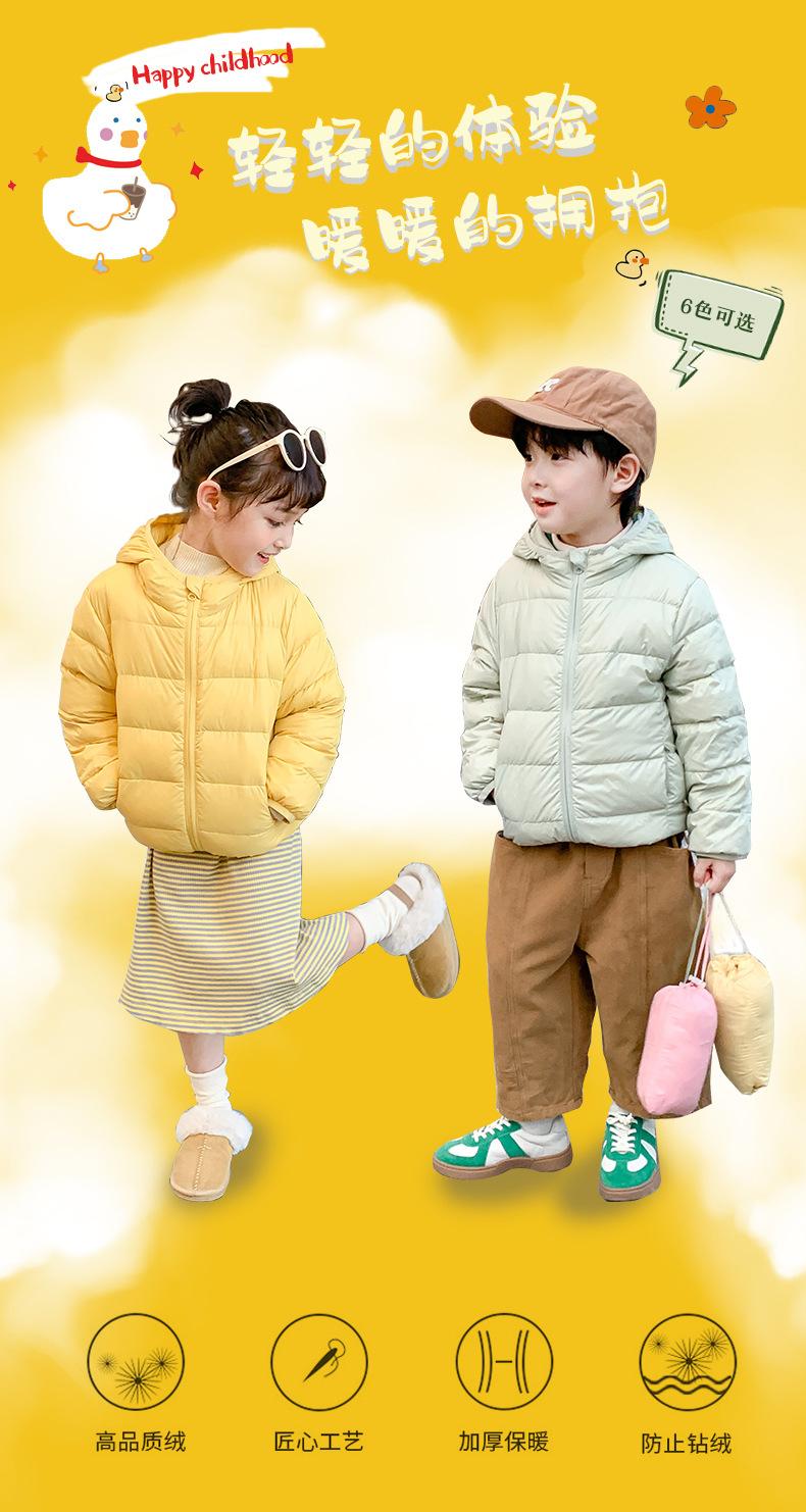 2025 Nuevo 90 plumón Chaqueta ligera de plumón para niños Mediana y Grande Ropa para niños Chaqueta con capucha estilo coreano Ropa de invierno para niños y niñas
