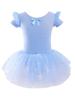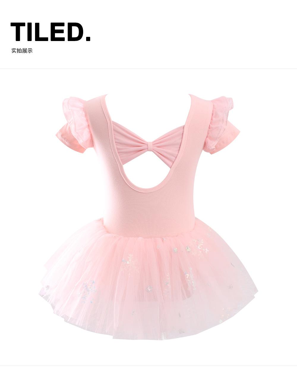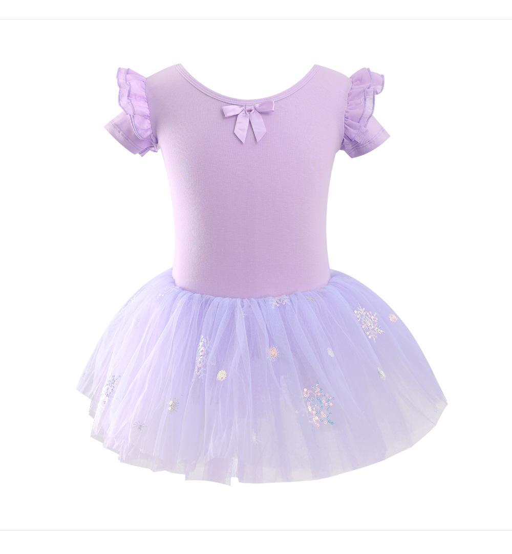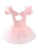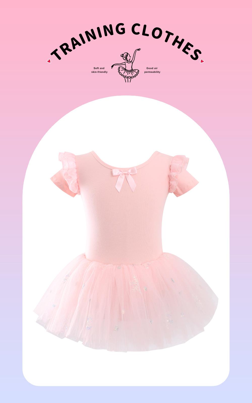 Ropa de Danza para Niñas, Ropa de Práctica de Verano para Niñas, Mangas Cortas Volantes, Falda Tutú de Ballet, Falda de Ropa de Práctica para Niñas Pequeñas de Danza China