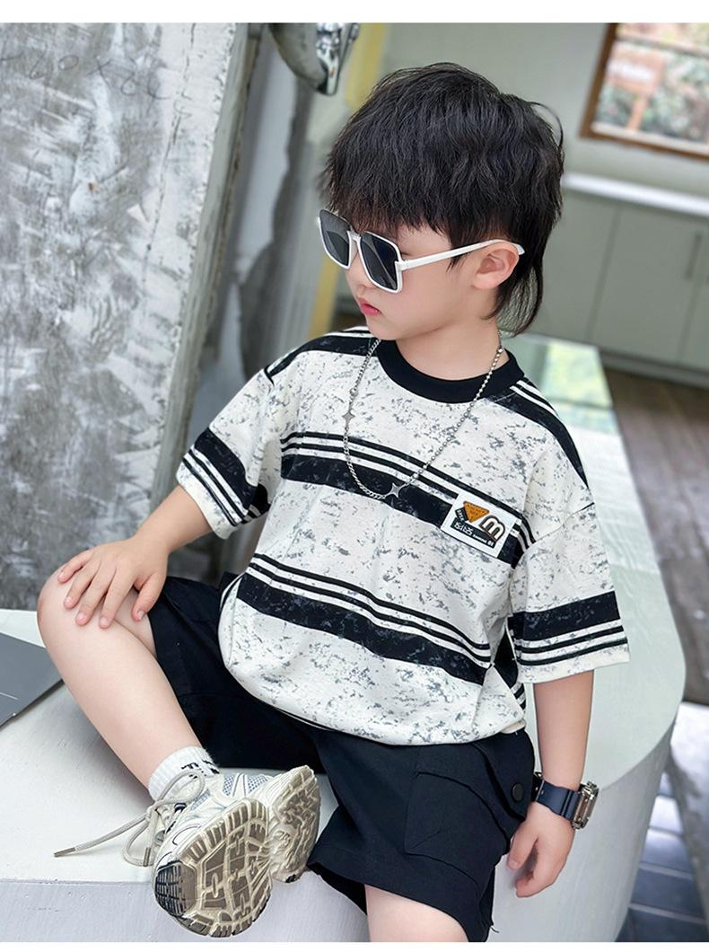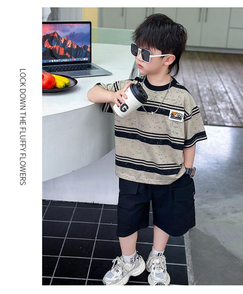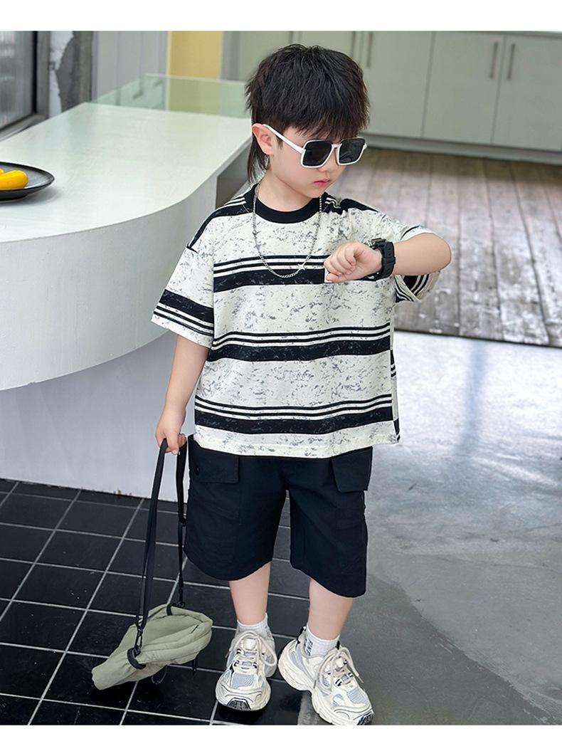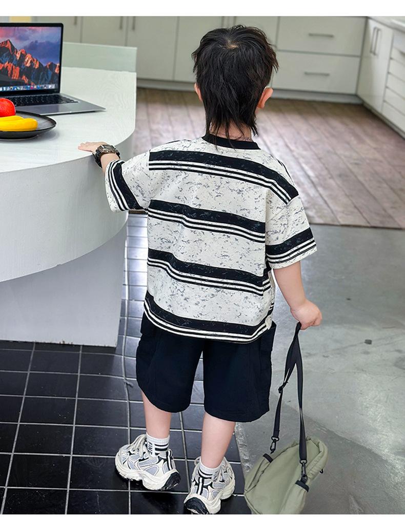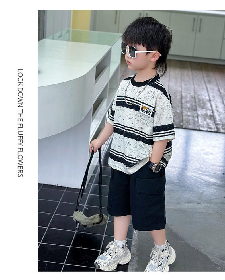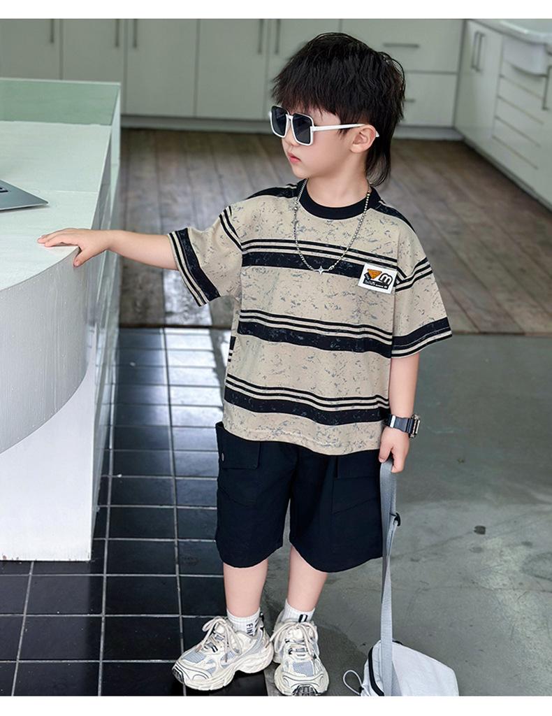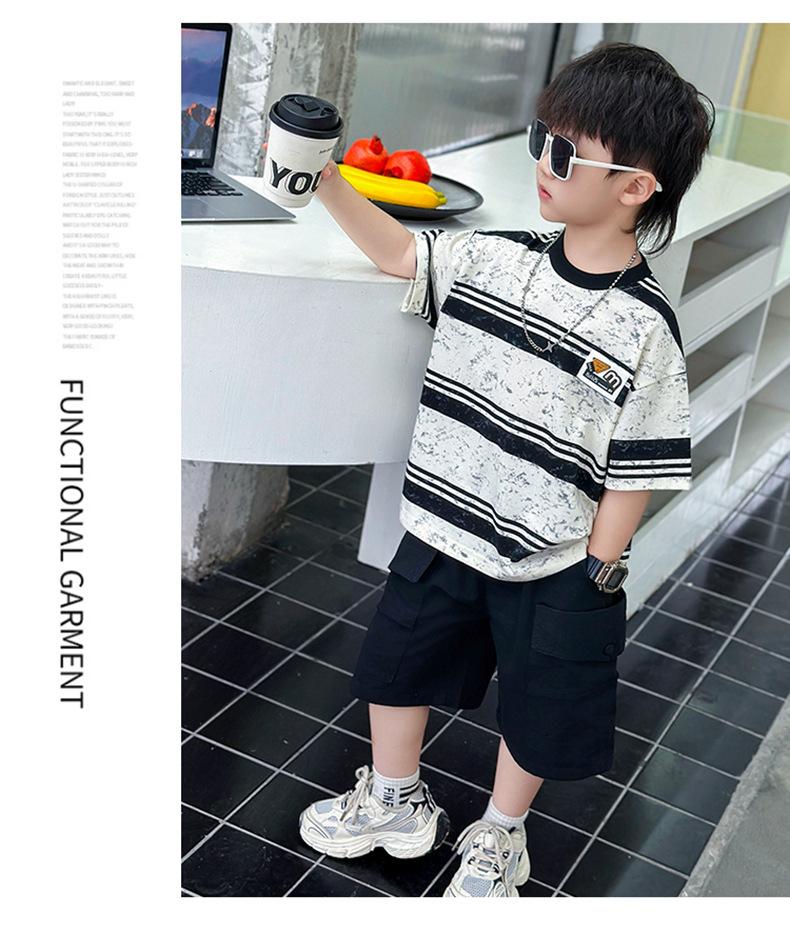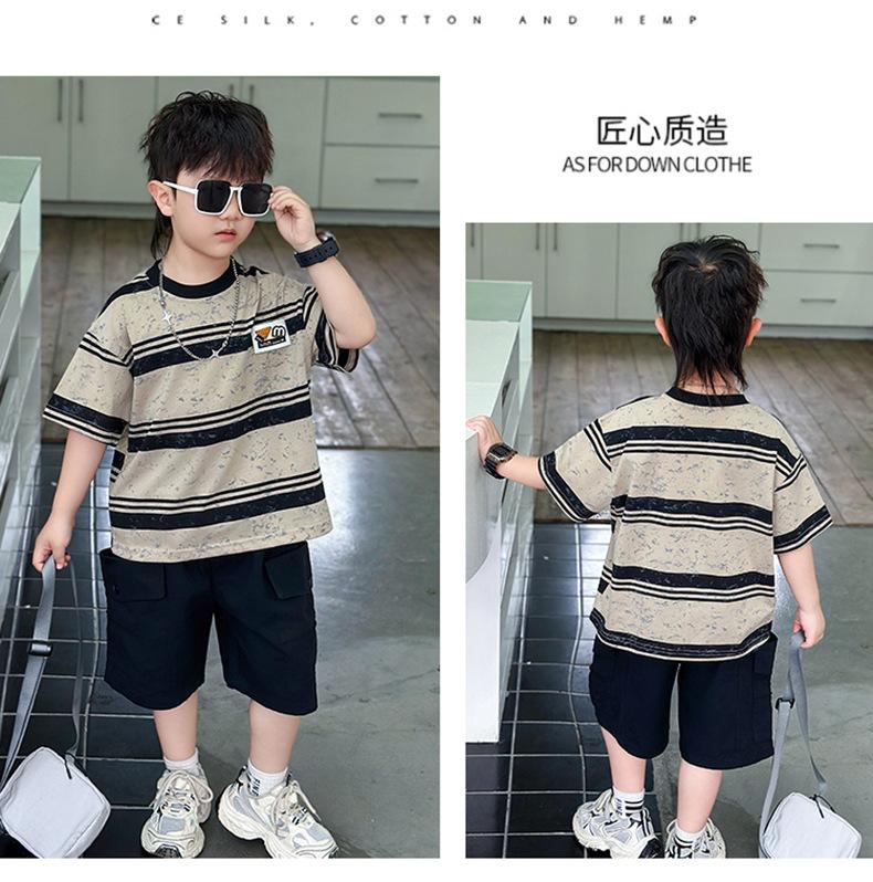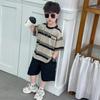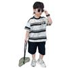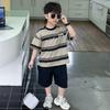 Traje para niño Ropa de verano Camiseta de rayas de manga corta para niños Conjunto de dos piezas 2025 Nuevo verano Bebé niño Manga corta Ropa para niños