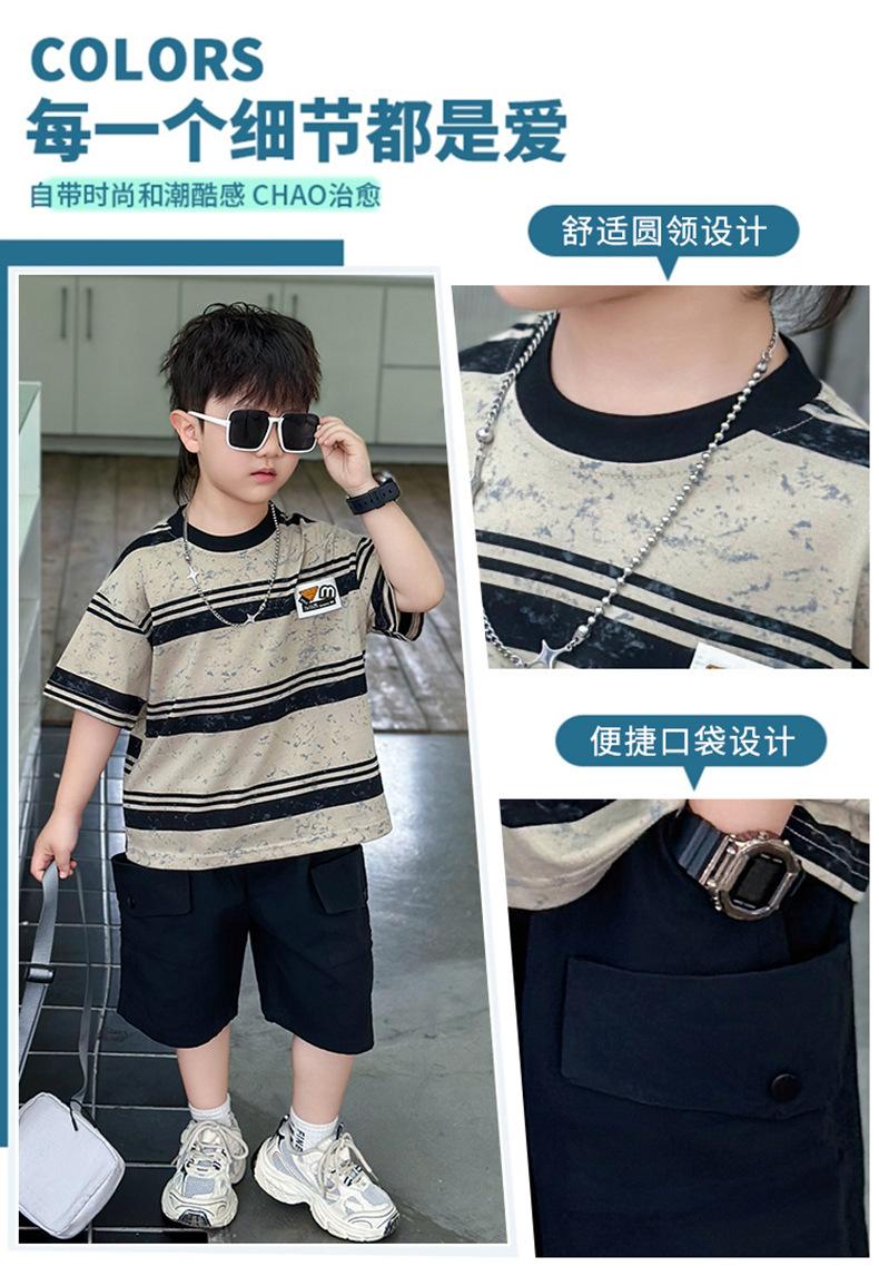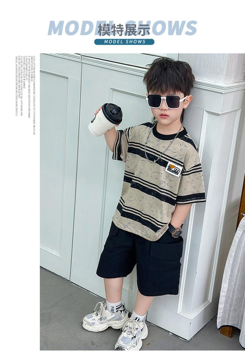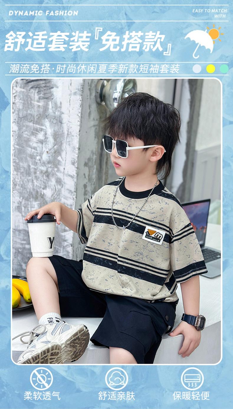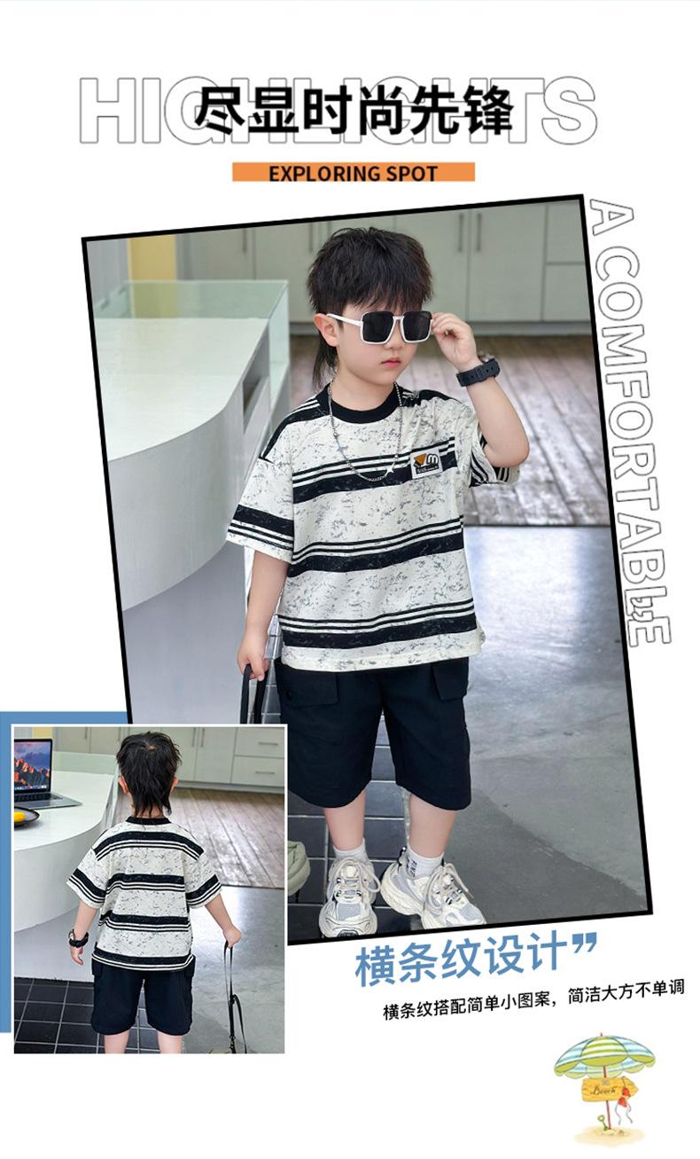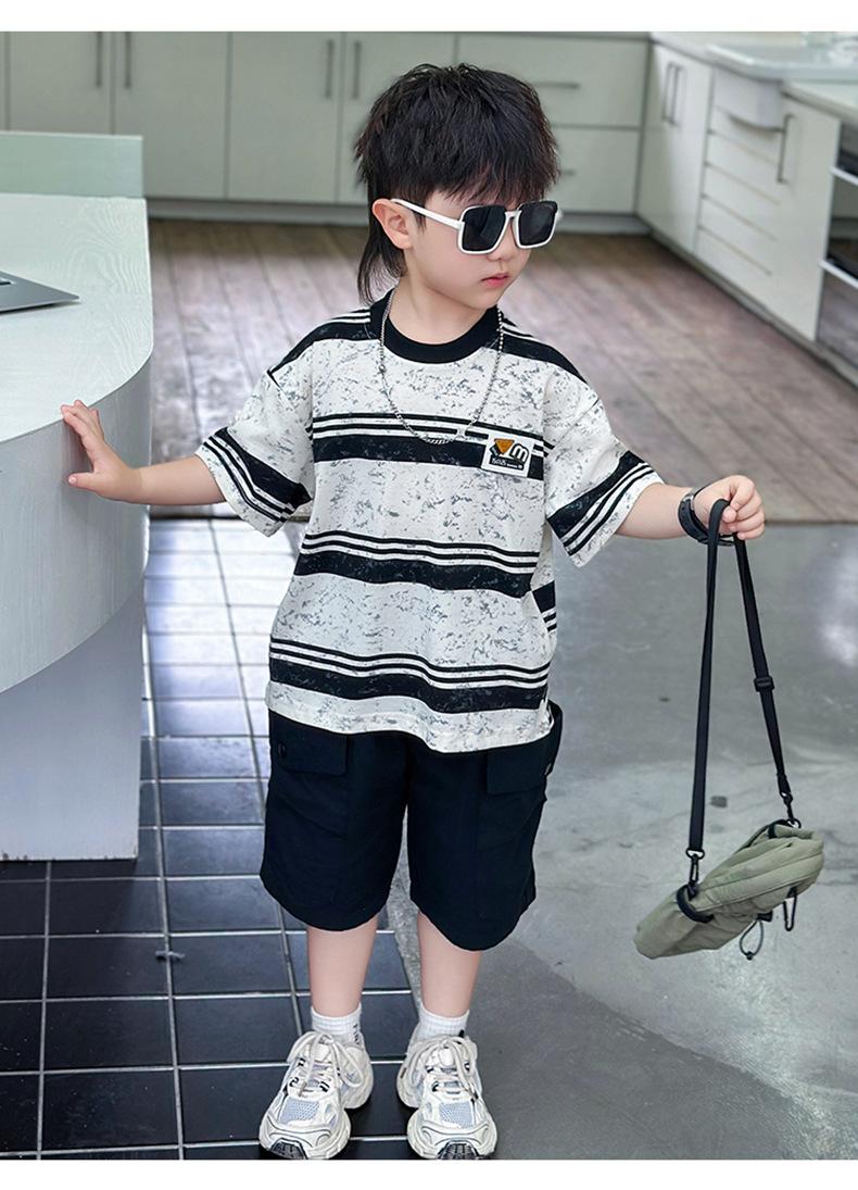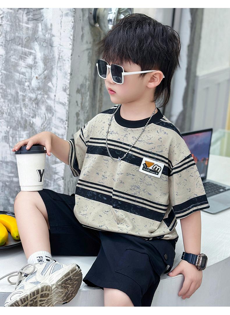 Traje para niño Ropa de verano Camiseta de rayas de manga corta para niños Conjunto de dos piezas 2025 Nuevo verano Bebé niño Manga corta Ropa para niños