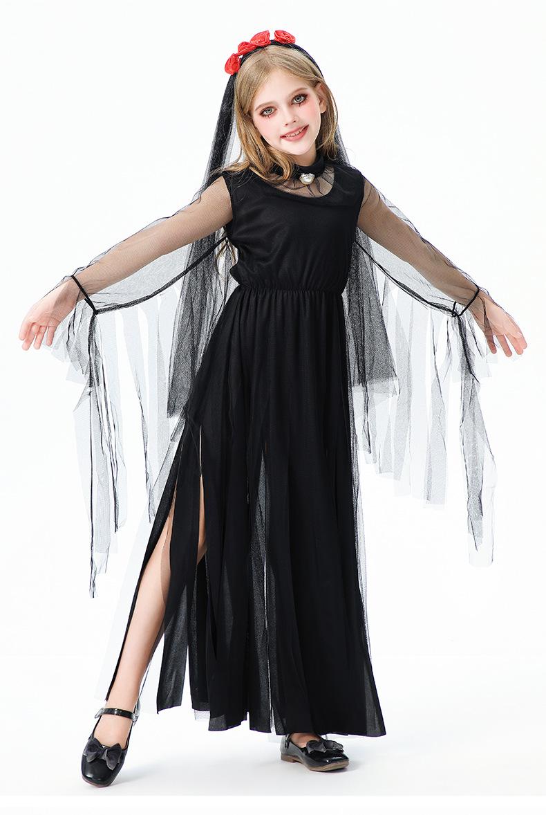 Disfraces de Halloween para Niñas, Demonio Oscuro, Novia Demonio, Falda Larga, Bruja Vampiro, Disfraces Divertidos de Actuación Europeos y Americanos