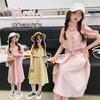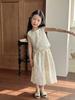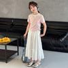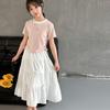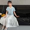 Vestido de Verano para Niñas 2025 Nuevo Estilo Coreano Lazo Manga Corta Mediano y Grande Traje de Falda de Encaje para Niños Vestido de Verano