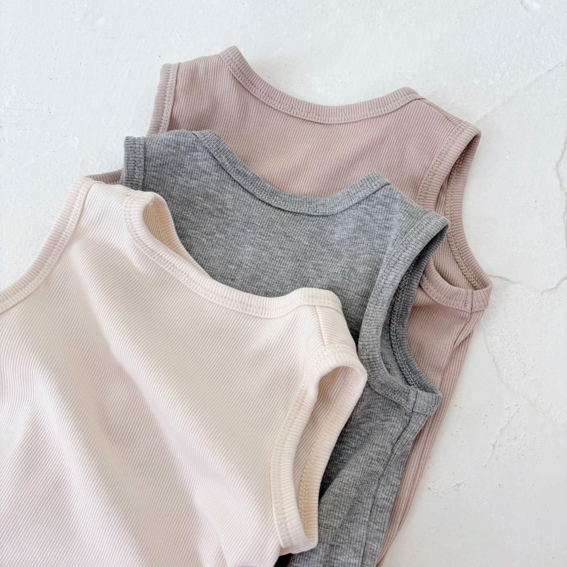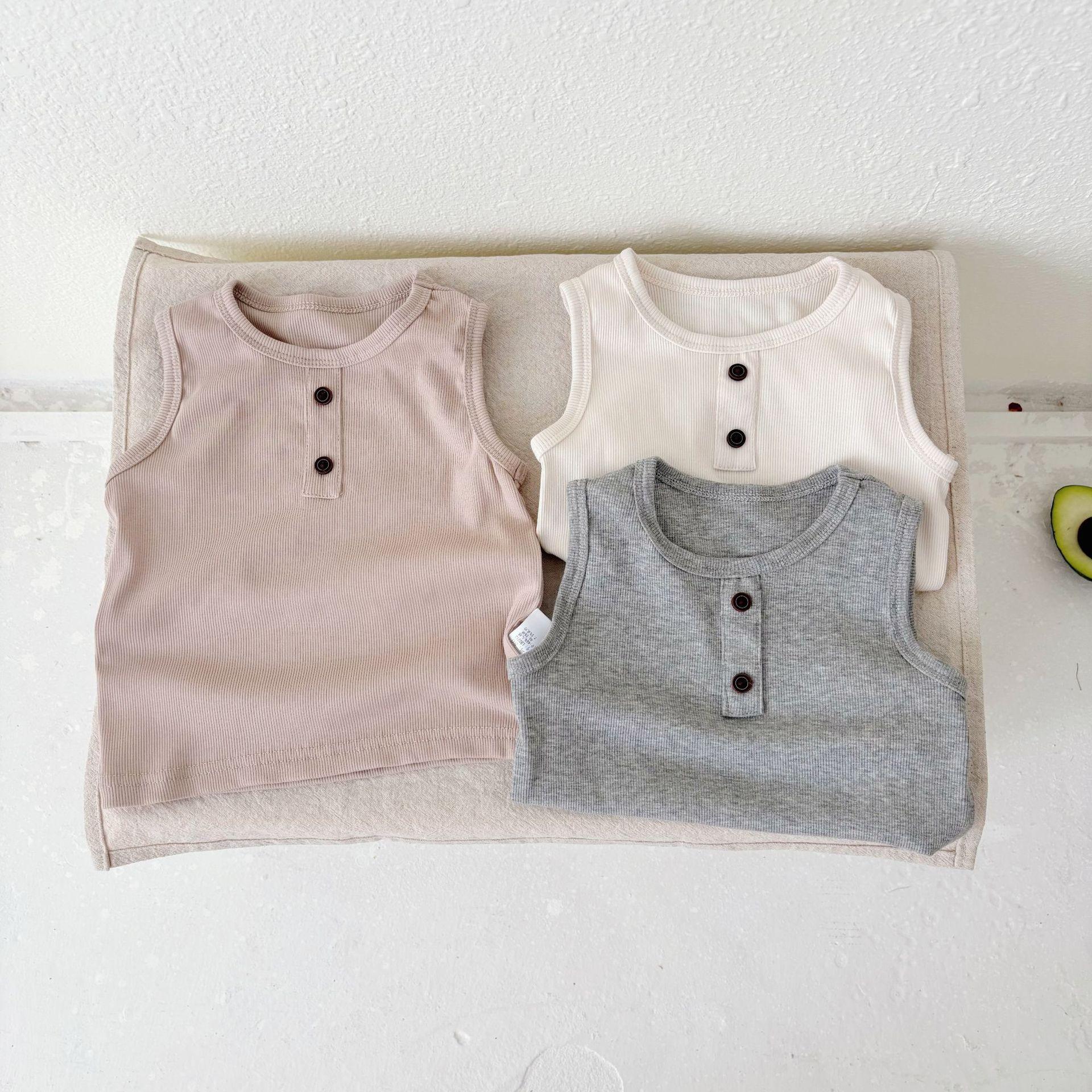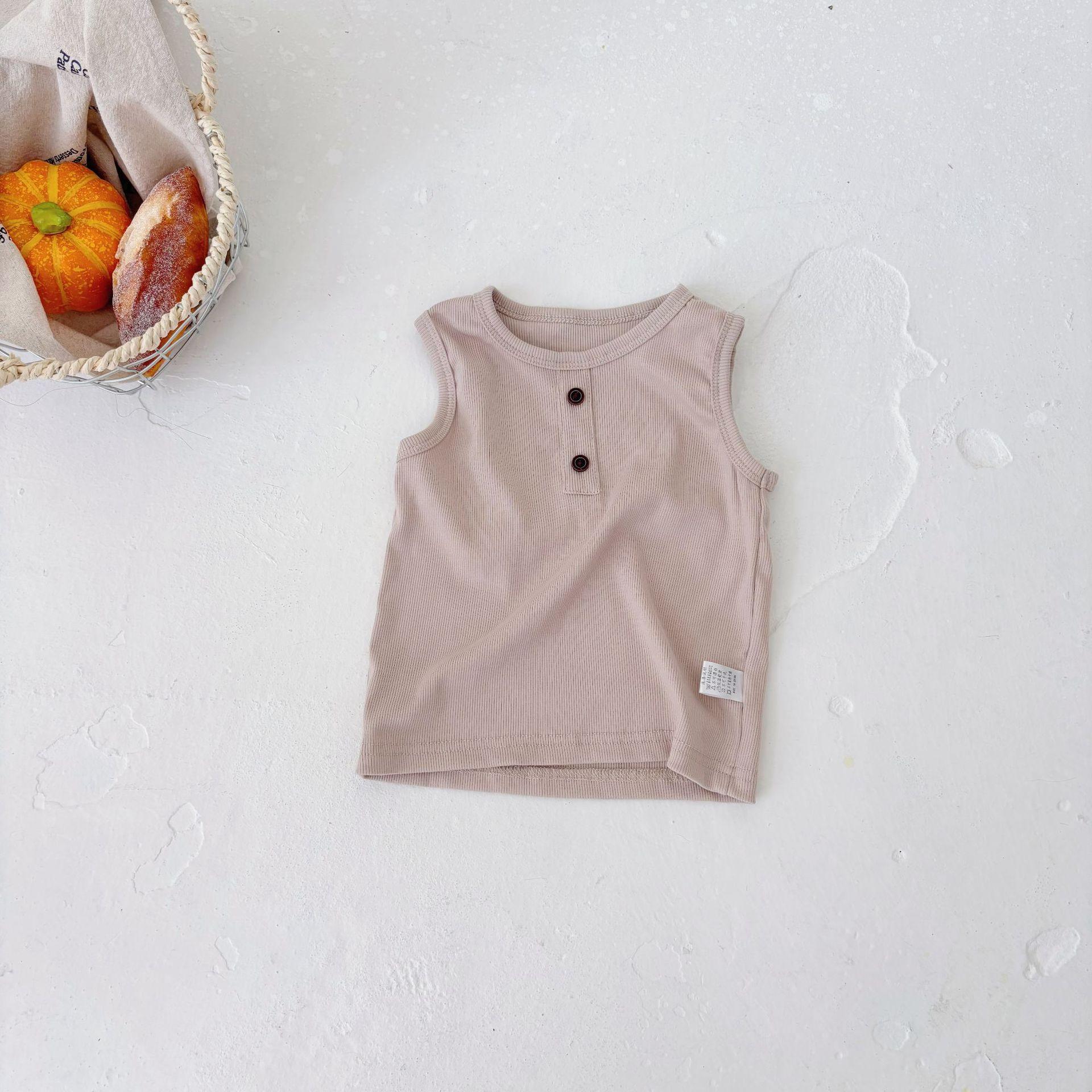 Playeras sin mangas versátiles de verano para niños con cuello redondo, camisetas de bebé de color puro con cuello redondo para niños y niñas para usar en casa y fuera.