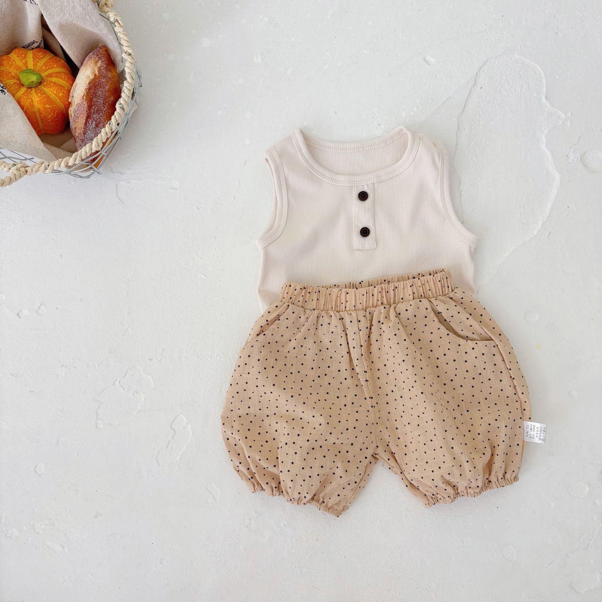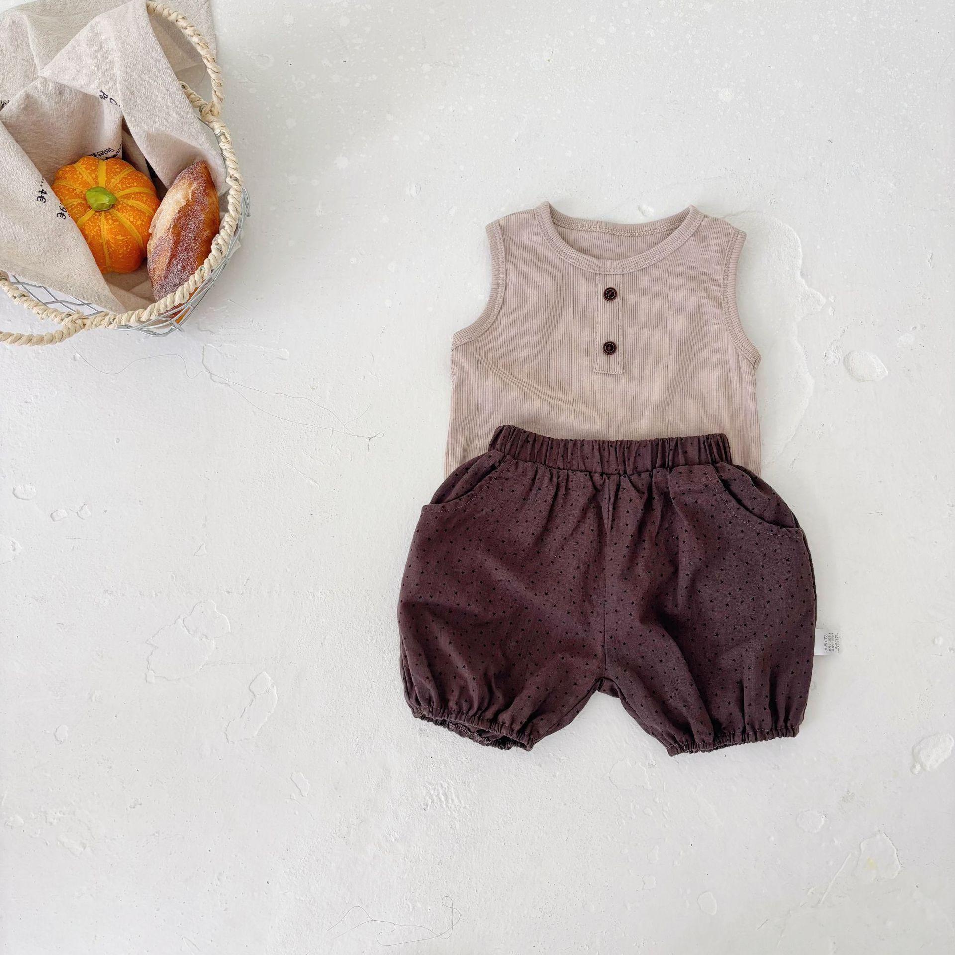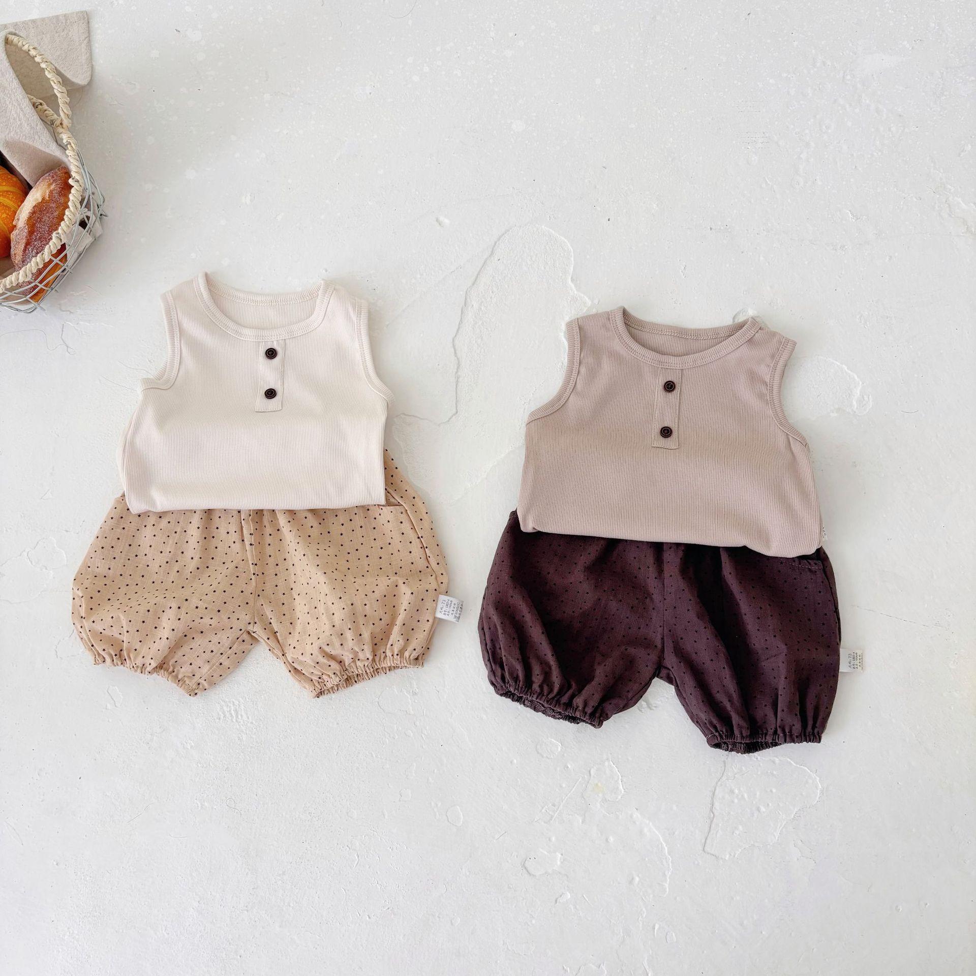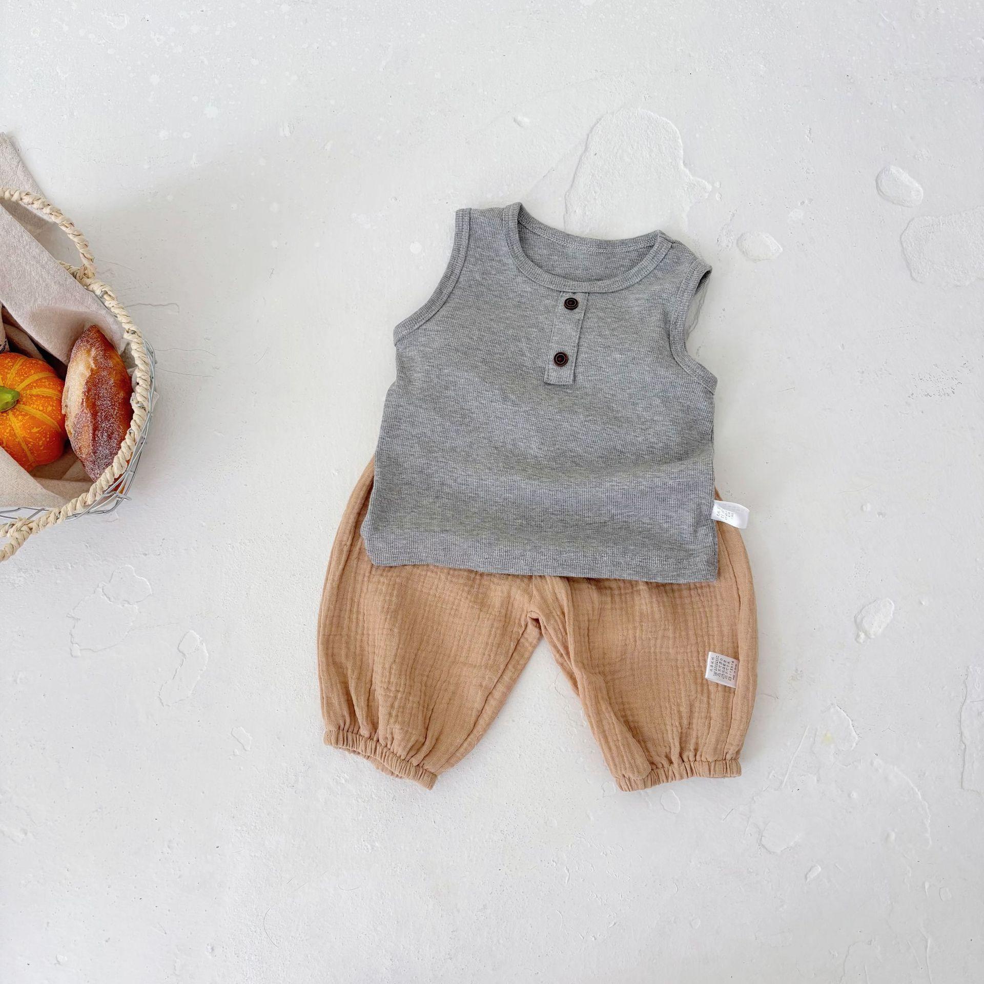Playeras sin mangas versátiles de verano para niños con cuello redondo, camisetas de bebé de color puro con cuello redondo para niños y niñas para usar en casa y fuera.