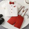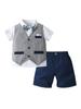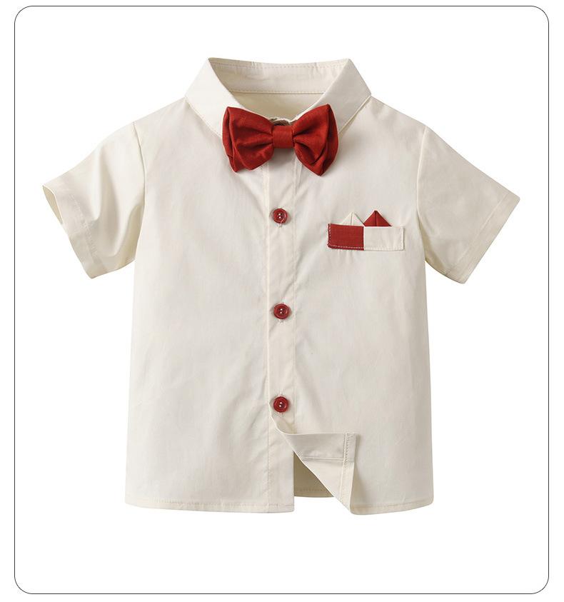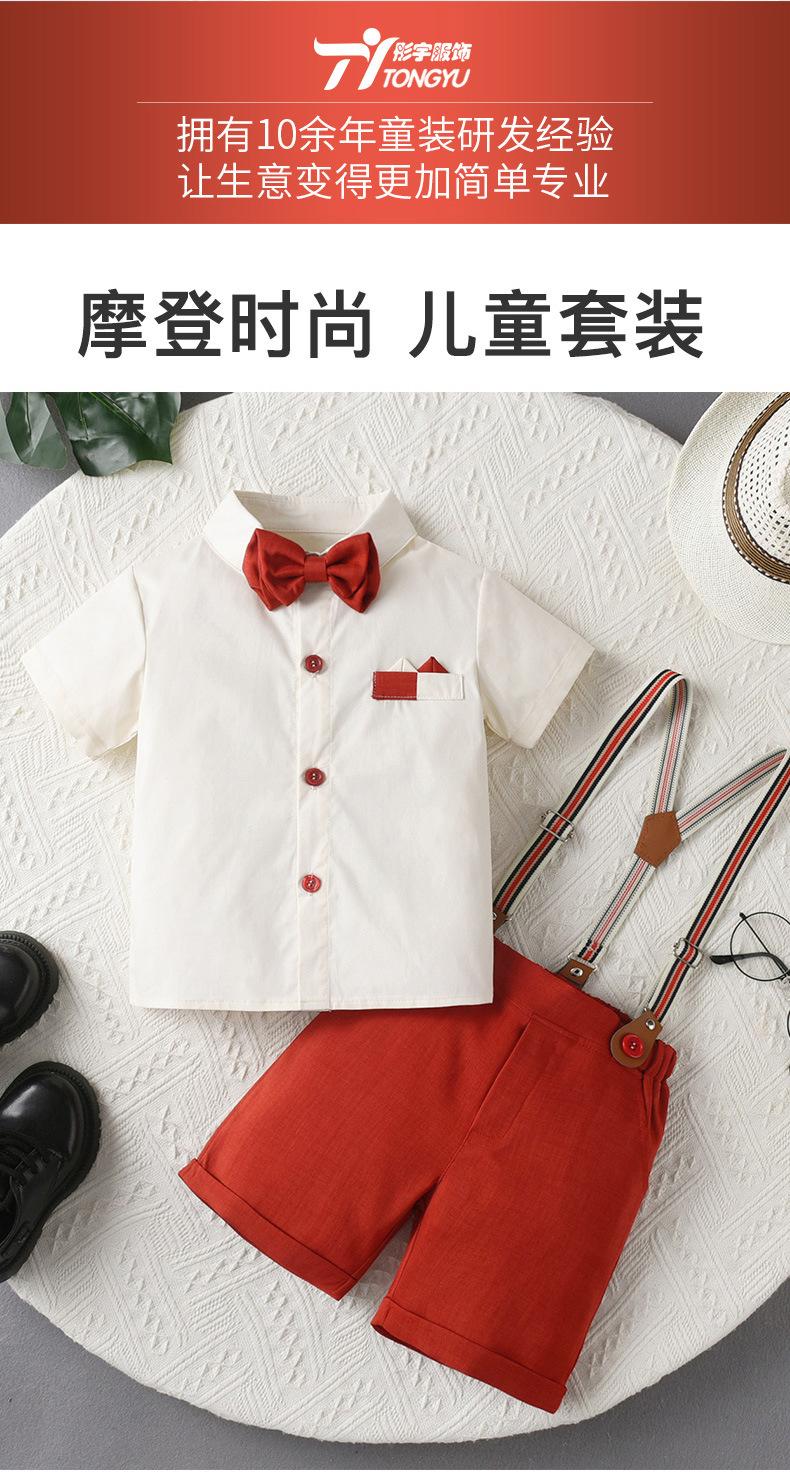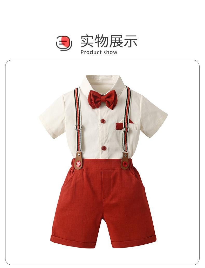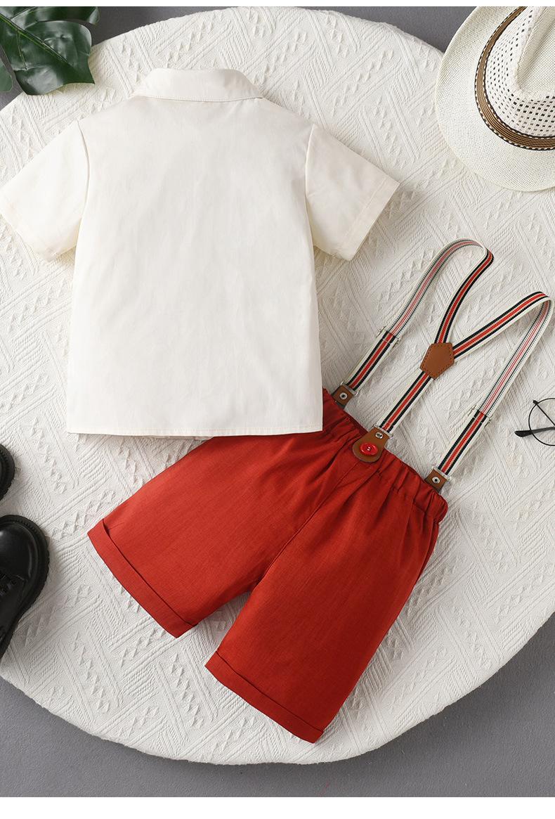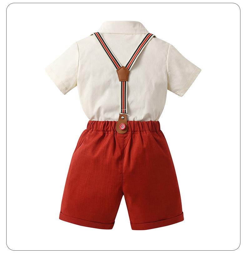 Traje de Caballero para Niño de Verano de Dos Piezas con Tirantes Europeos y Americanos Transfronterizos, Pantalones Cortos de Manga Corta para Bebé y Niño, Vestido de Verano para Niño