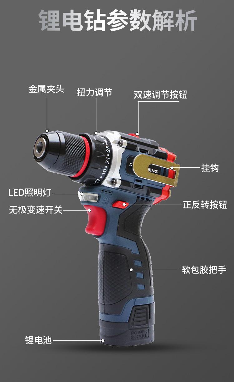 Taladro Eléctrico de Litio sin Escobillas Destornillador Eléctrico Recargable Hogar Multifuncional Pequeña Pistola de Acero Taladro de Mano Herramienta Eléctrica