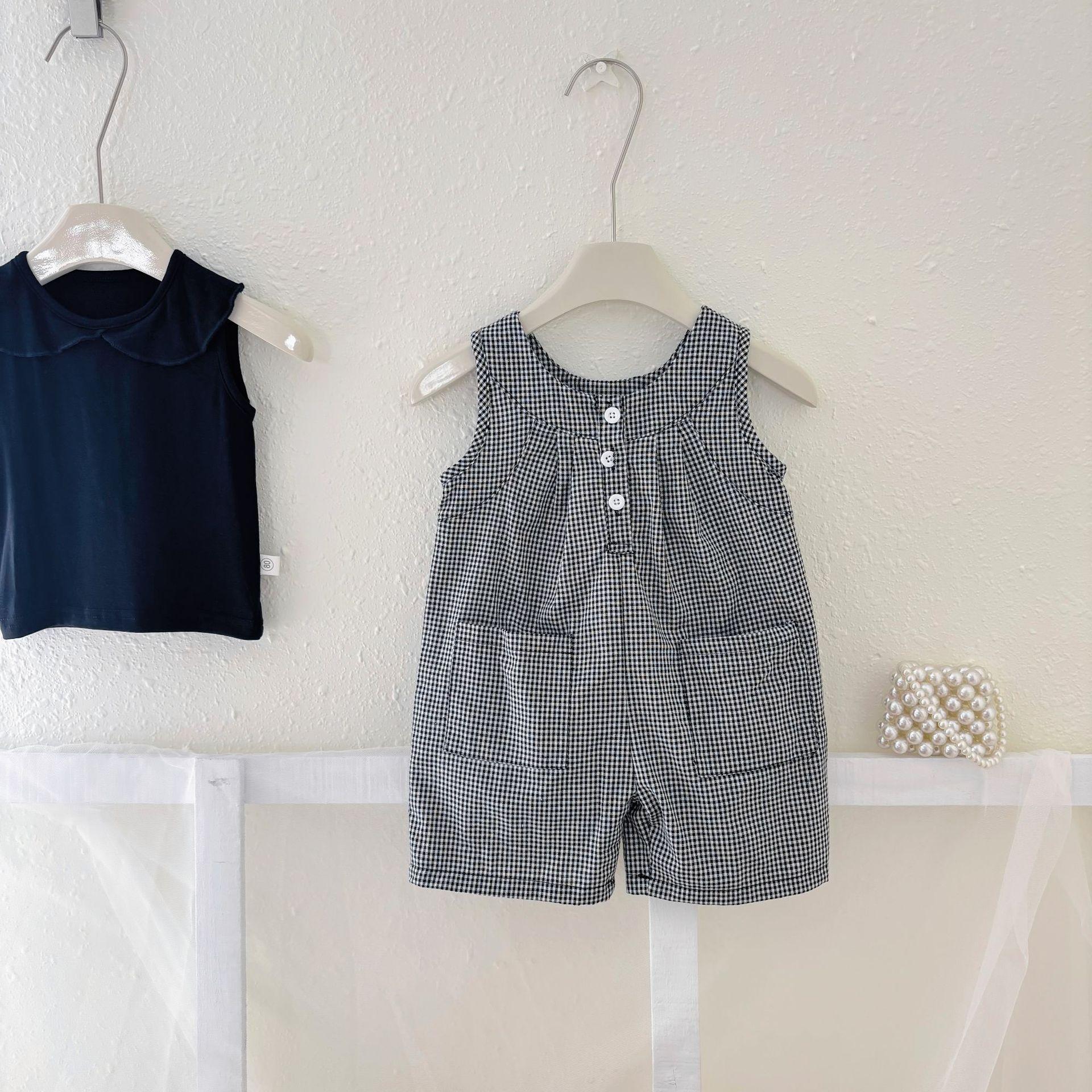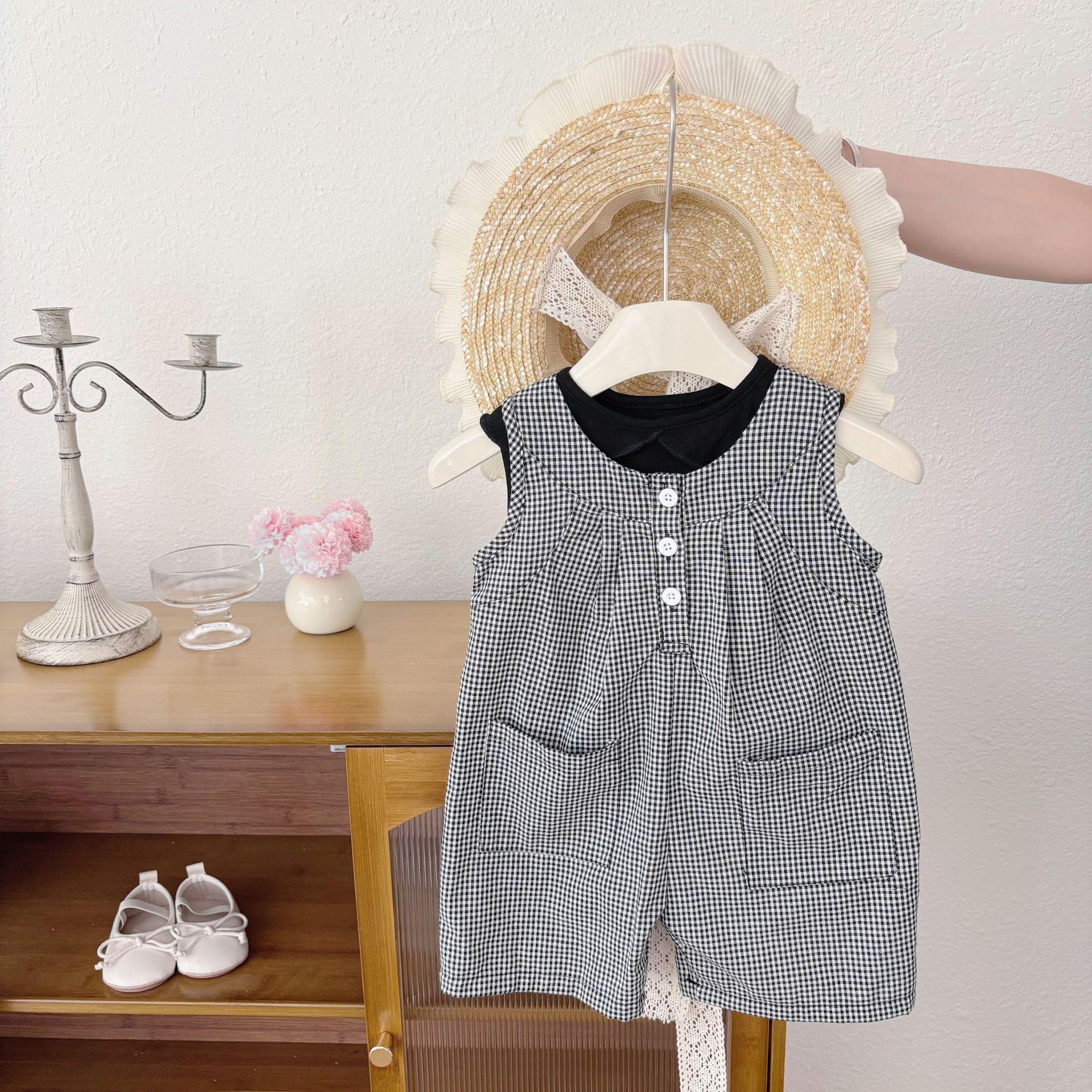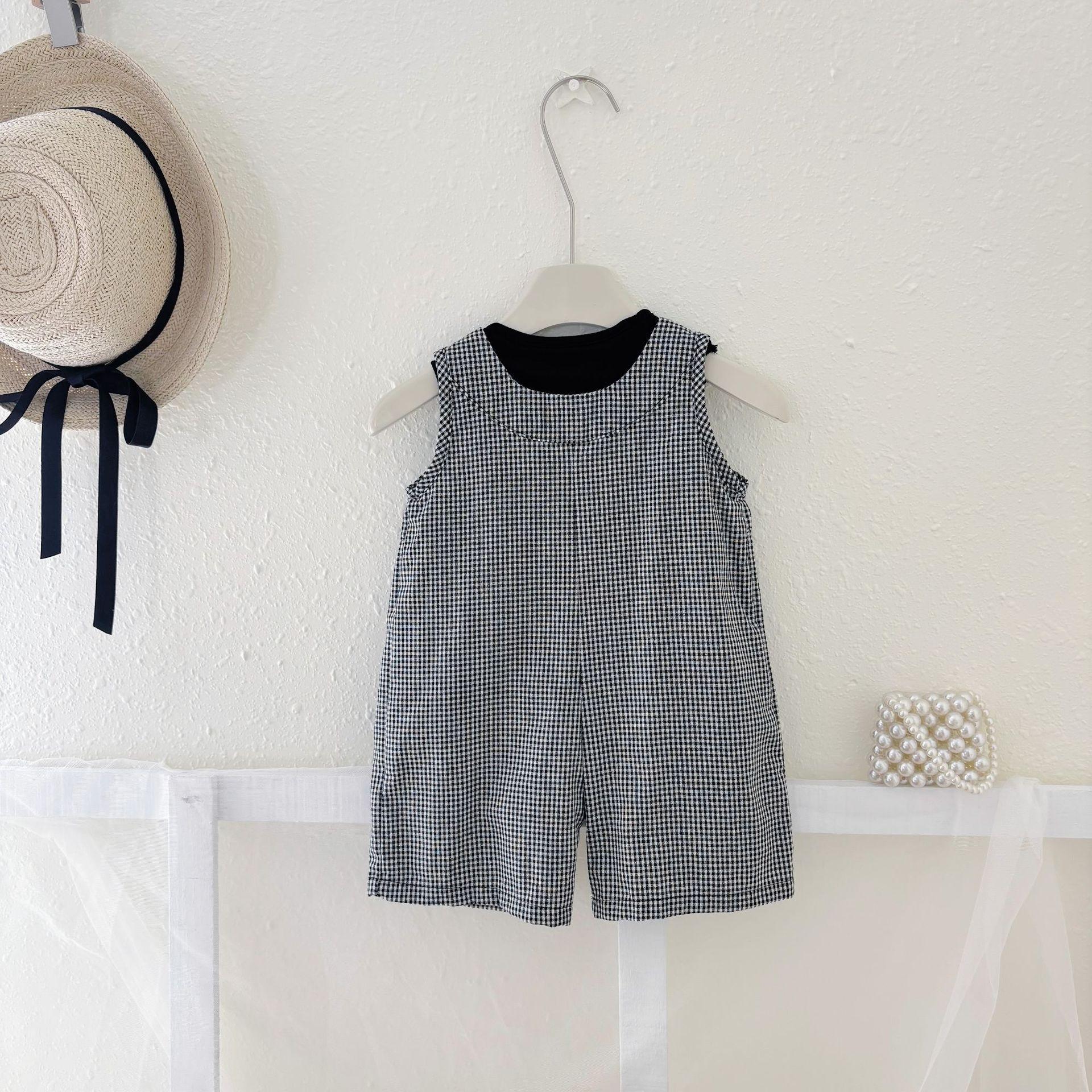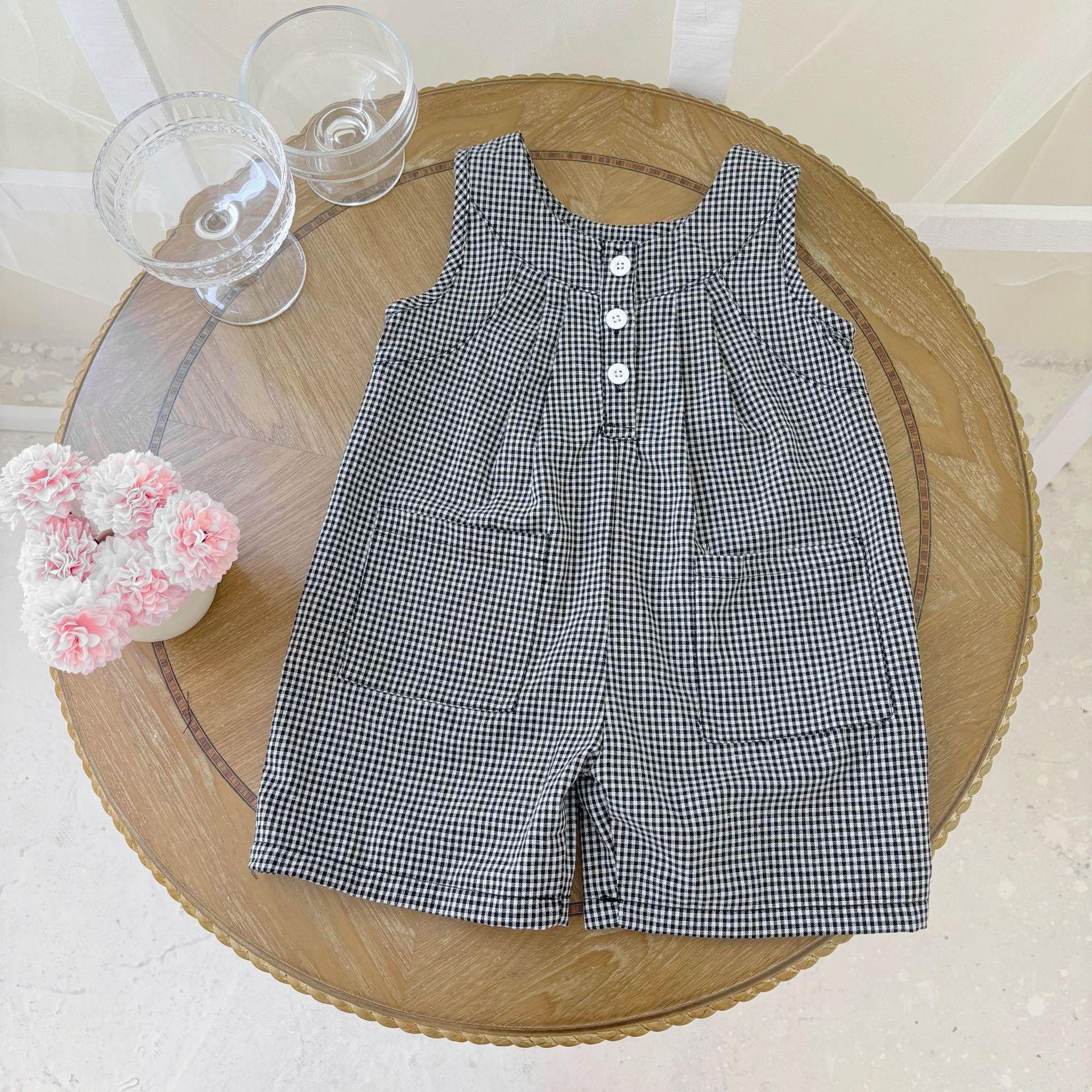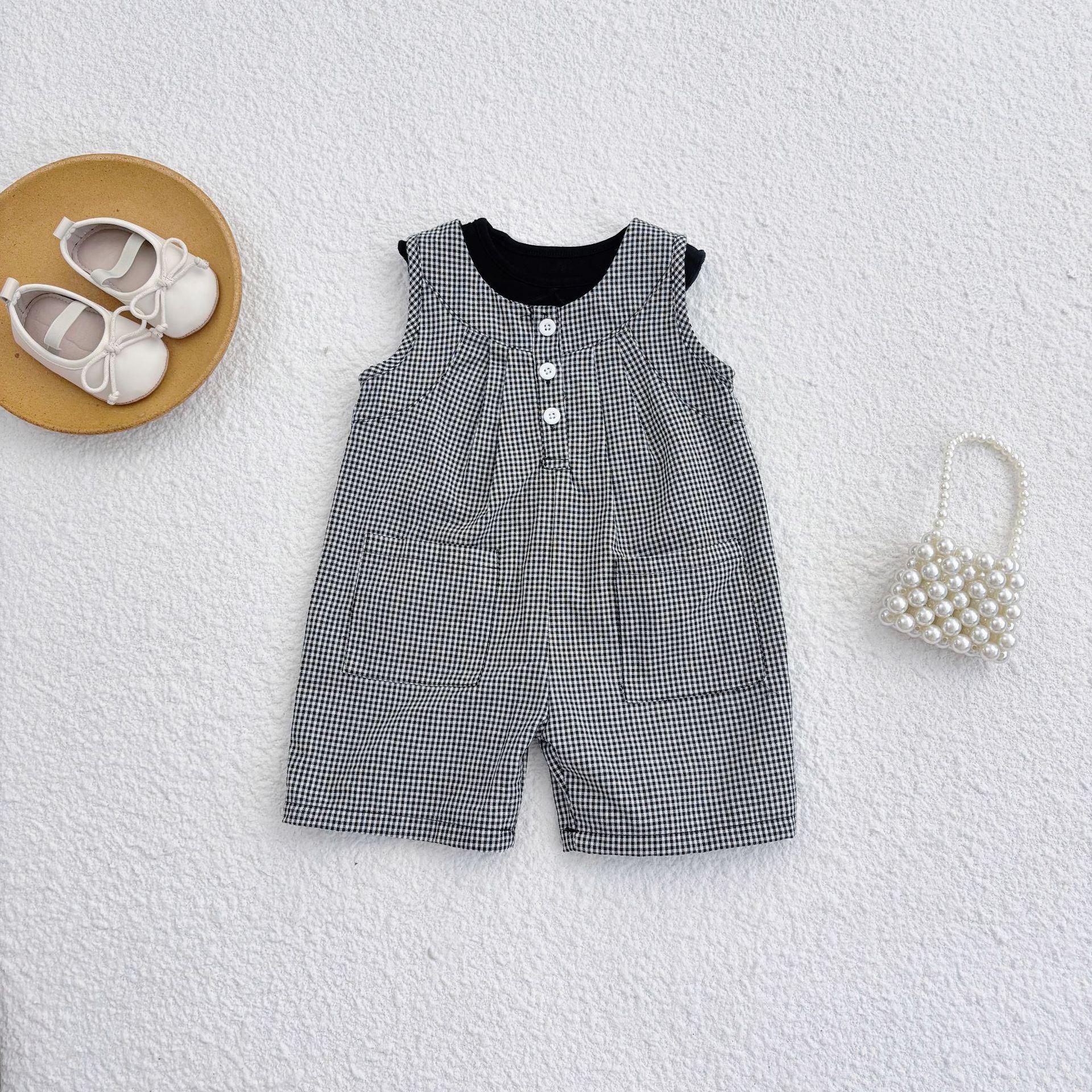 Ropa de Verano para Niños Estilo Coreano 2025 Mameluco Casual Holgado Delgado a Cuadros para Bebé Niño y Niña con Tirantes Ropa de Bebé