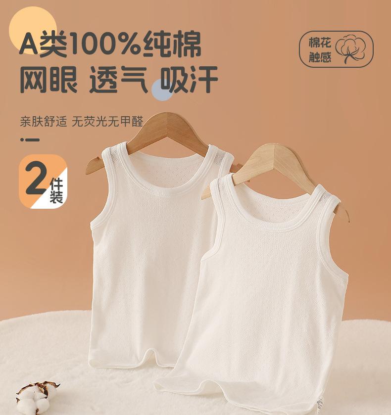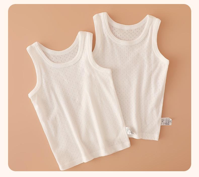Chaleco Infantil de Malla de Algodón Puro Estilo Japonés Camiseta Base Blanca Delgada Verano Sin Mangas Camiseta Interior Clase A para Niños y Niñas Bebé
