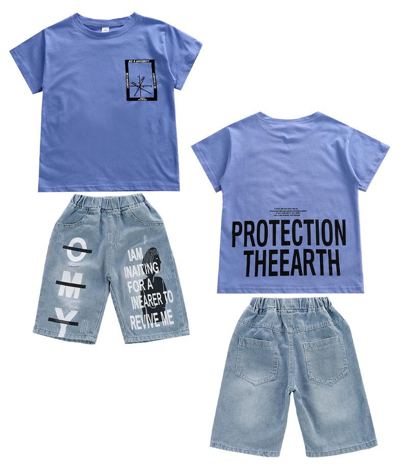 Traje de Verano para Niño 2025 Nuevo Bebé Verano Celebridad de Internet Ropa de Calle Niños Genial y Guapo Conjunto de Dos Piezas de Manga Corta