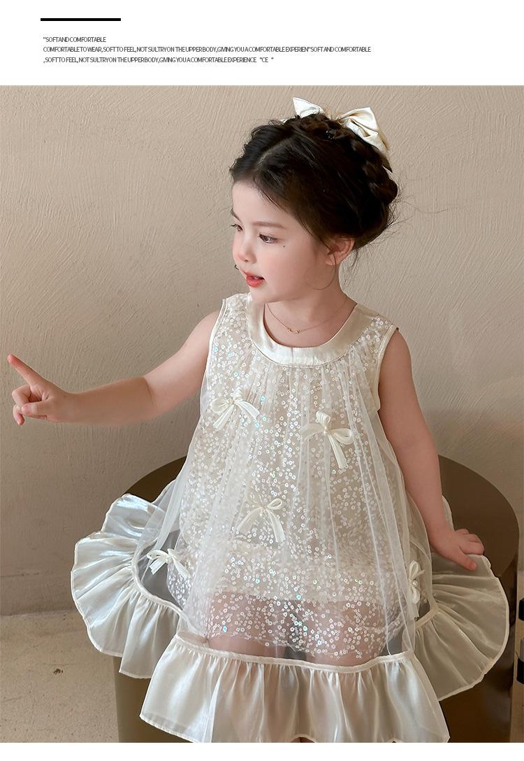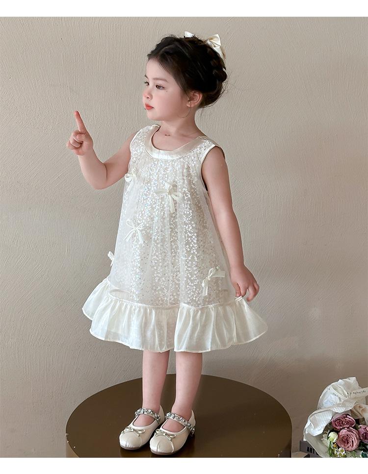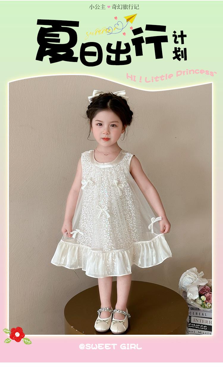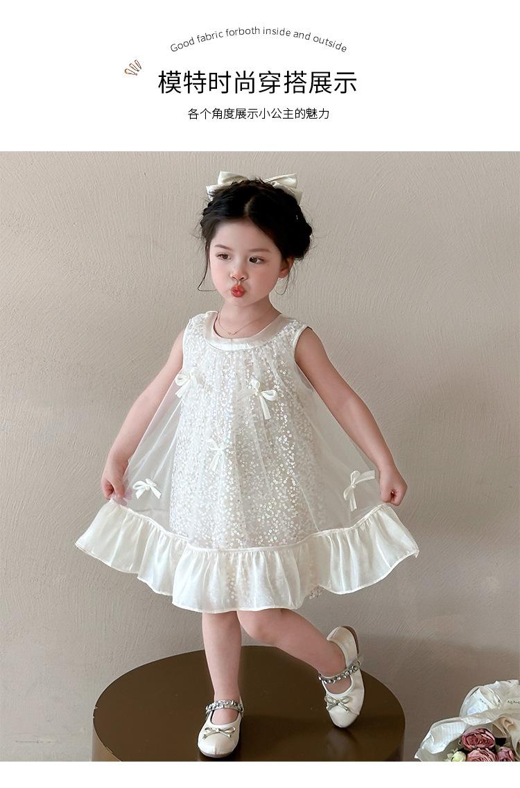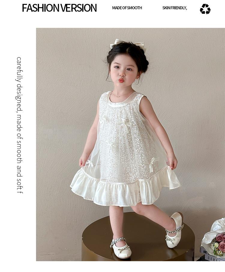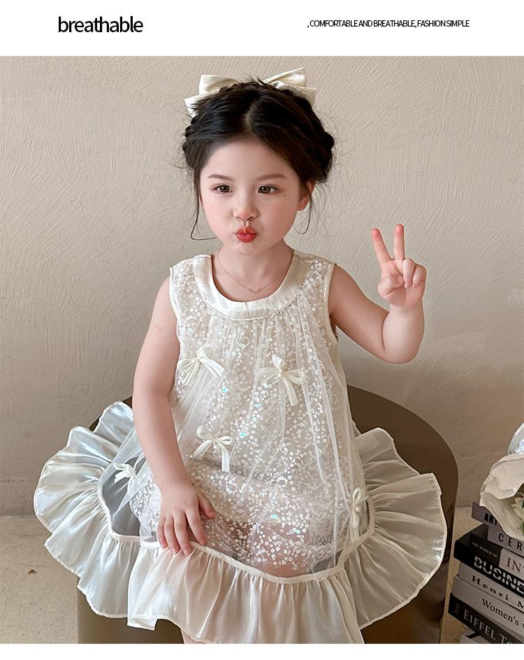 Vestido de Lentejuelas con Lazo para Niña 2025 Verano Nueva Moda Vestido de Princesa Elegante para Niña Vestido de Verano para Niños