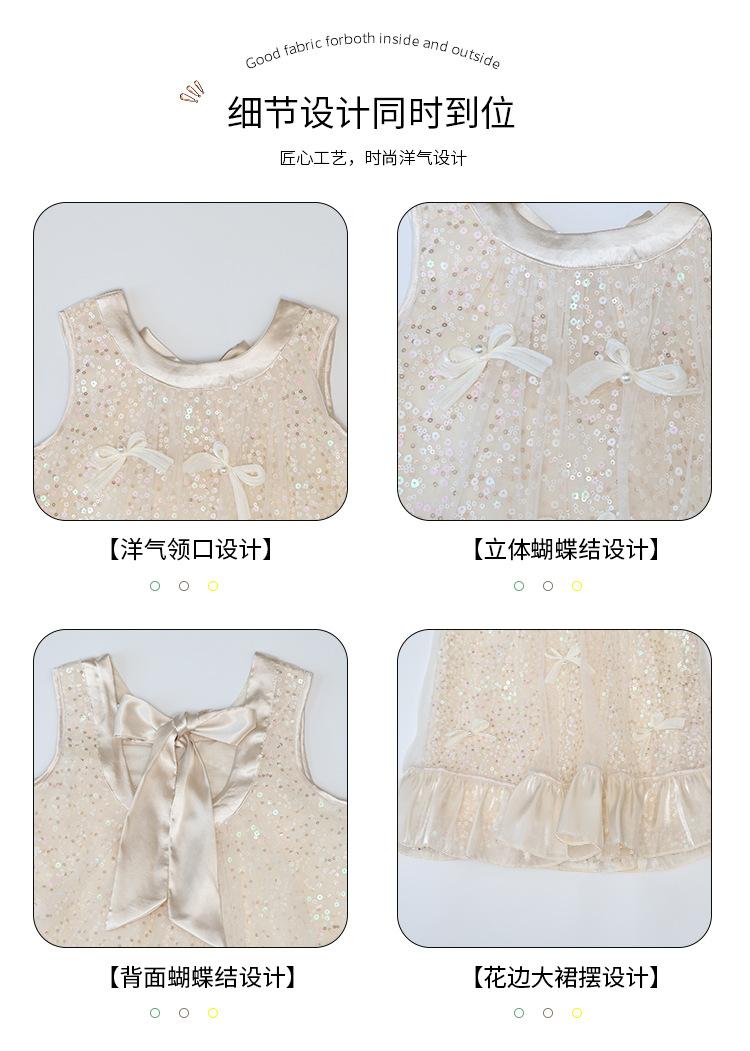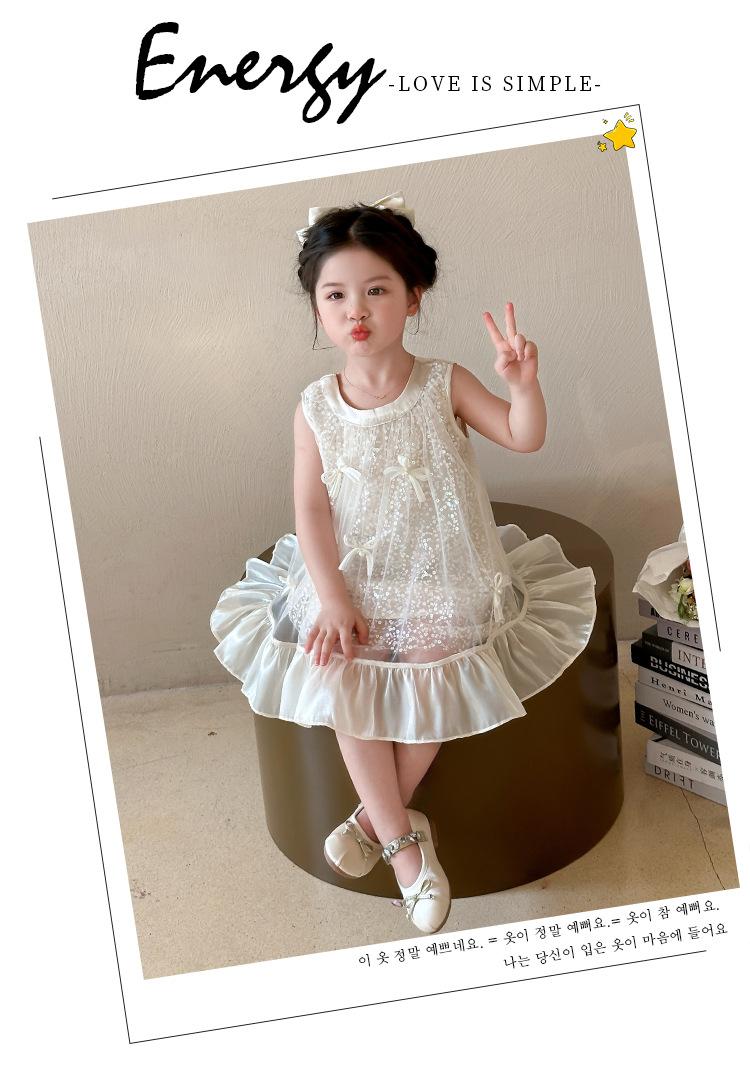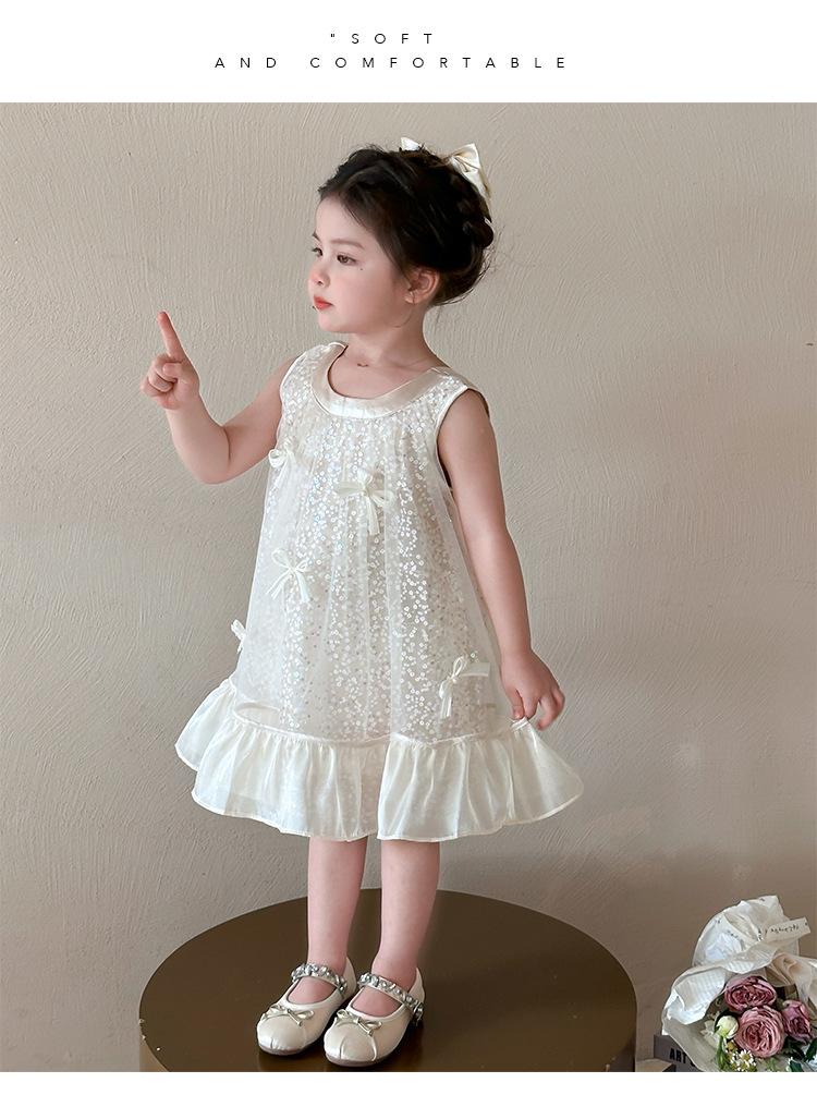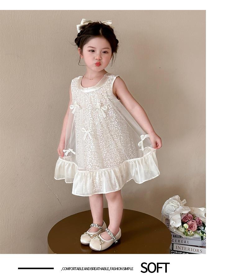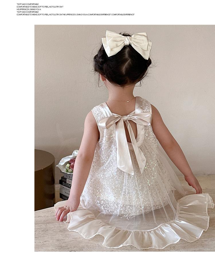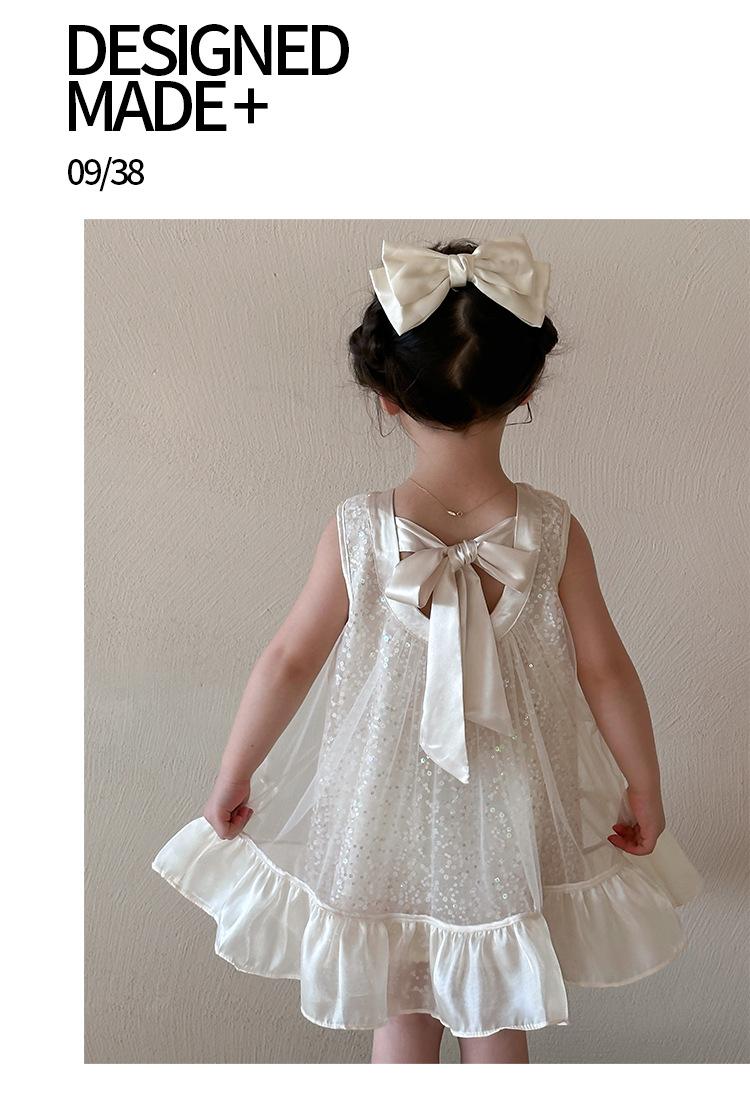 Vestido de Lentejuelas con Lazo para Niña 2025 Verano Nueva Moda Vestido de Princesa Elegante para Niña Vestido de Verano para Niños