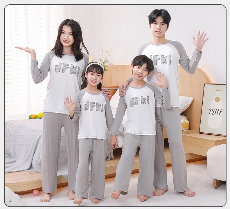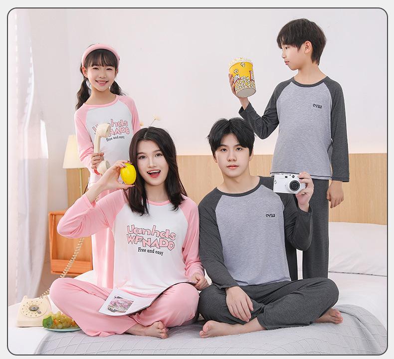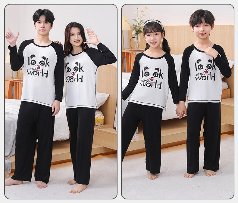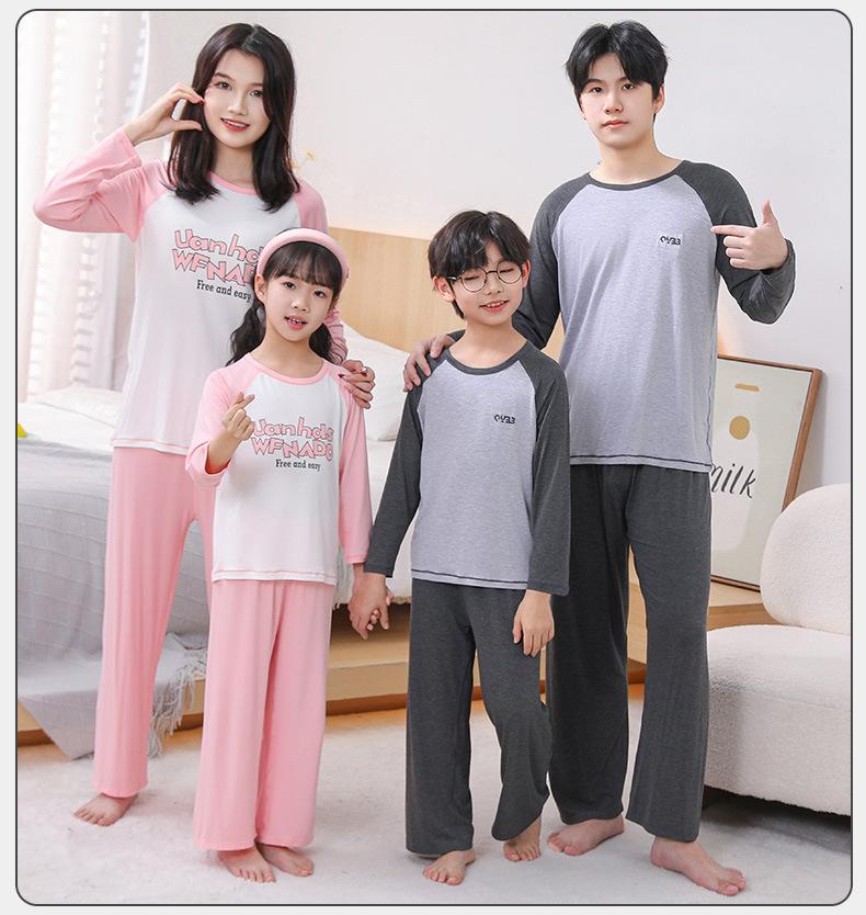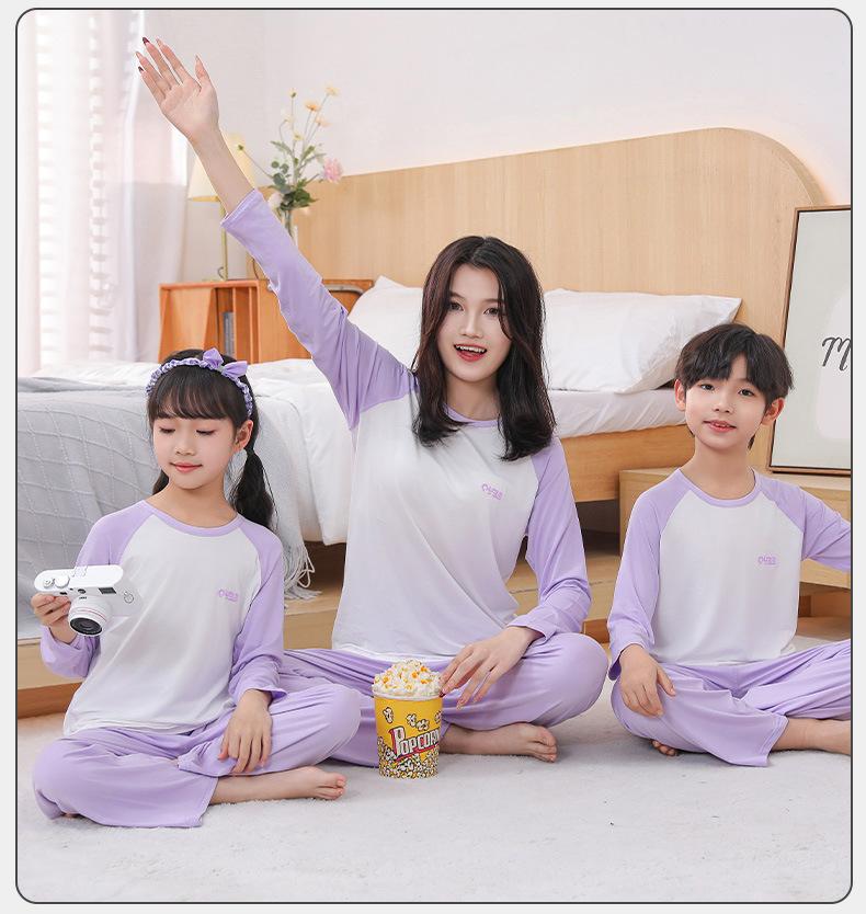 Pijamas para niños Modal Ropa para el hogar para niños Ropa para aire acondicionado para padres e hijos Pantalones de manga larga para niñas Traje de seda helada para niños grandes