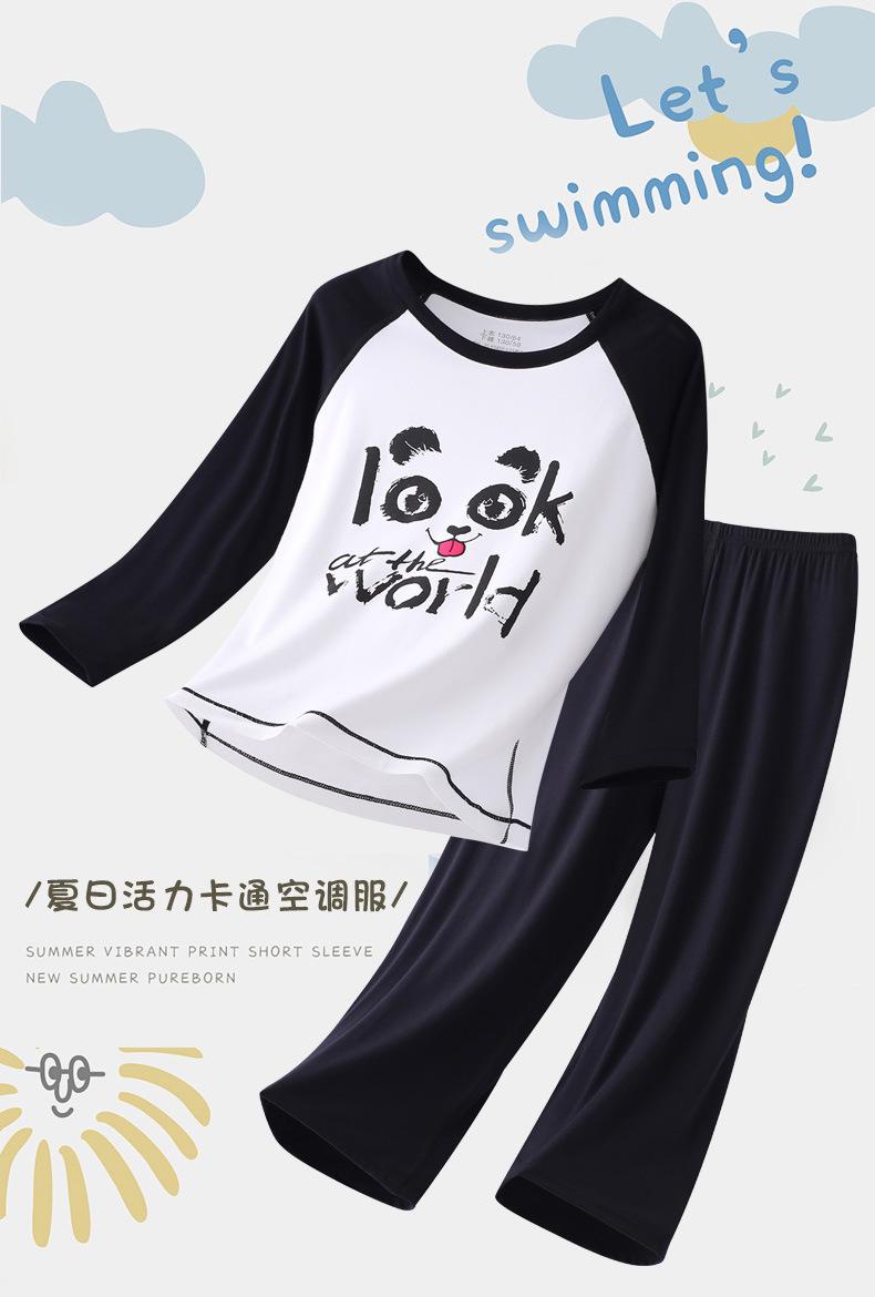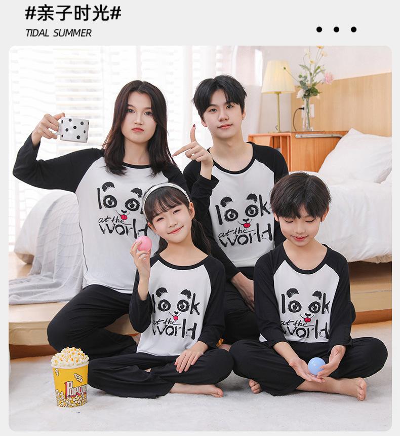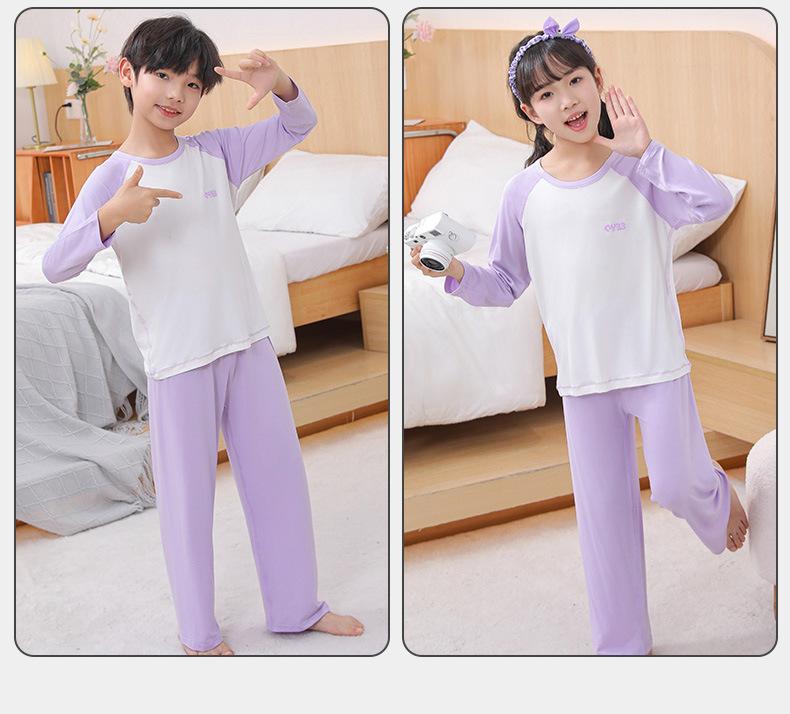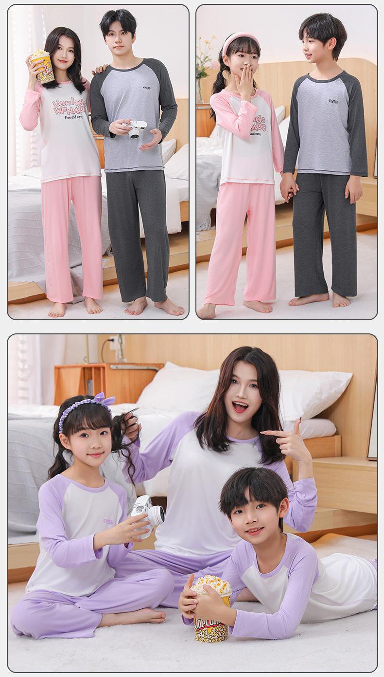 Pijamas para niños Modal Ropa para el hogar para niños Ropa para aire acondicionado para padres e hijos Pantalones de manga larga para niñas Traje de seda helada para niños grandes