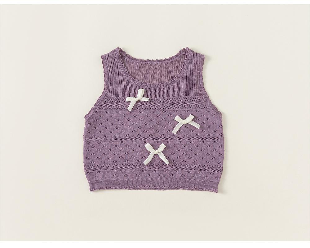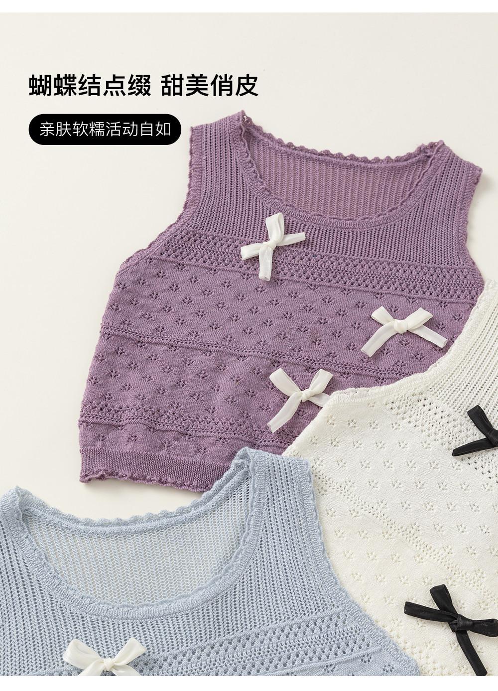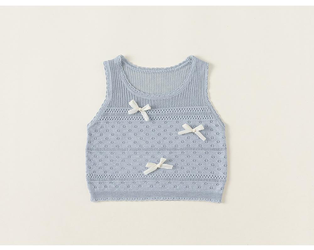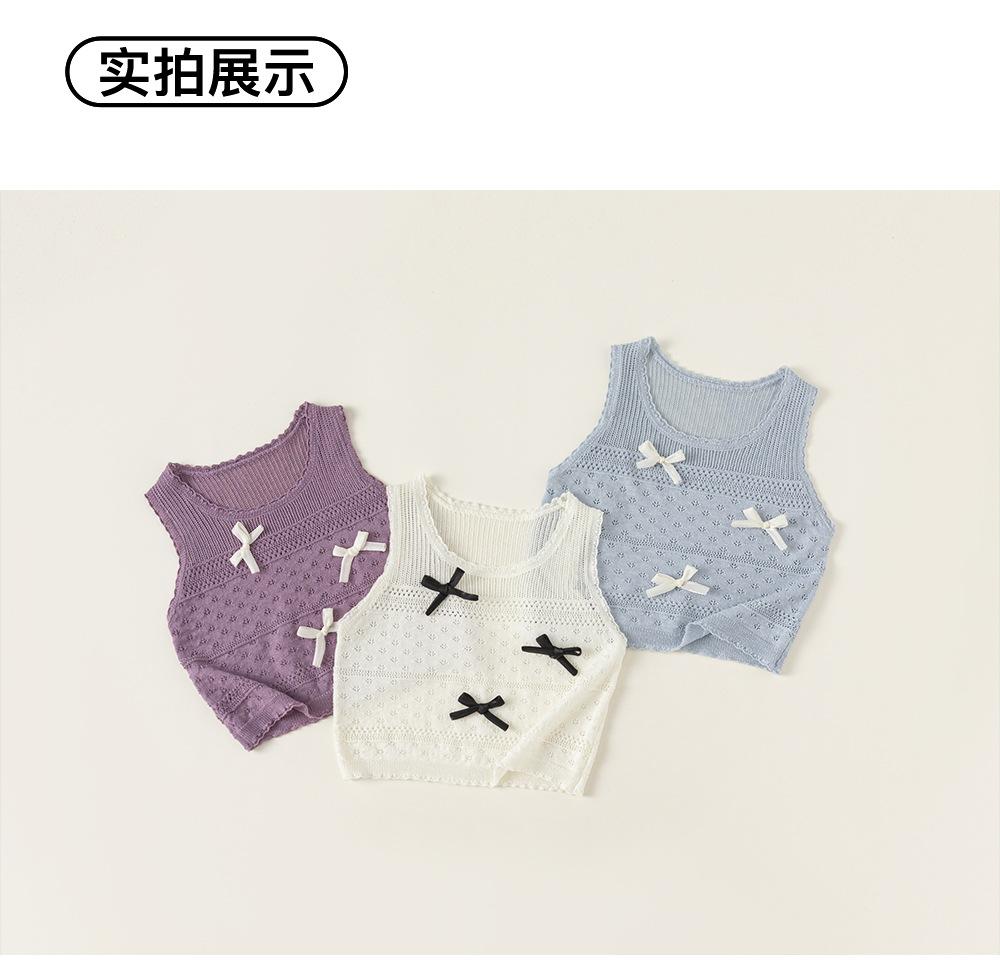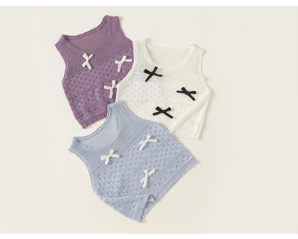 Ropa para Niños Yubao Ropa para Niños Nuevo Estilo Occidental Top sin Mangas para Niñas Color Sólido Cuello Redondo Ropa Lazo Chaleco Calado