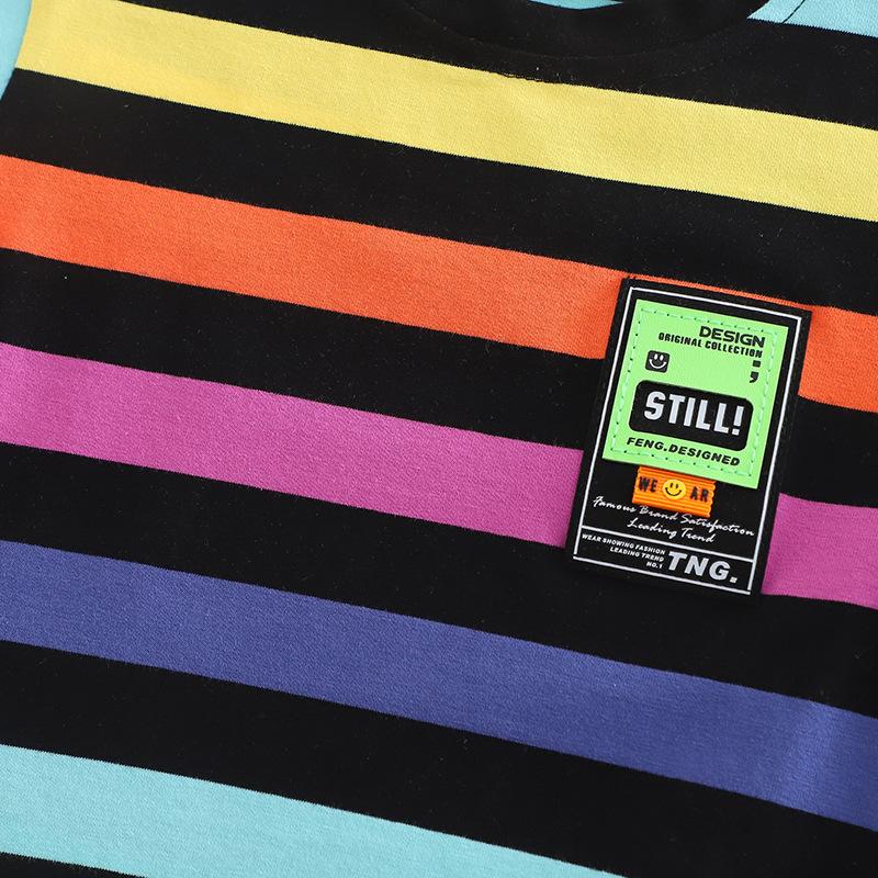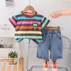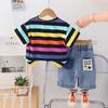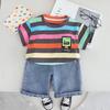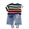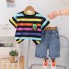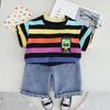 Traje de Verano para Niño 2025 Nuevo Manga Corta Niño Bebé Ropa Infantil Estilo Verano Rayas Conjunto de Dos Piezas Moderno