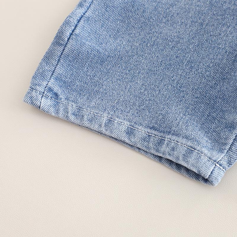 Brown striped denim short-sleeved suit
