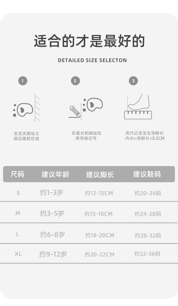 S size 2-4 years old, M size 4-6 years old, L size 6-8 years old, Xl size 9-12 years old