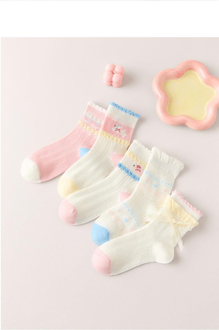 Colorful polka dot bubble socks/519001, Black and white bunny mesh tube/519503, Blue and white cat mesh tube/5...