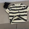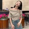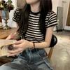 Playera de Rayas de Manga Corta Estilo Coreano para Mujer 2025 Nuevo Verano Estilo Americano Retro Estilo Europeo Top de Moda