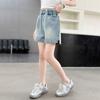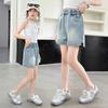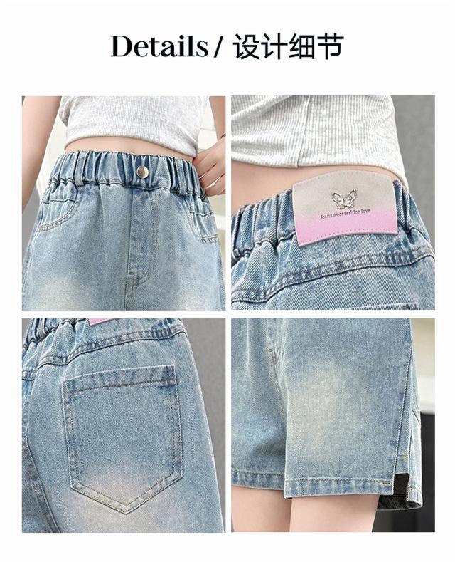 Shorts de mezclilla para niñas Verano 2025 Nuevos pantalones delgados de verano para niñas mayores Casuales con abertura Pantalones cortos de moda