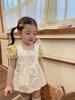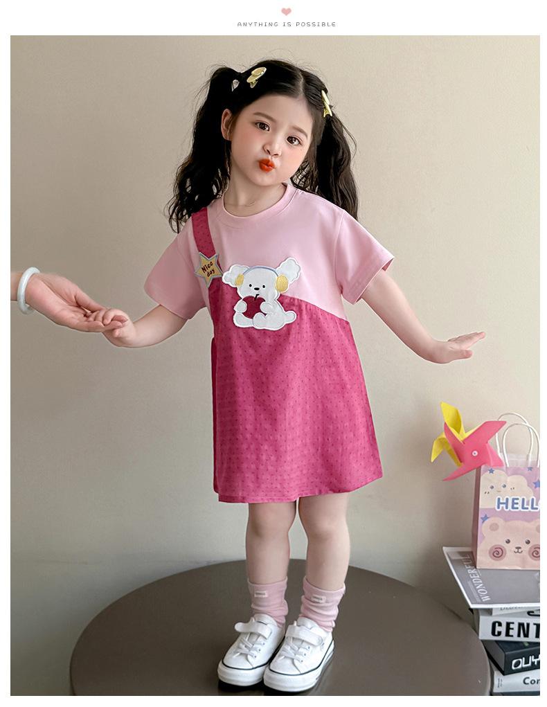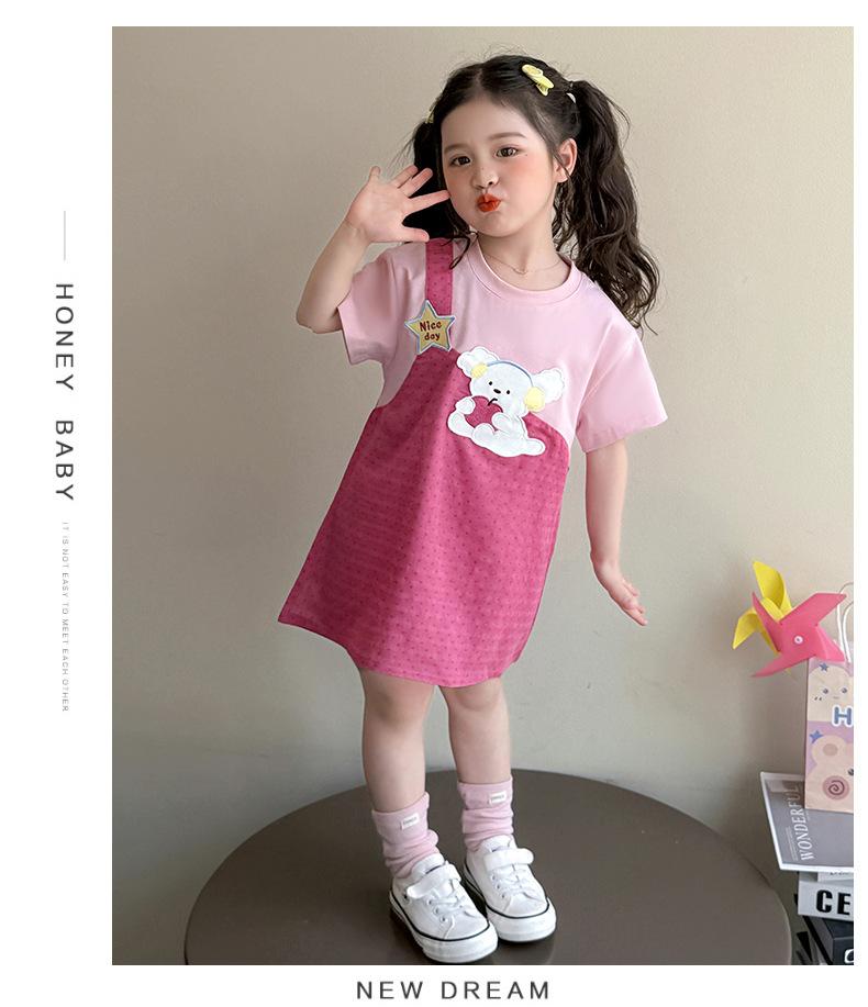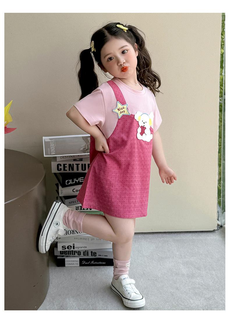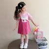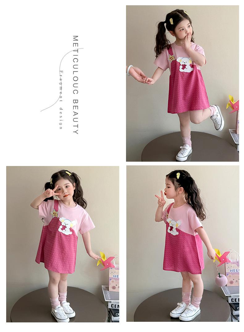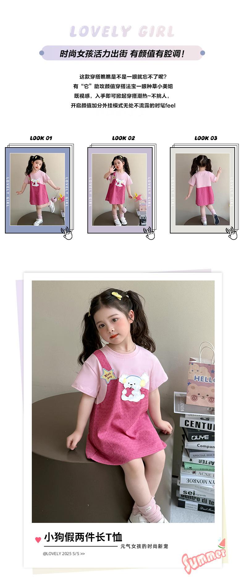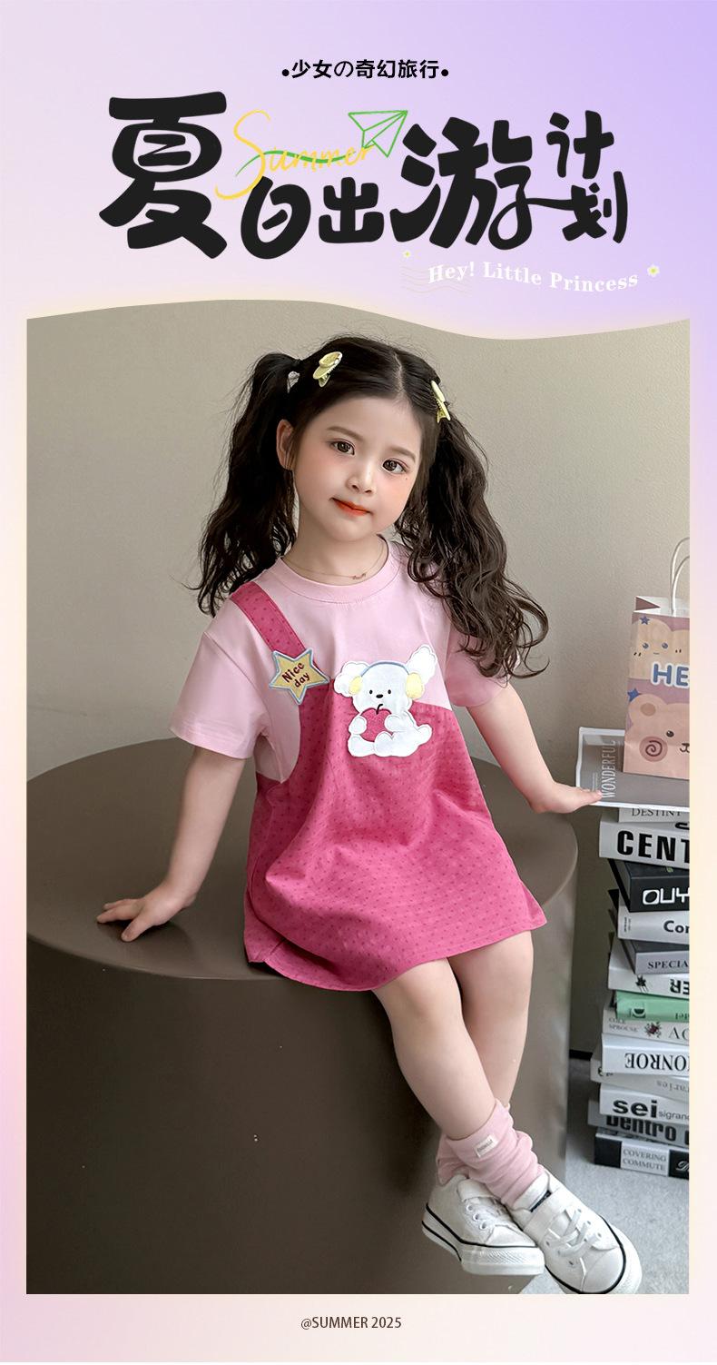 Vestido de Niña Verano 2025 Nuevo Vestido de Tirantes de Dos Piezas Falso para Niños Estilo Occidental Bebé Algodón Puro Delgado Vestido Camiseta