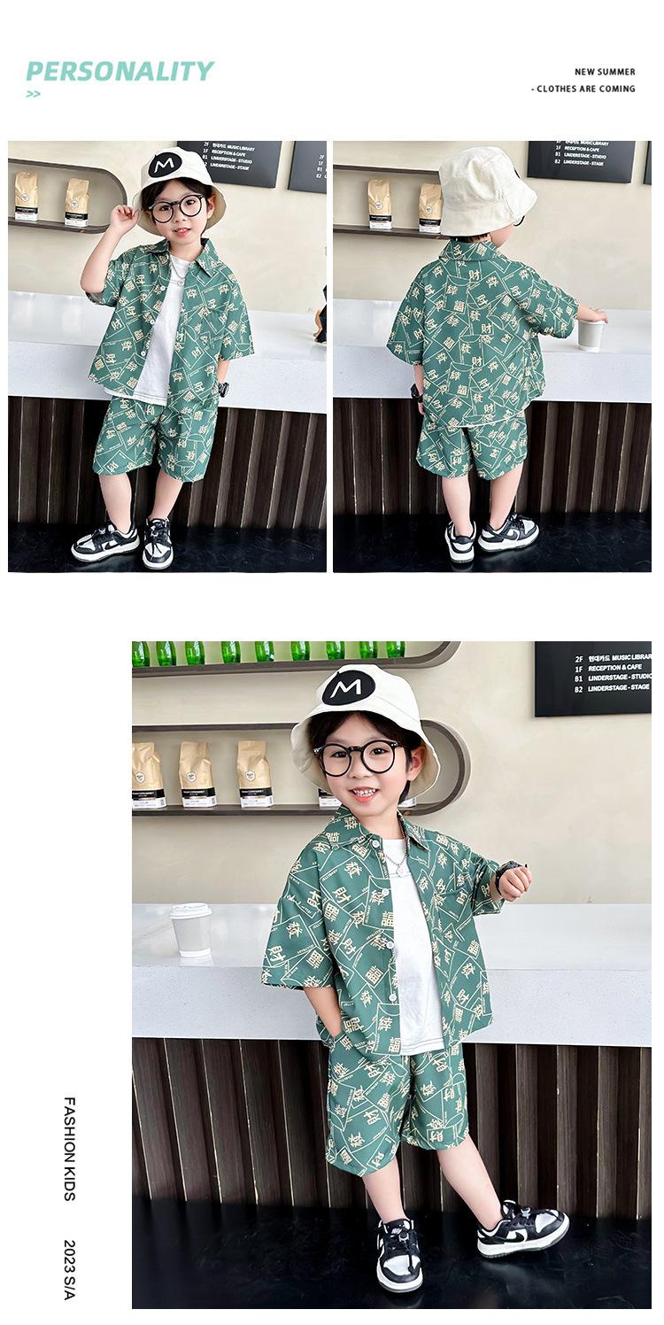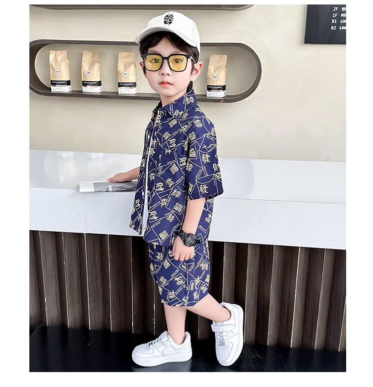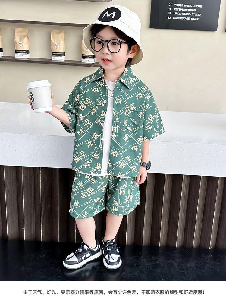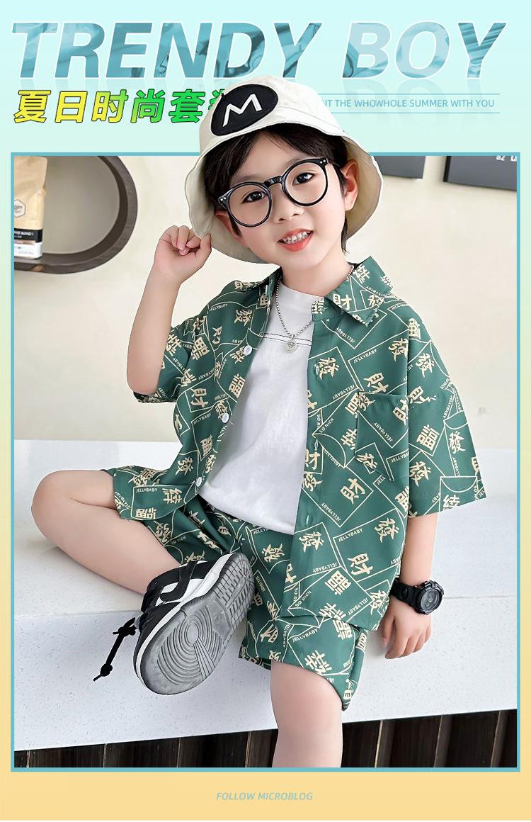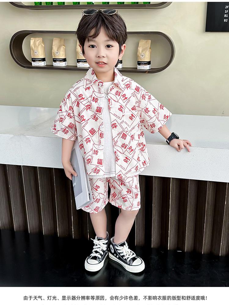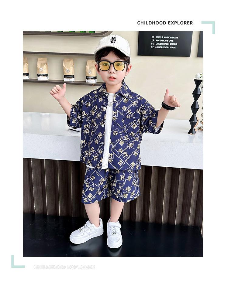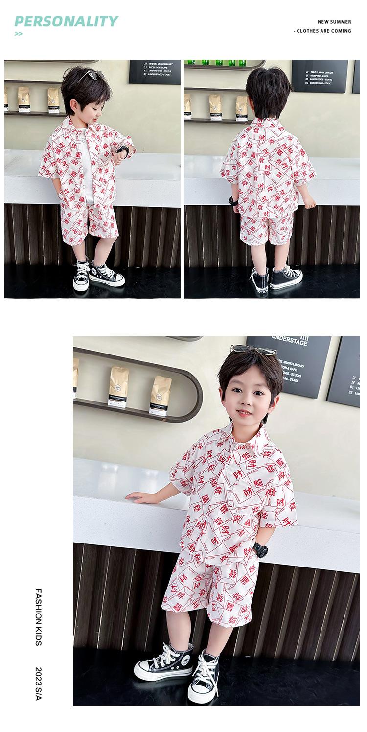Traje de camisa de la fortuna de manga corta para niños 2025 Nuevo conjunto de dos piezas de camisa delgada para niños pequeños y medianos