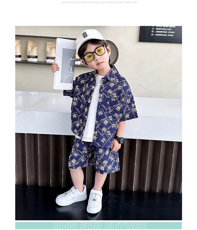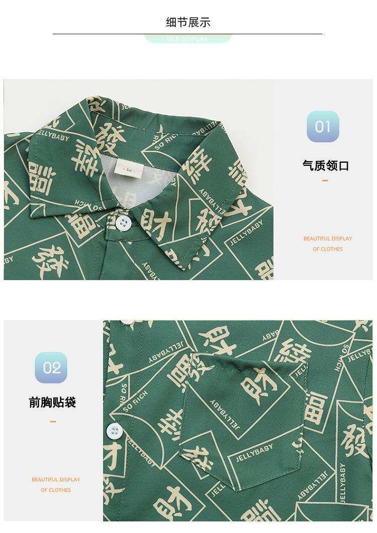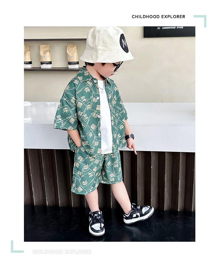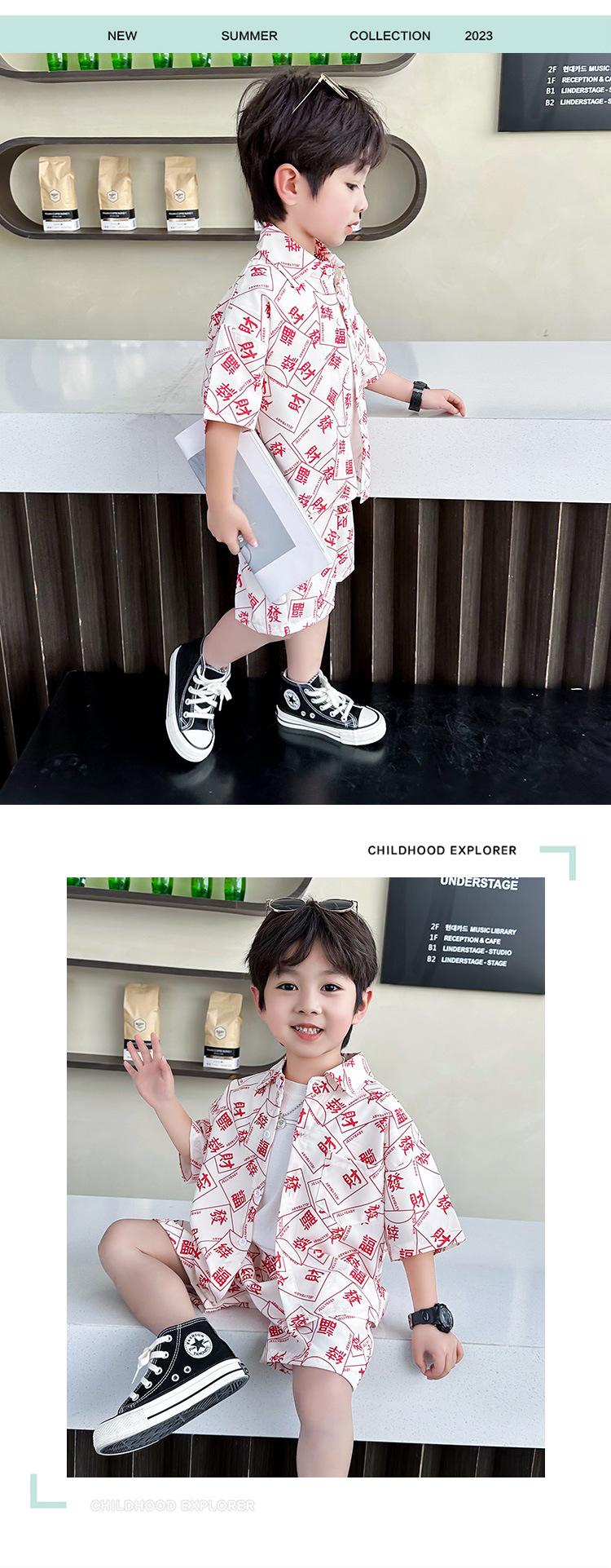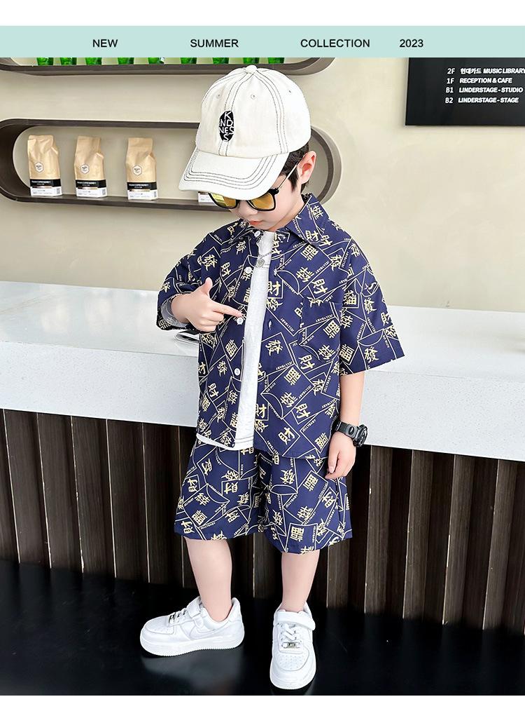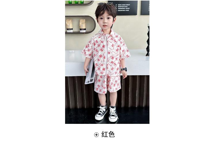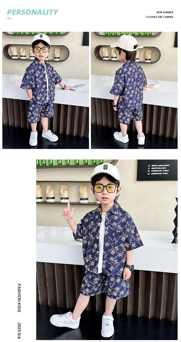 Traje de camisa de la fortuna de manga corta para niños 2025 Nuevo conjunto de dos piezas de camisa delgada para niños pequeños y medianos