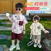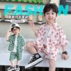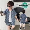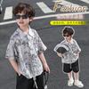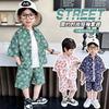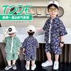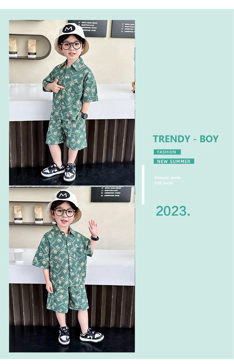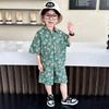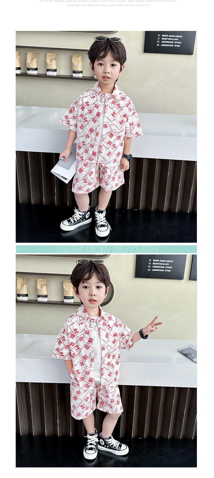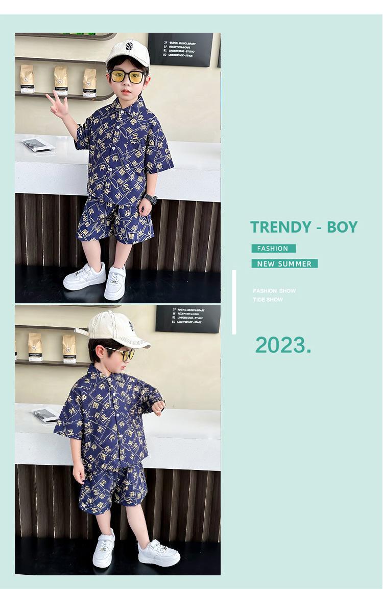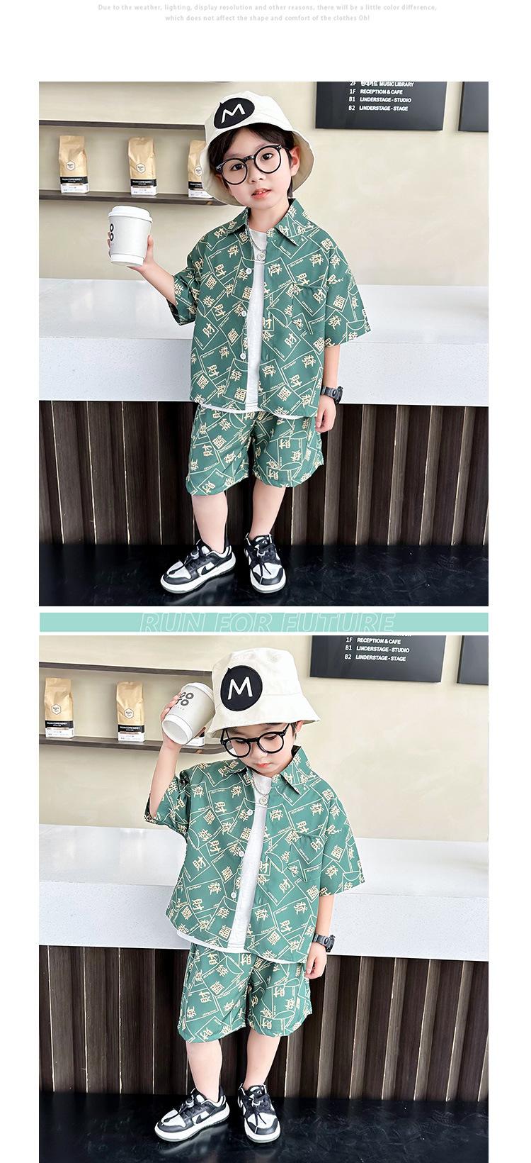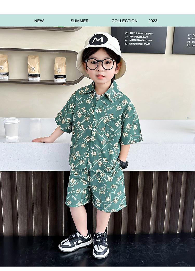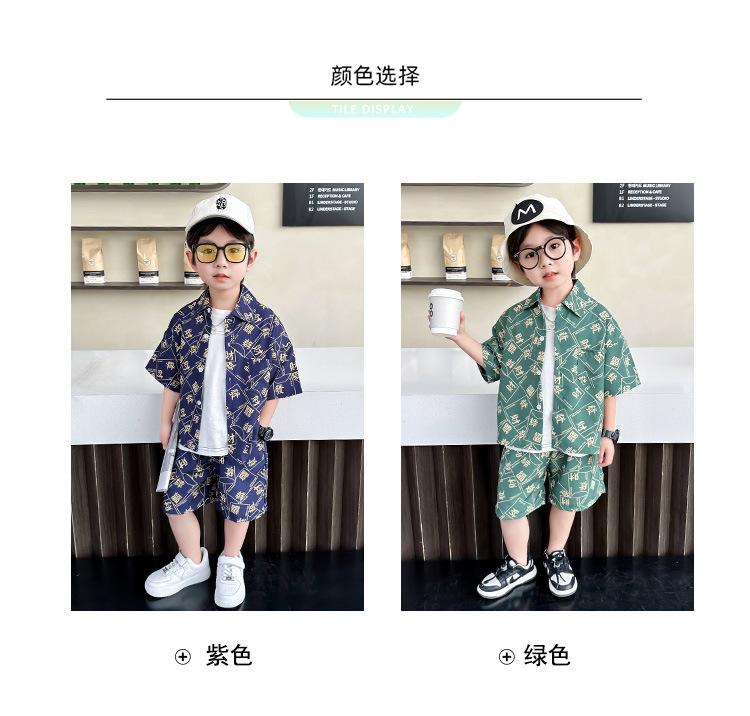 Traje de camisa de la fortuna de manga corta para niños 2025 Nuevo conjunto de dos piezas de camisa delgada para niños pequeños y medianos