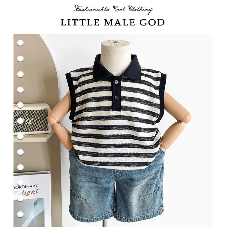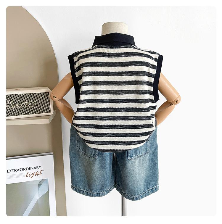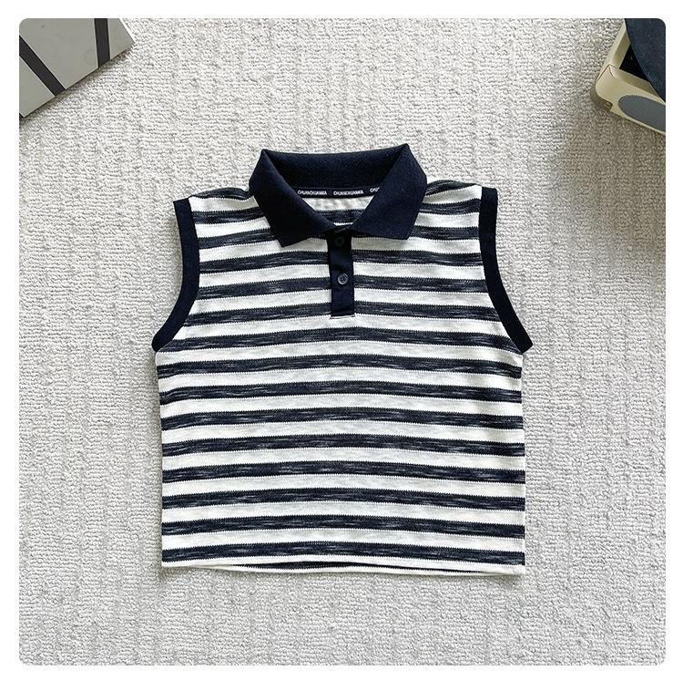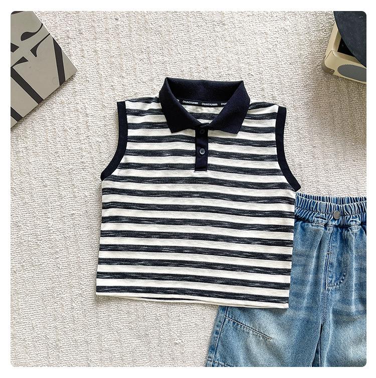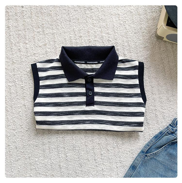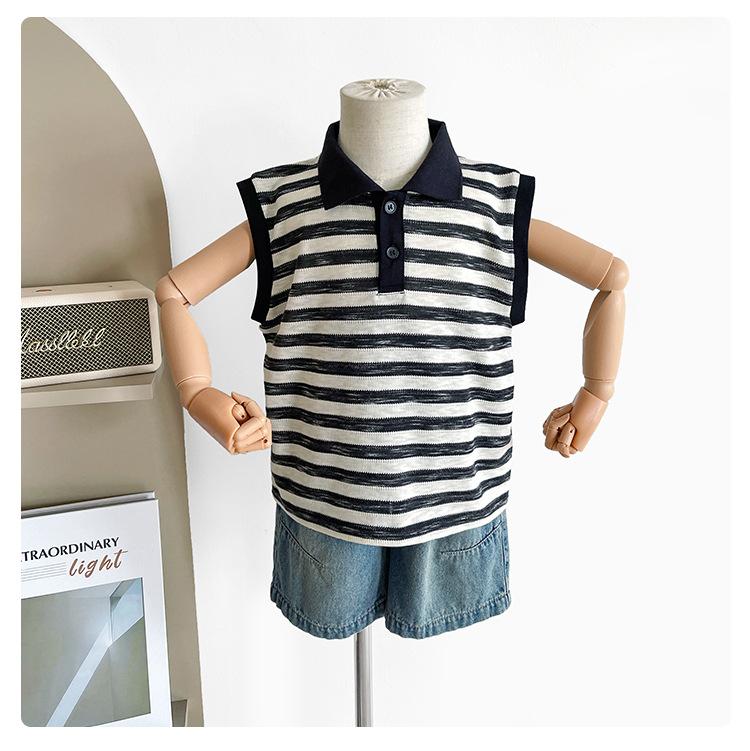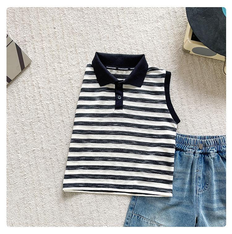 Wind Valley 2025 Verano Nuevo Ropa para Niños Polo Rayado de Colores Estilo Coreano Chaleco sin Mangas para Niño Combinable con Todo