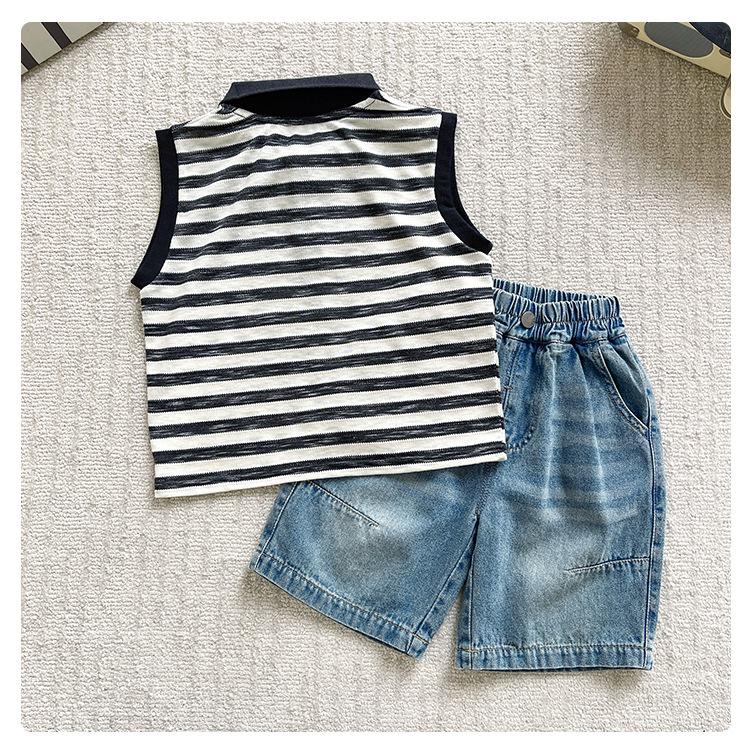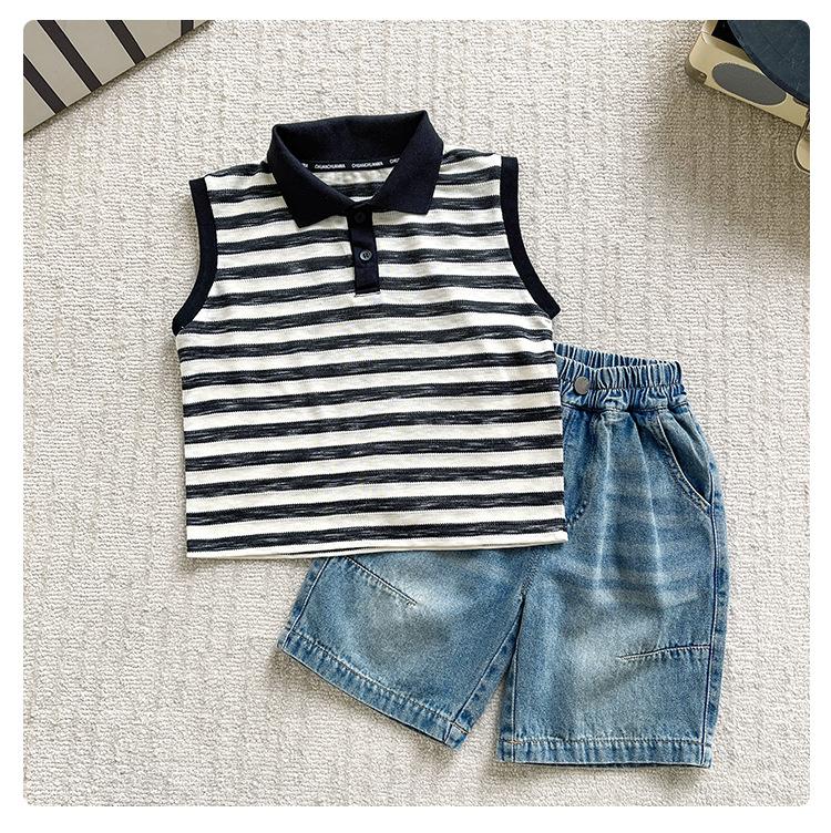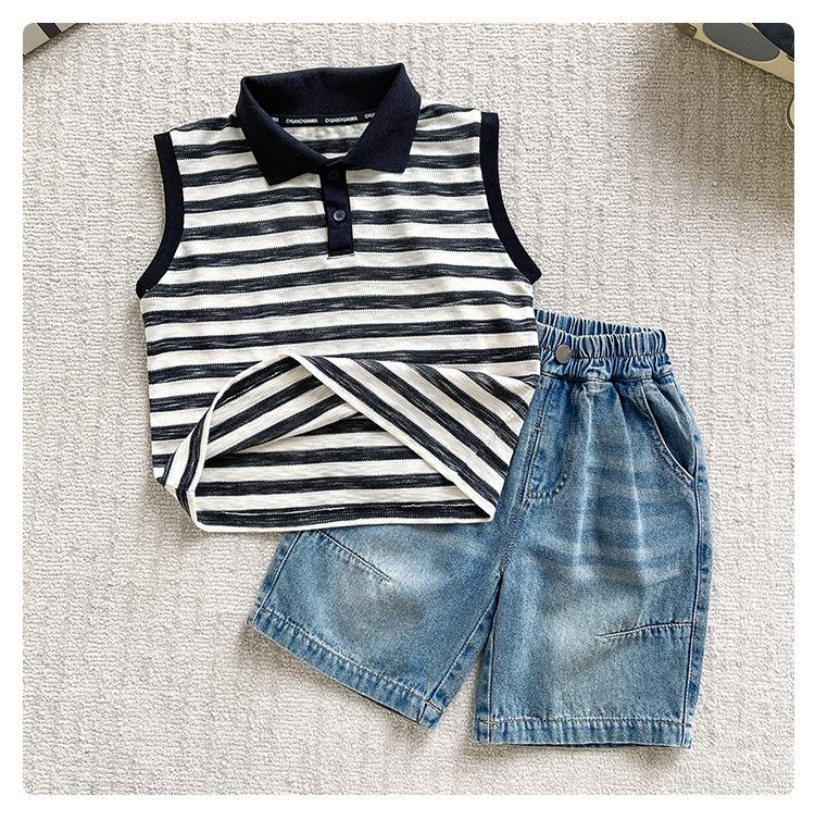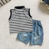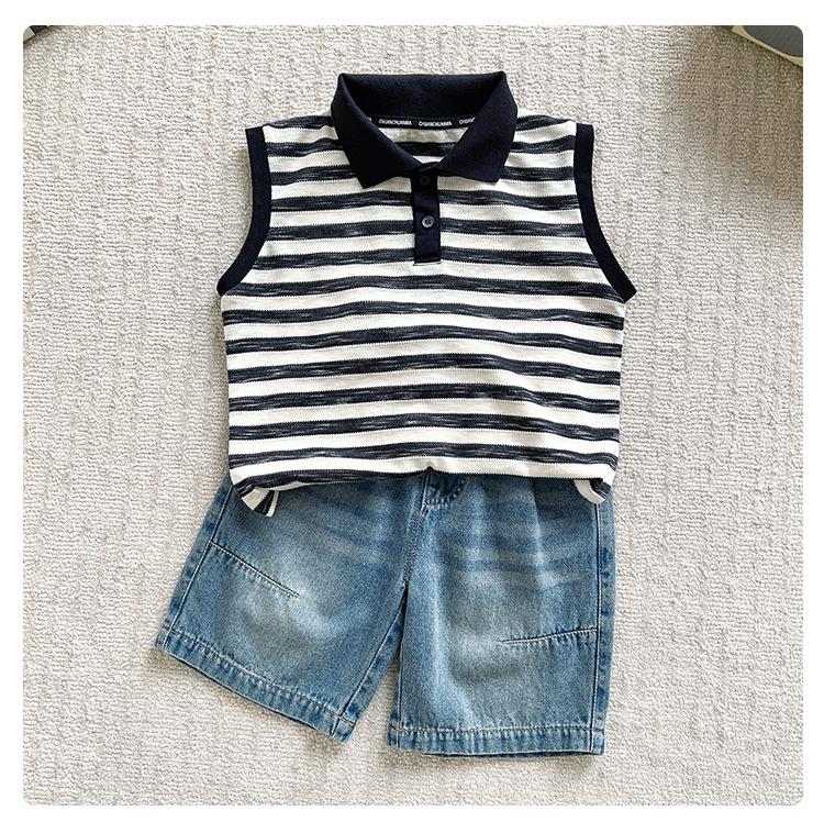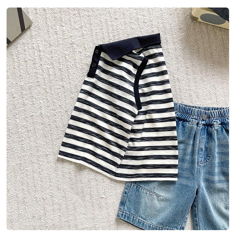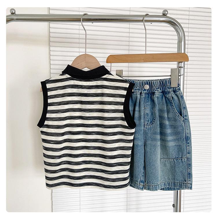 Wind Valley 2025 Verano Nuevo Ropa para Niños Polo Rayado de Colores Estilo Coreano Chaleco sin Mangas para Niño Combinable con Todo