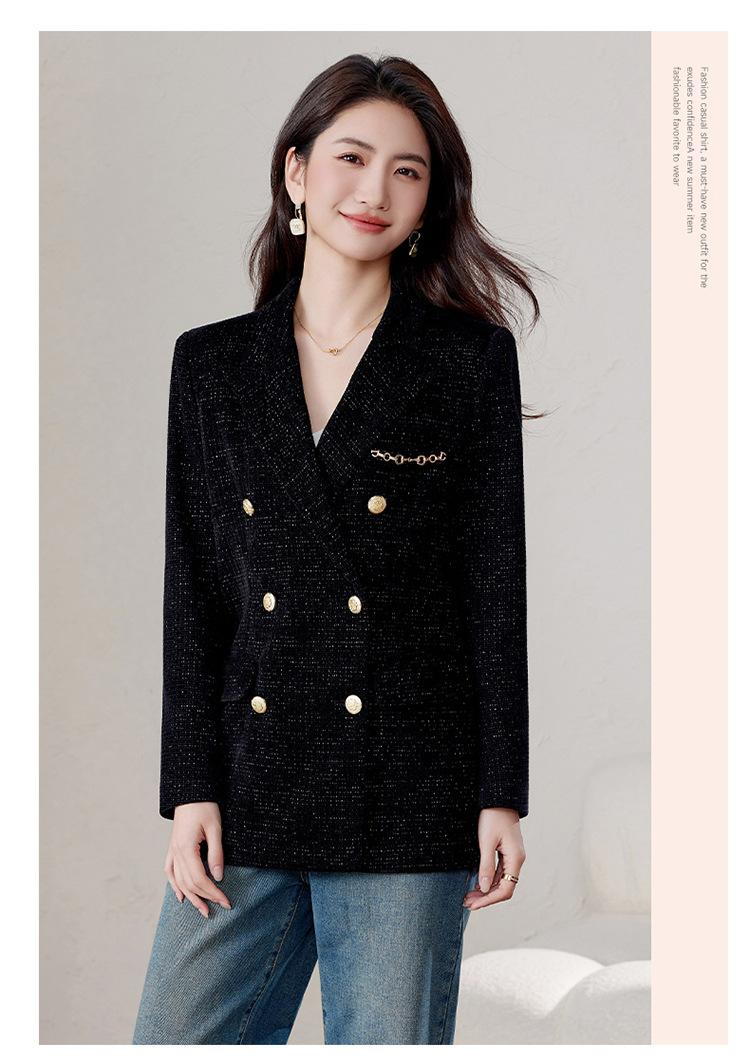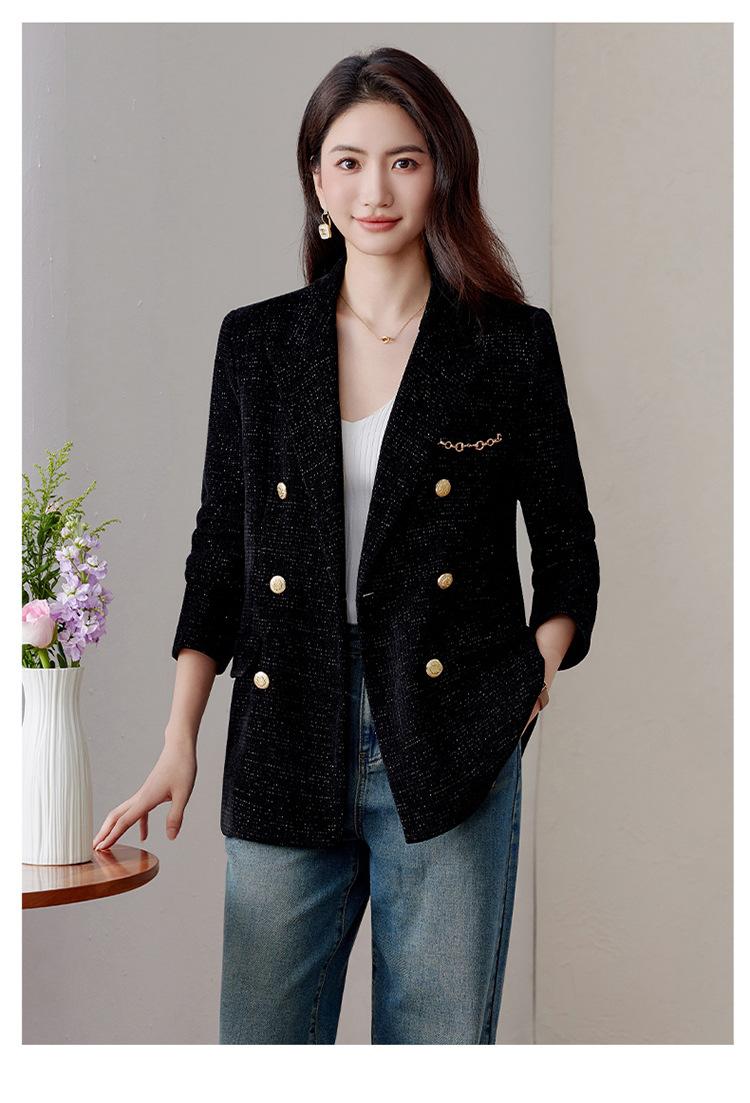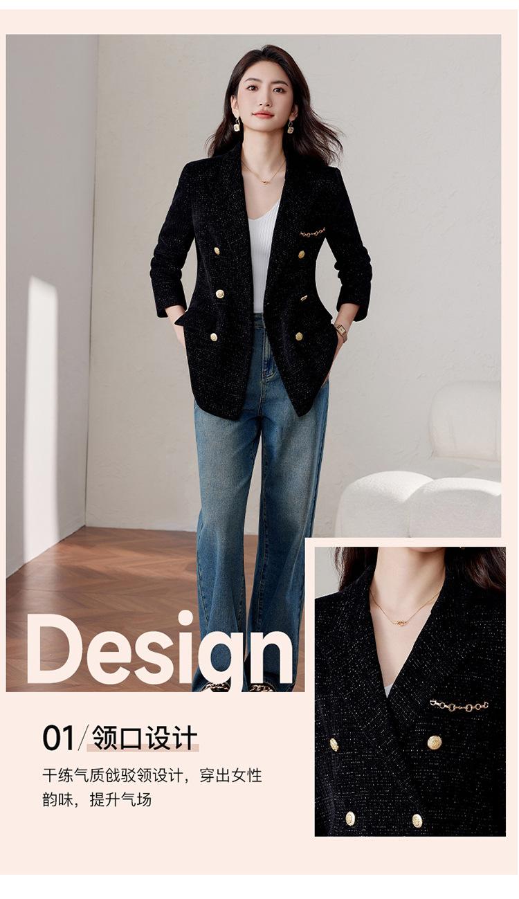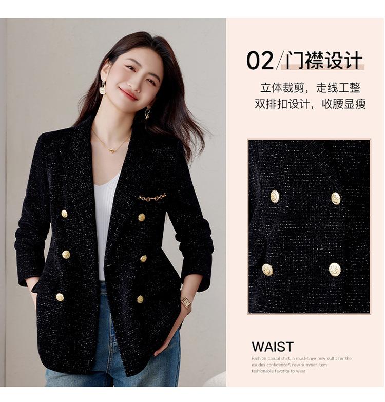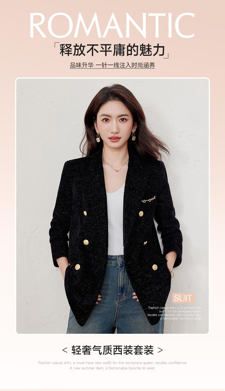 Chaqueta de traje negra para mujer, top profesional, primavera y otoño, nuevo diseño elegante, casual, de moda, top de traje profesional.
