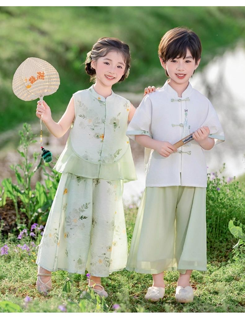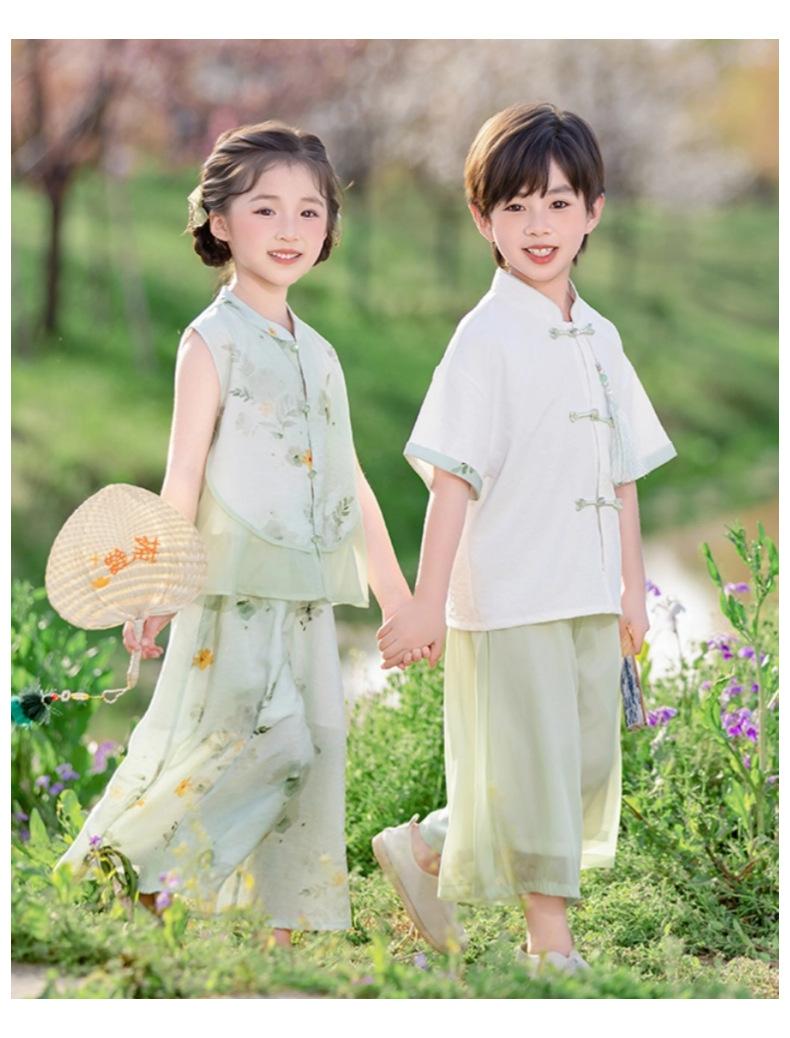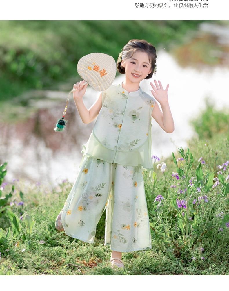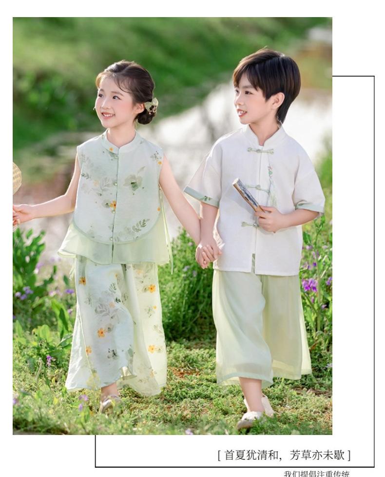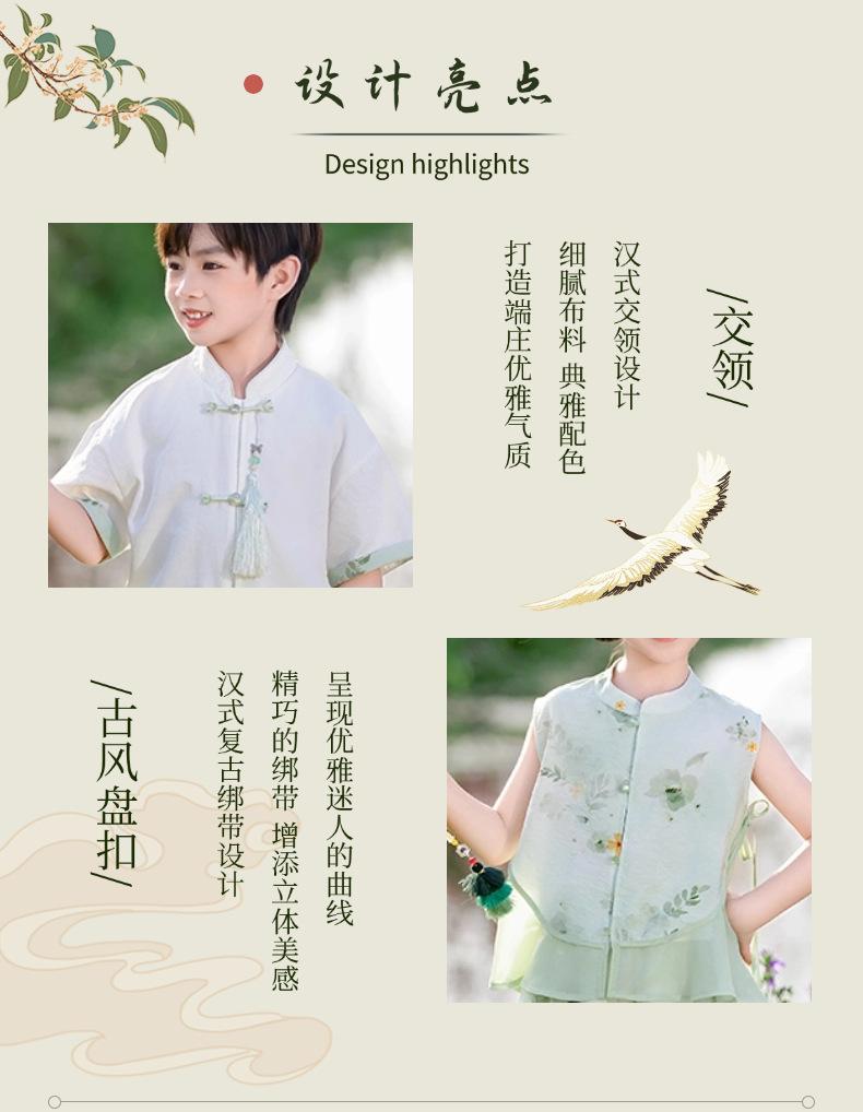 Hanfu para niño Estilo chino nuevo Estilo nacional Verano Traje Tang para niña Estilo antiguo Diario Mejorado Conjunto de disfraz de rendimiento infantil de alta gama