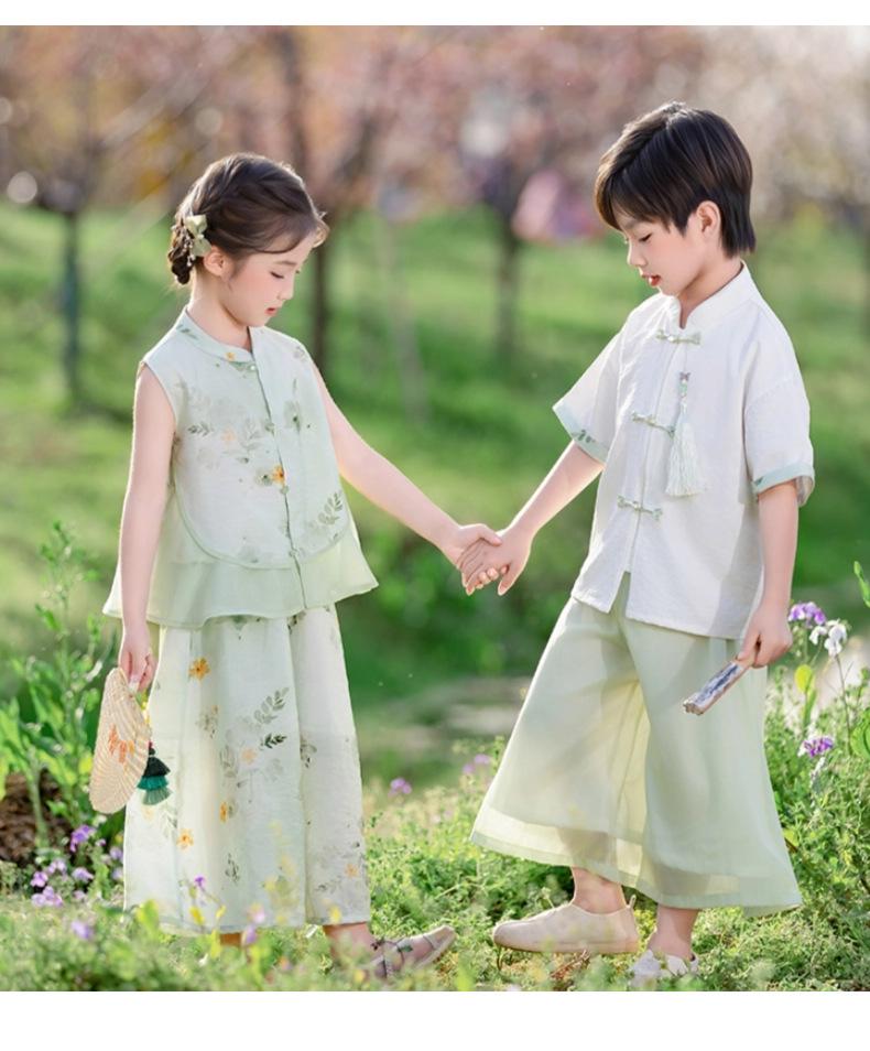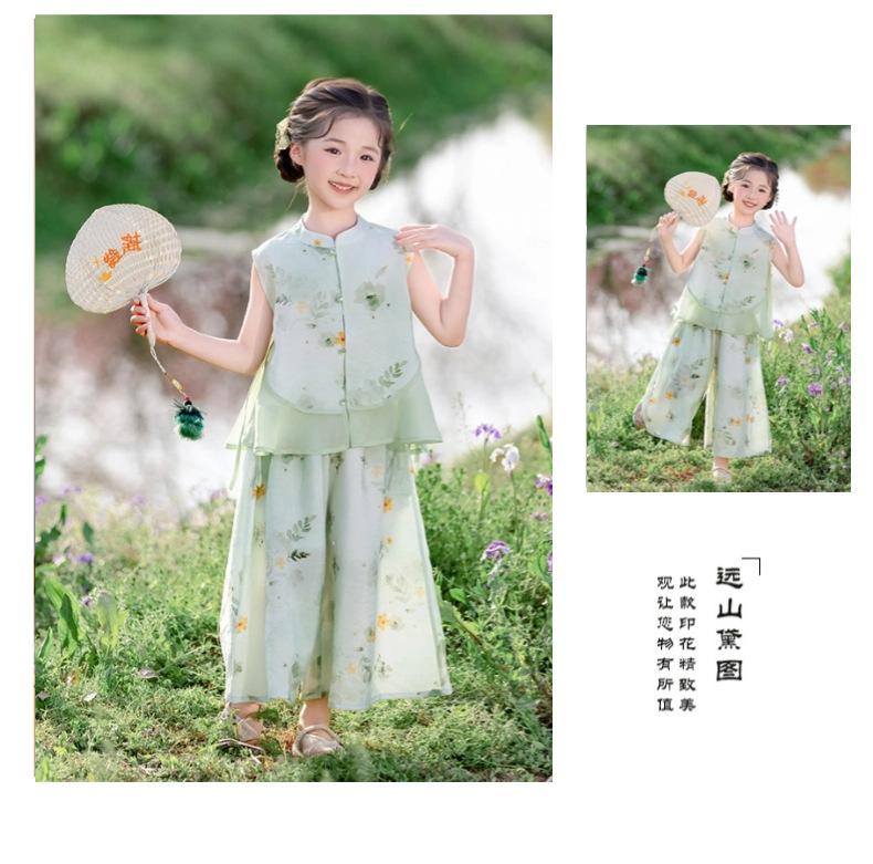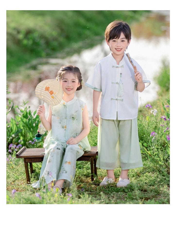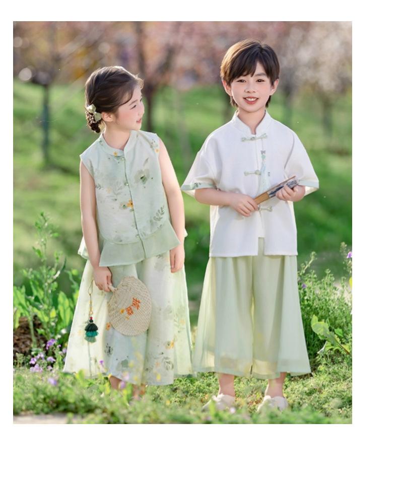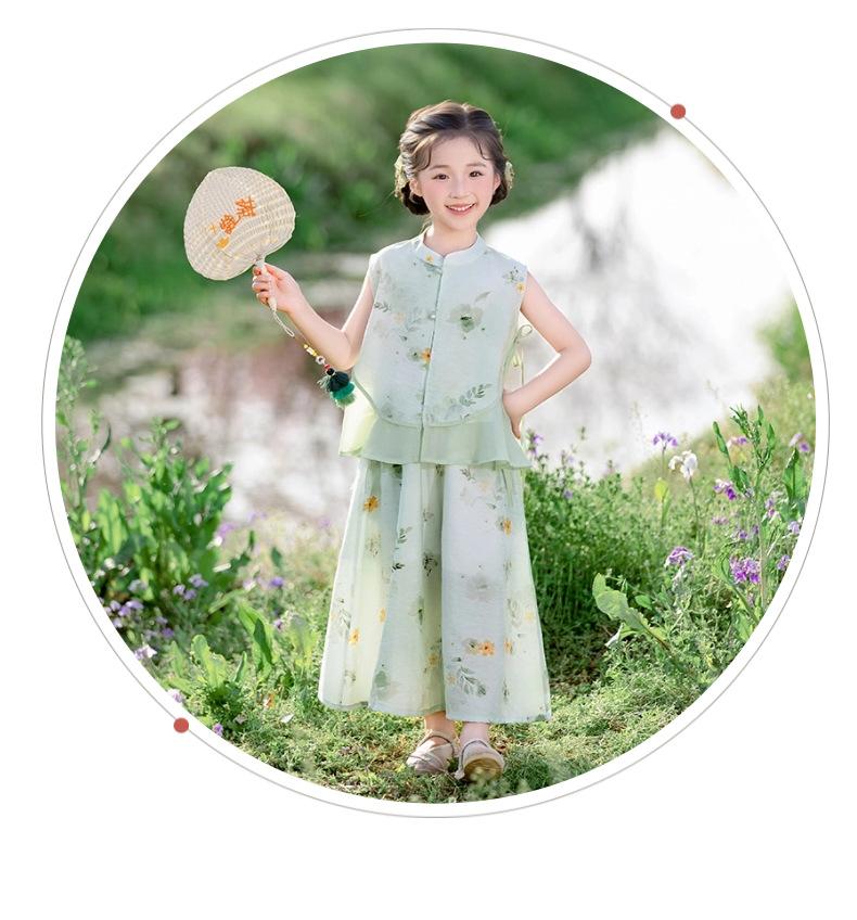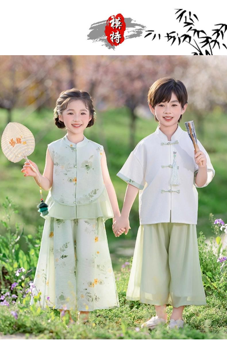 Hanfu para niño Estilo chino nuevo Estilo nacional Verano Traje Tang para niña Estilo antiguo Diario Mejorado Conjunto de disfraz de rendimiento infantil de alta gama