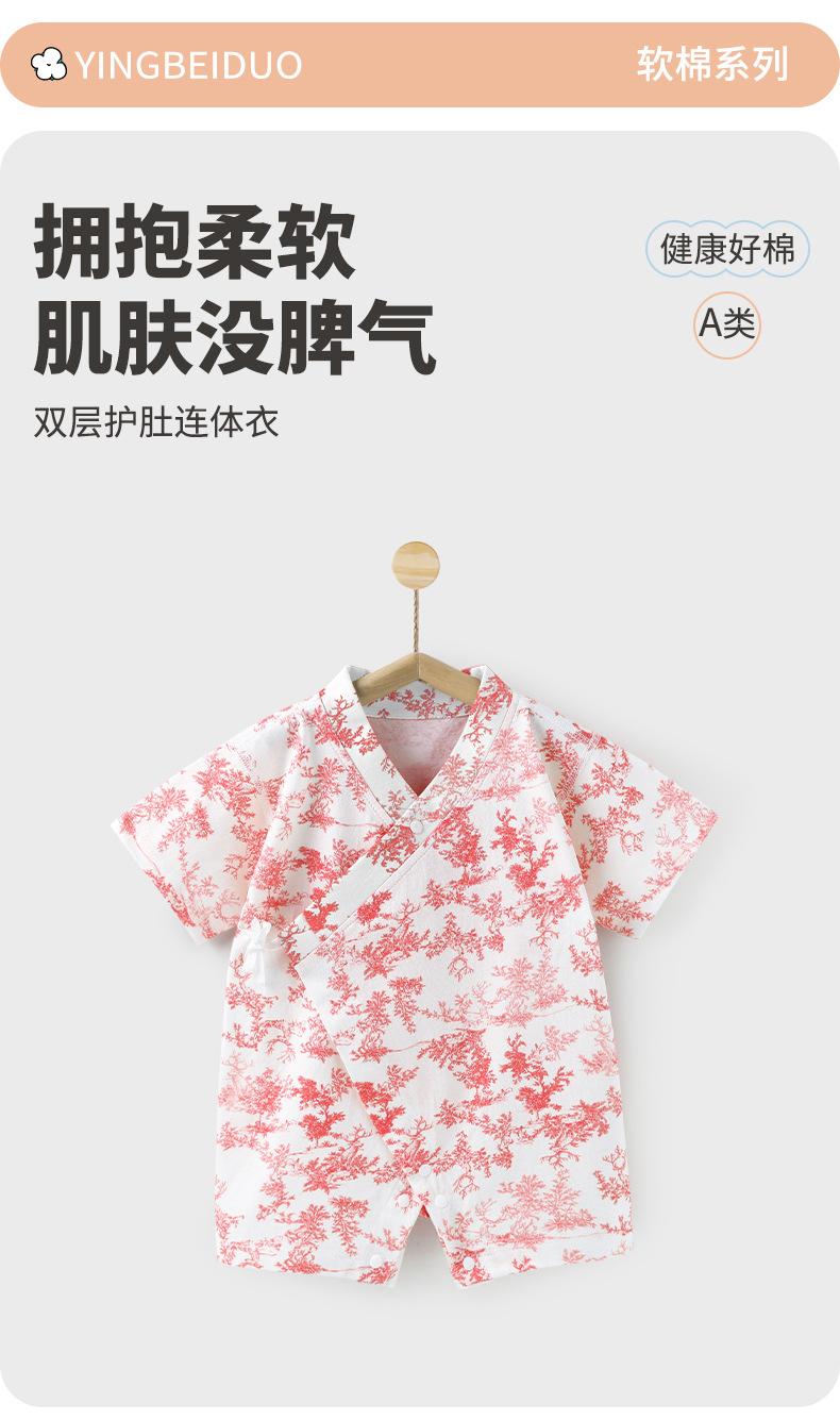 Mameluco de Verano para Bebé Recién Nacido Algodón Puro Delgado Hayi Transpirable Traje para Trepar para Niños y Niñas Estilo Chino Salida Manga Corta