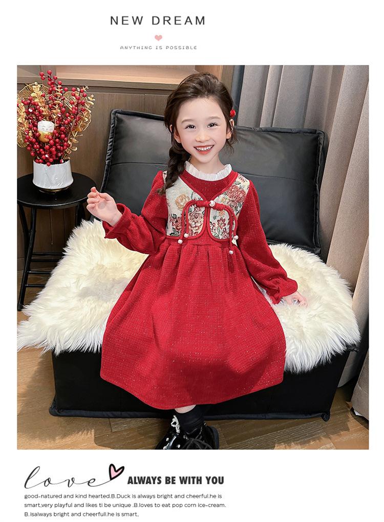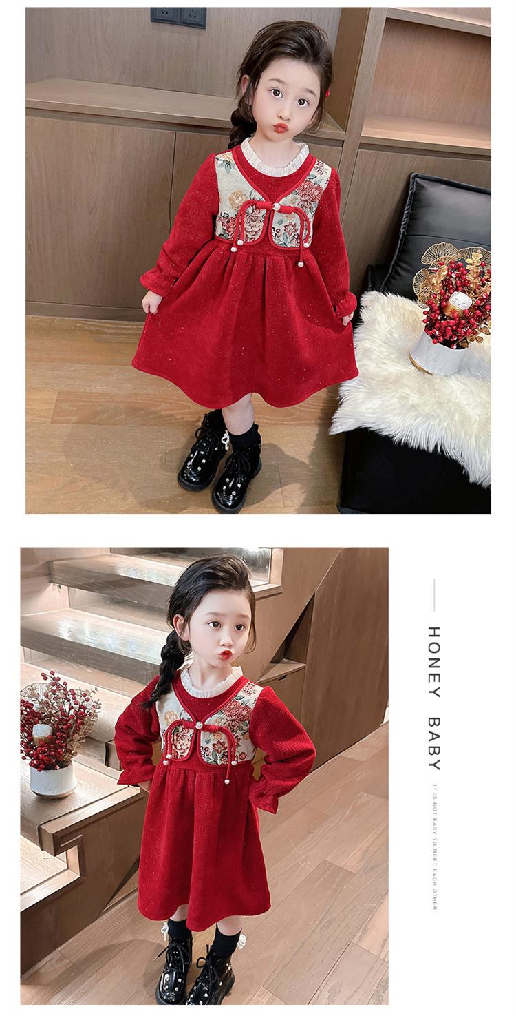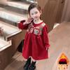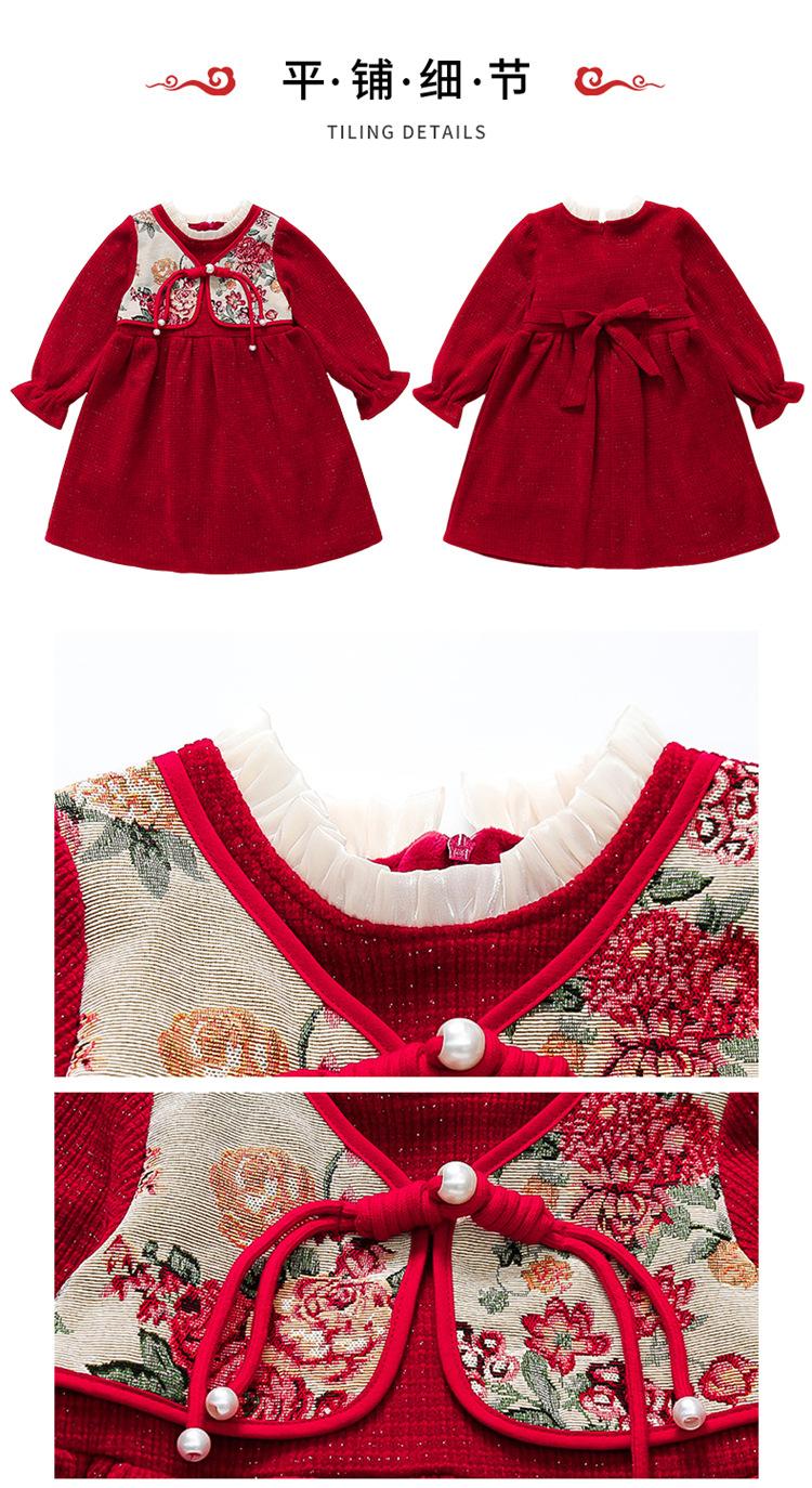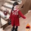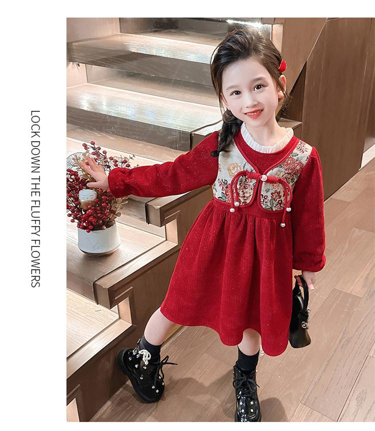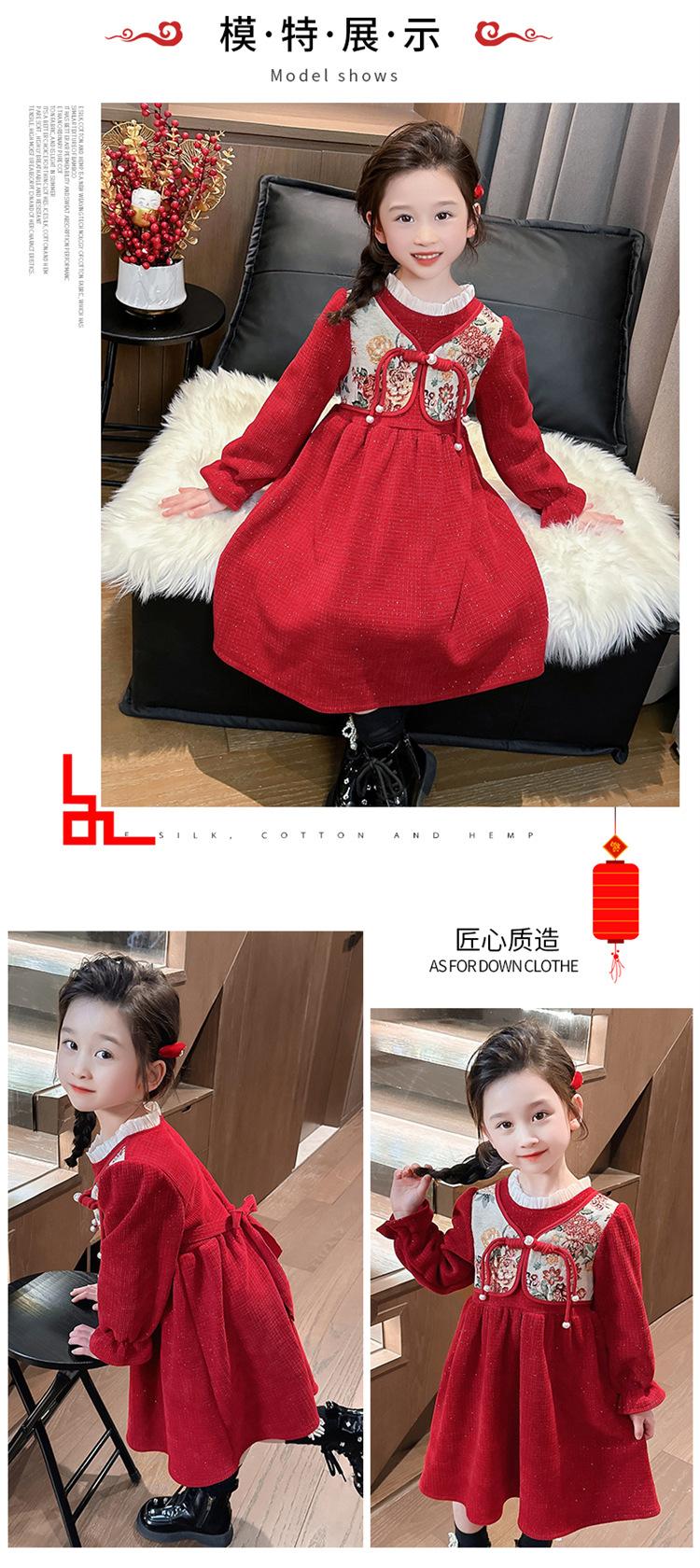 Falda traje Tang para niña Invierno Niños forrado de polar rojo otoño e invierno Hanfu vestido de princesa para bebé Vestido de Año Nuevo
