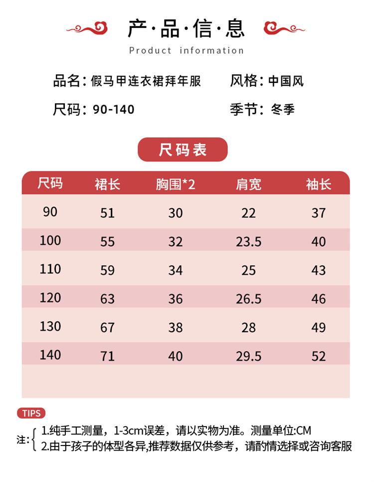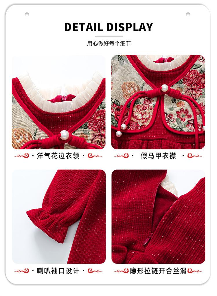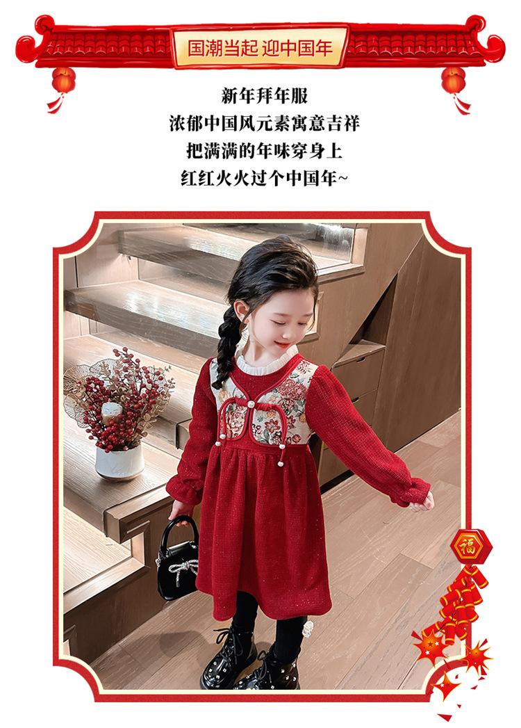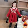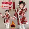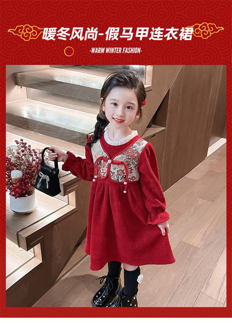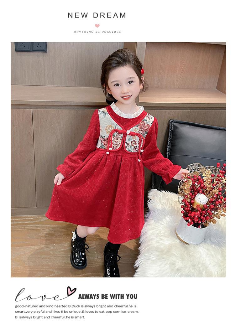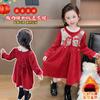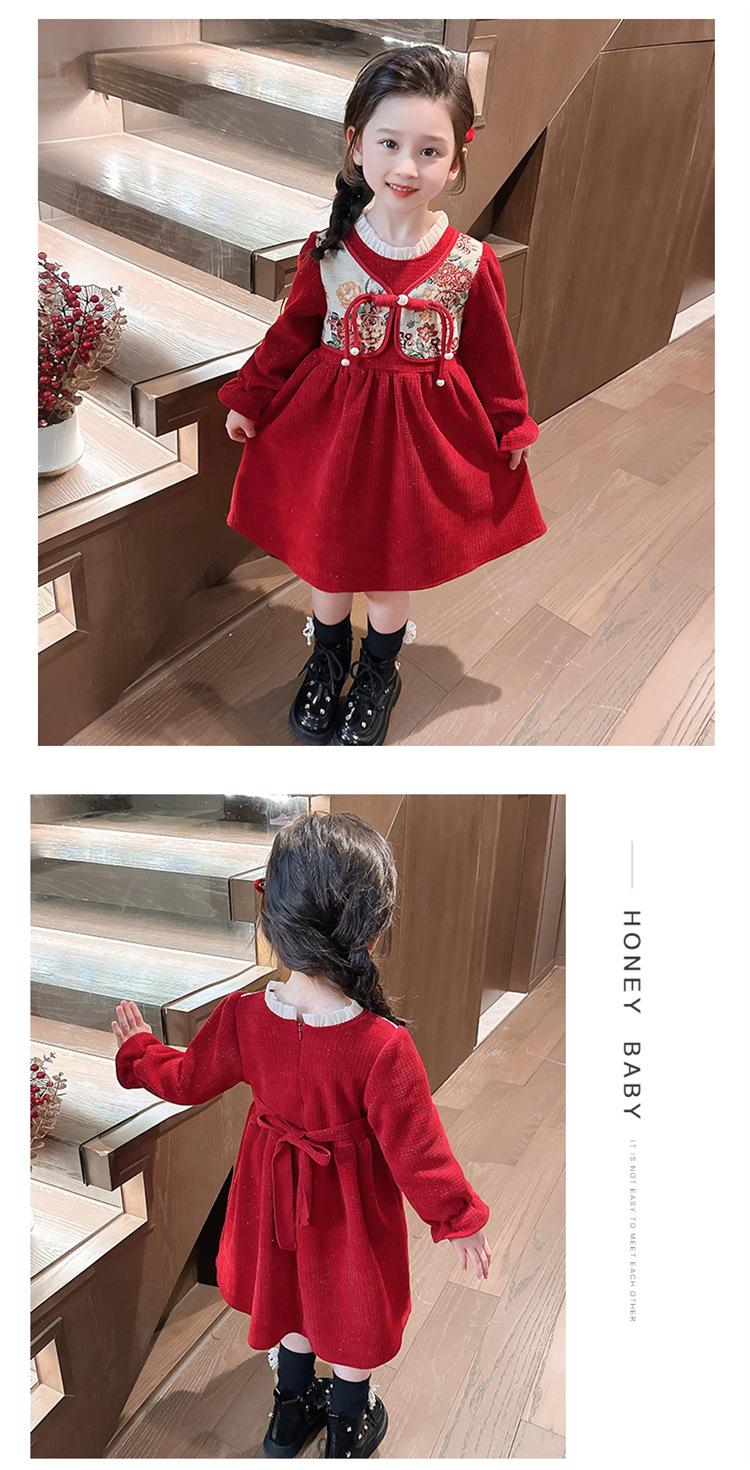 Falda traje Tang para niña Invierno Niños forrado de polar rojo otoño e invierno Hanfu vestido de princesa para bebé Vestido de Año Nuevo