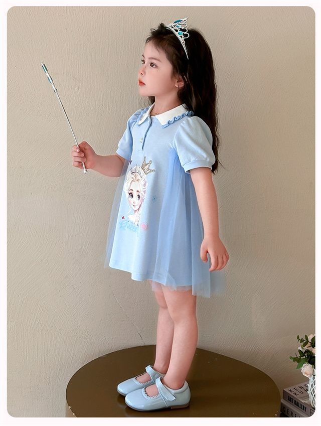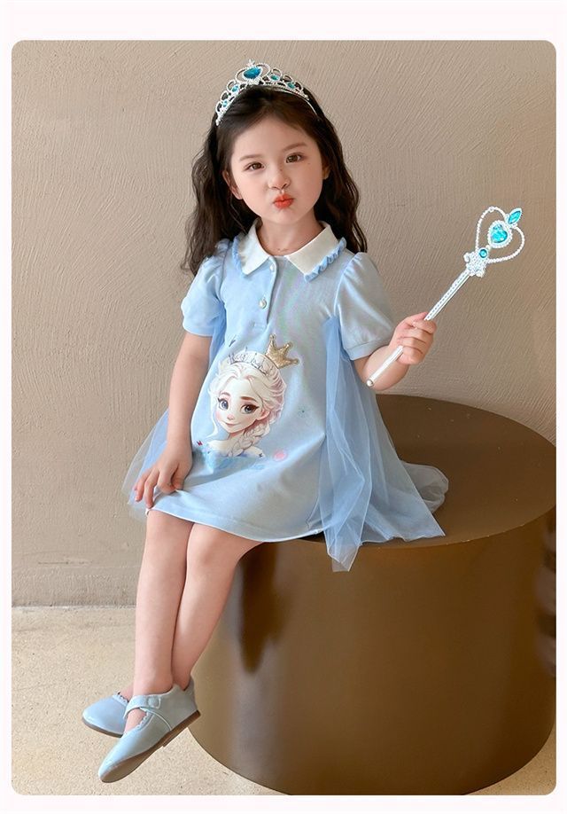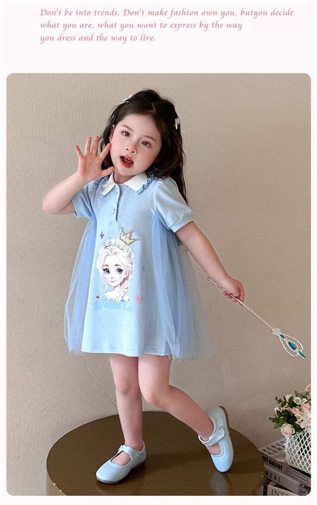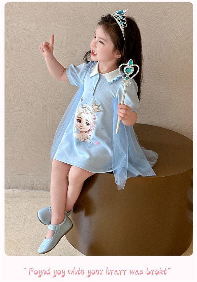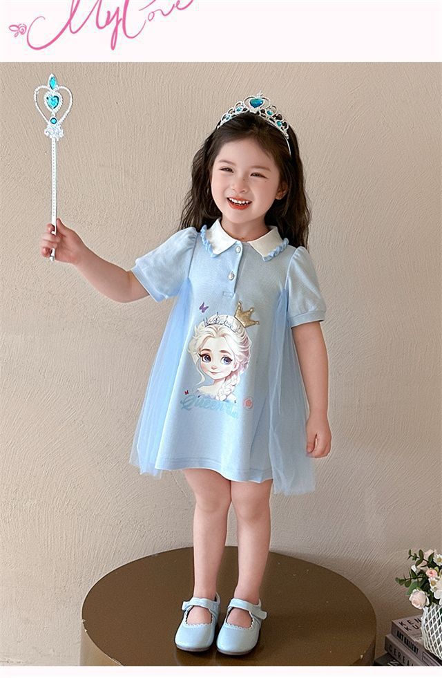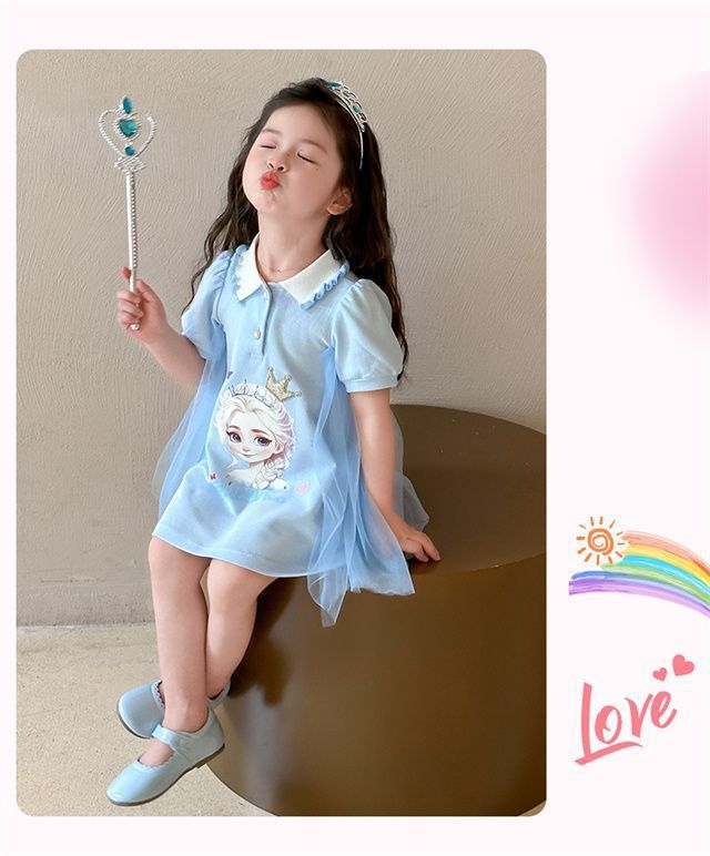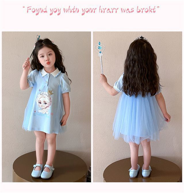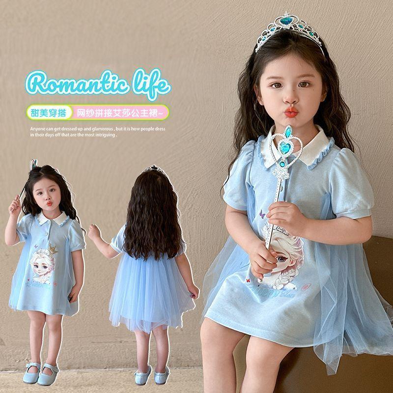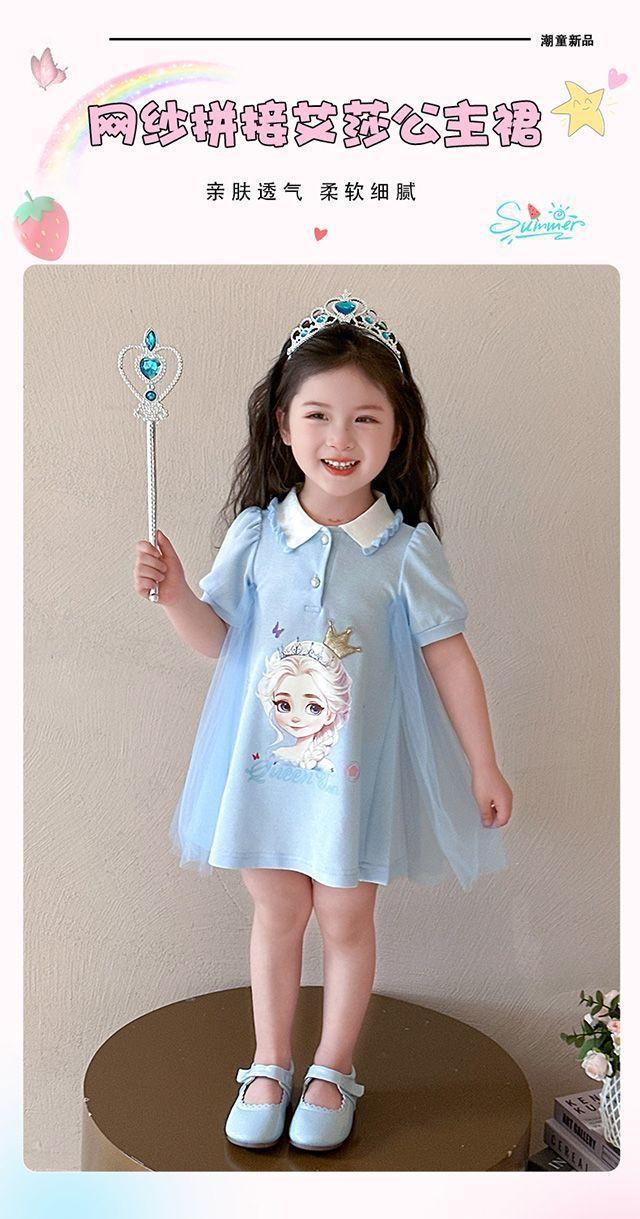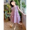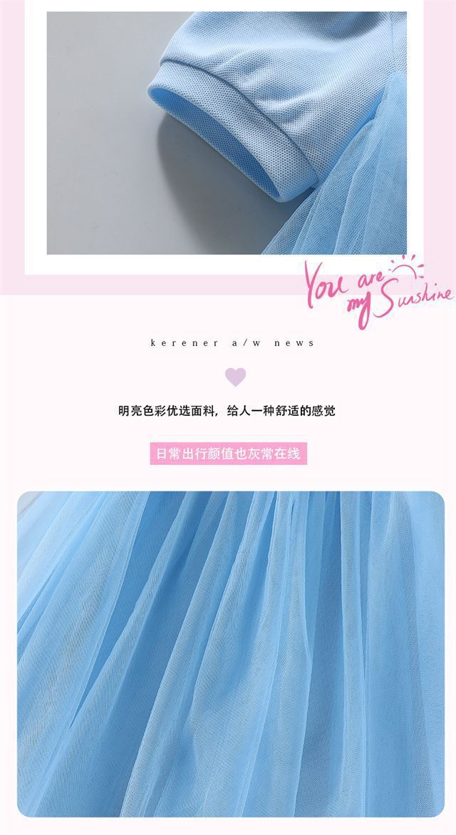 Celebrante de Internet Niñas Estilo Coreano Estilo Extranjero Vestido de Manga Corta Aisha Vestido de Princesa de Malla con Costuras de Moda de Verano para Niños Trendy