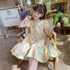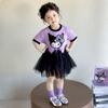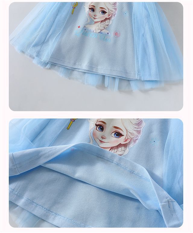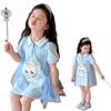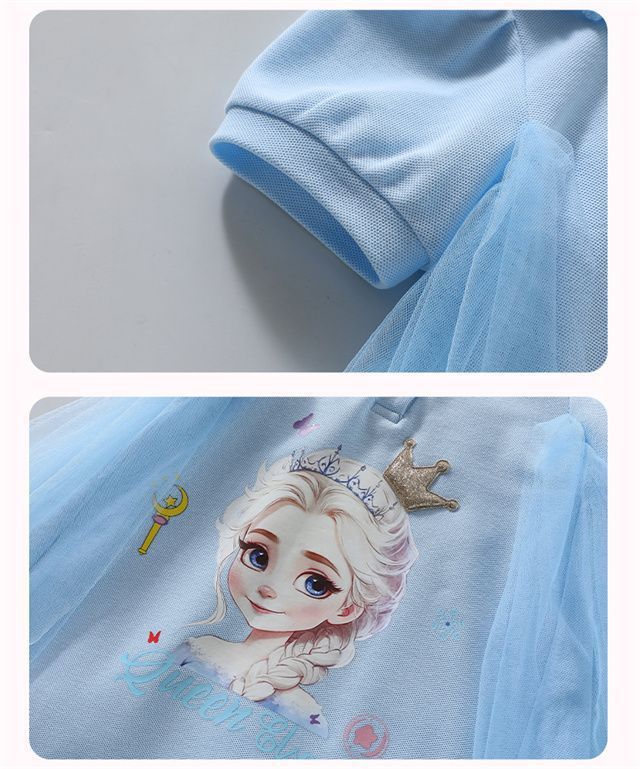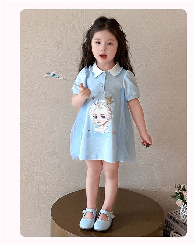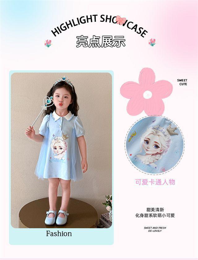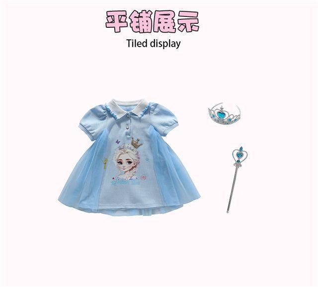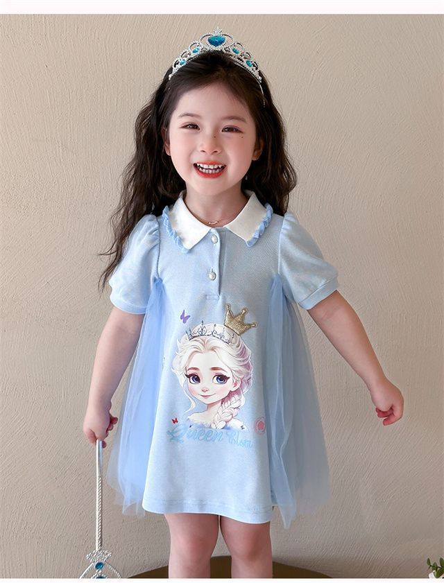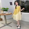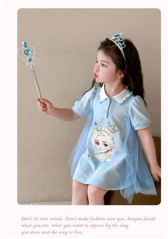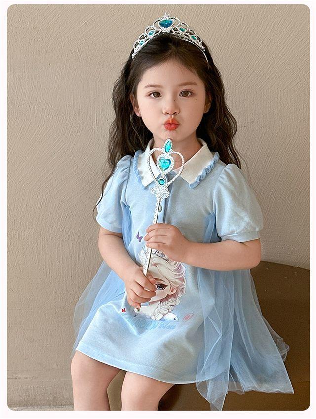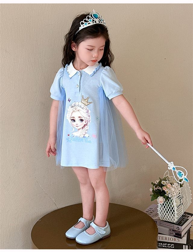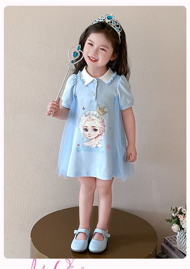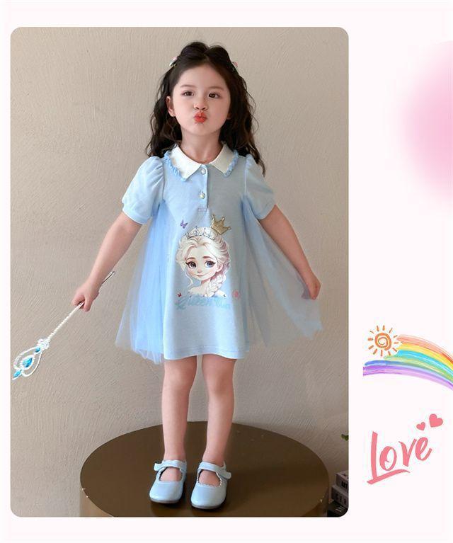 Celebrante de Internet Niñas Estilo Coreano Estilo Extranjero Vestido de Manga Corta Aisha Vestido de Princesa de Malla con Costuras de Moda de Verano para Niños Trendy