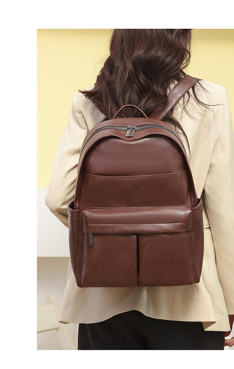 Mochila de Comercio Exterior para Mujer Nueva Moda Estilo Coreano Gran Capacidad Cuero Suave Mochila de Viaje Gran Capacidad Ligera Mochila Escolar para Estudiantes