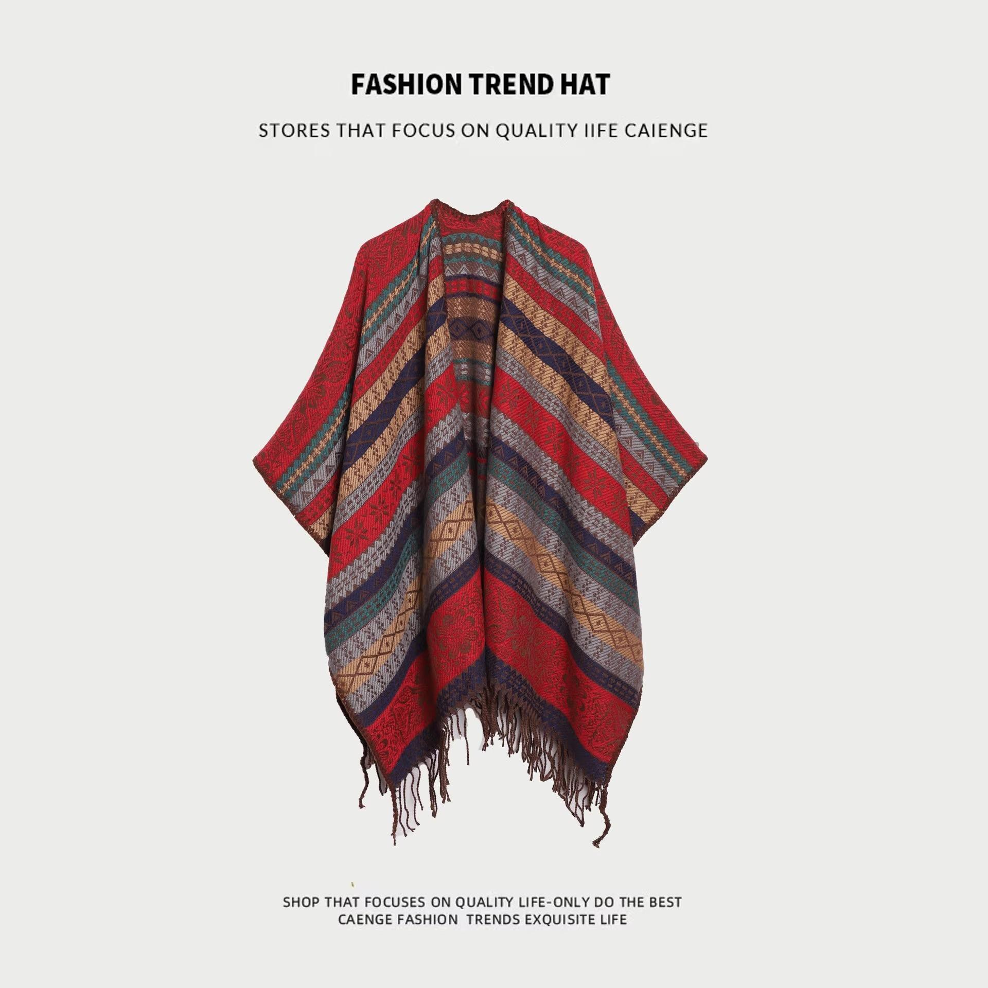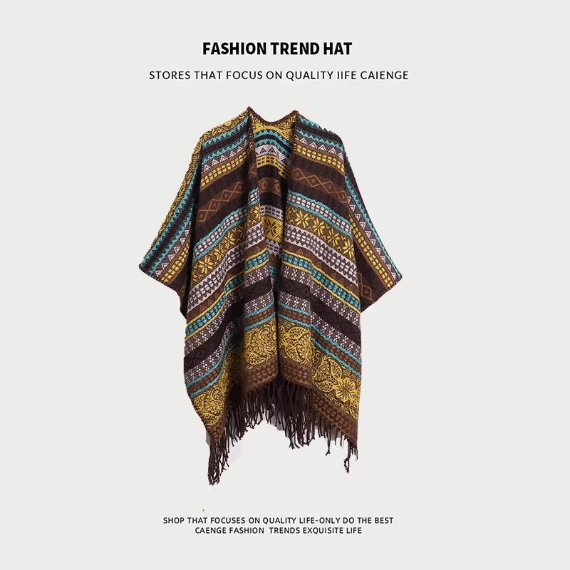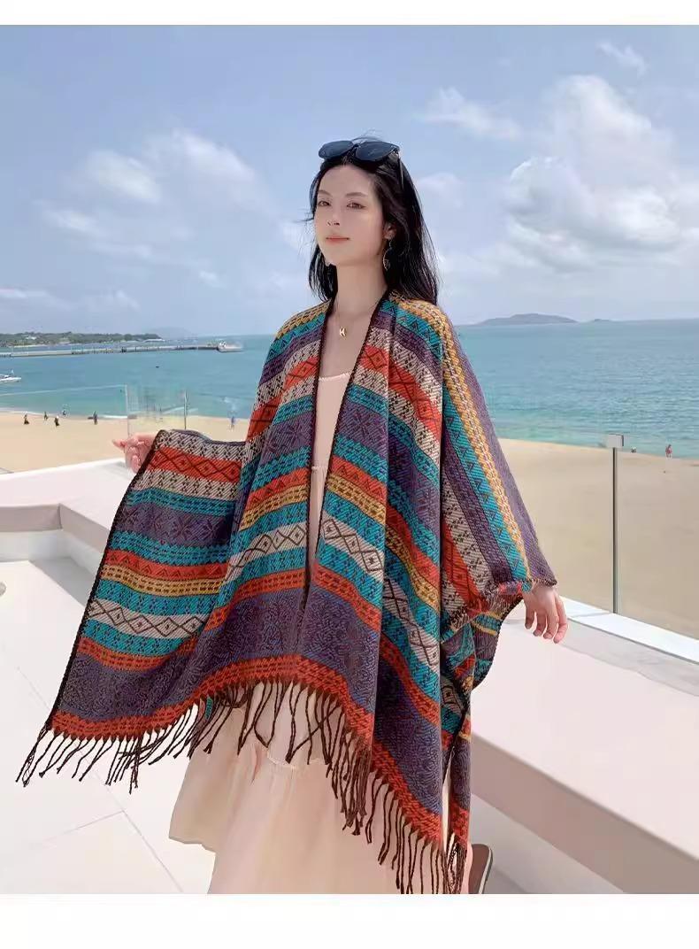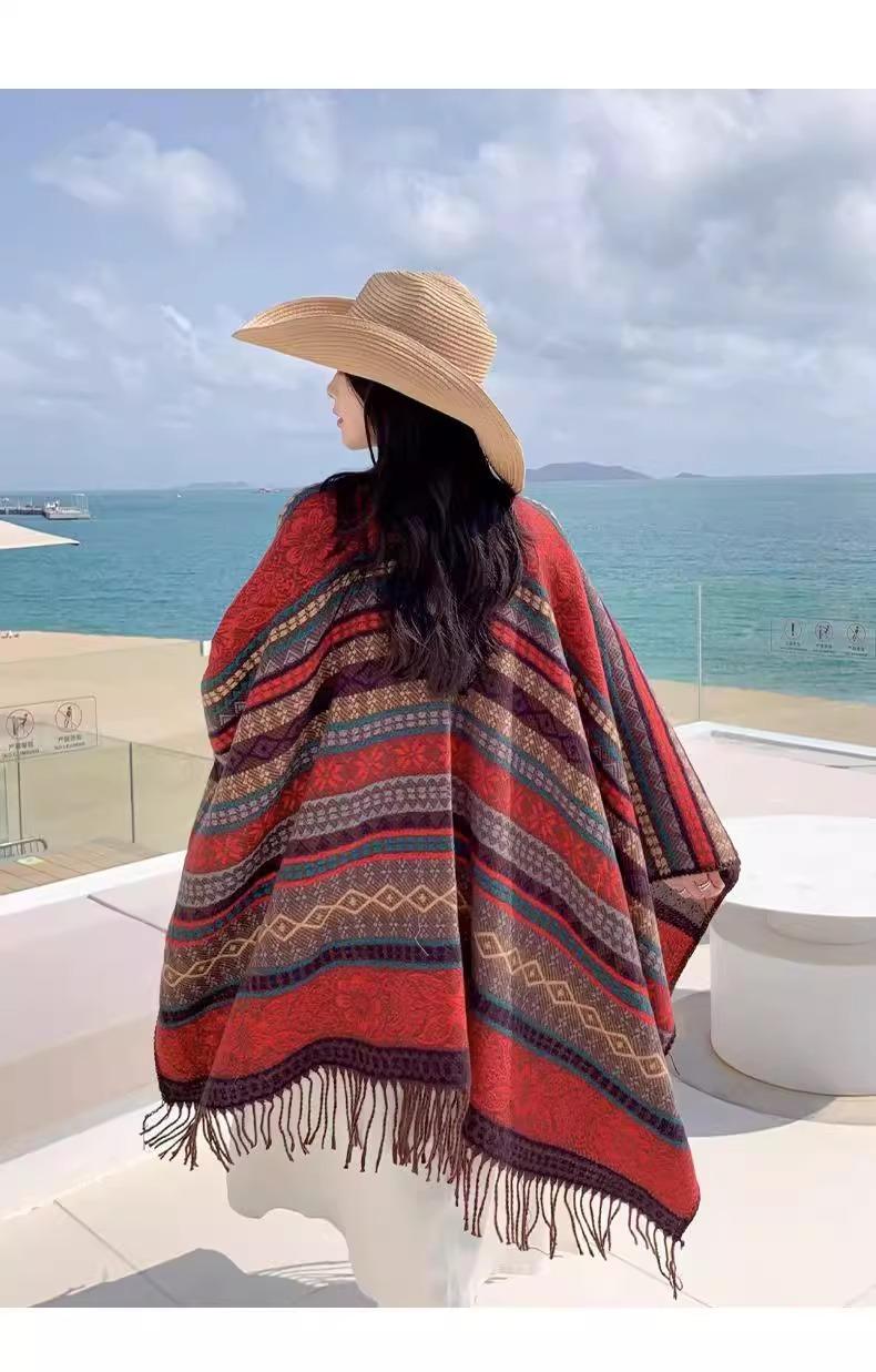 Chal Rebozo Estilo Étnico de Otoño e Invierno para Mujer Yunnan Xinjiang Versátil Cálido Exterior Chal Ropa de Viaje Abrigo